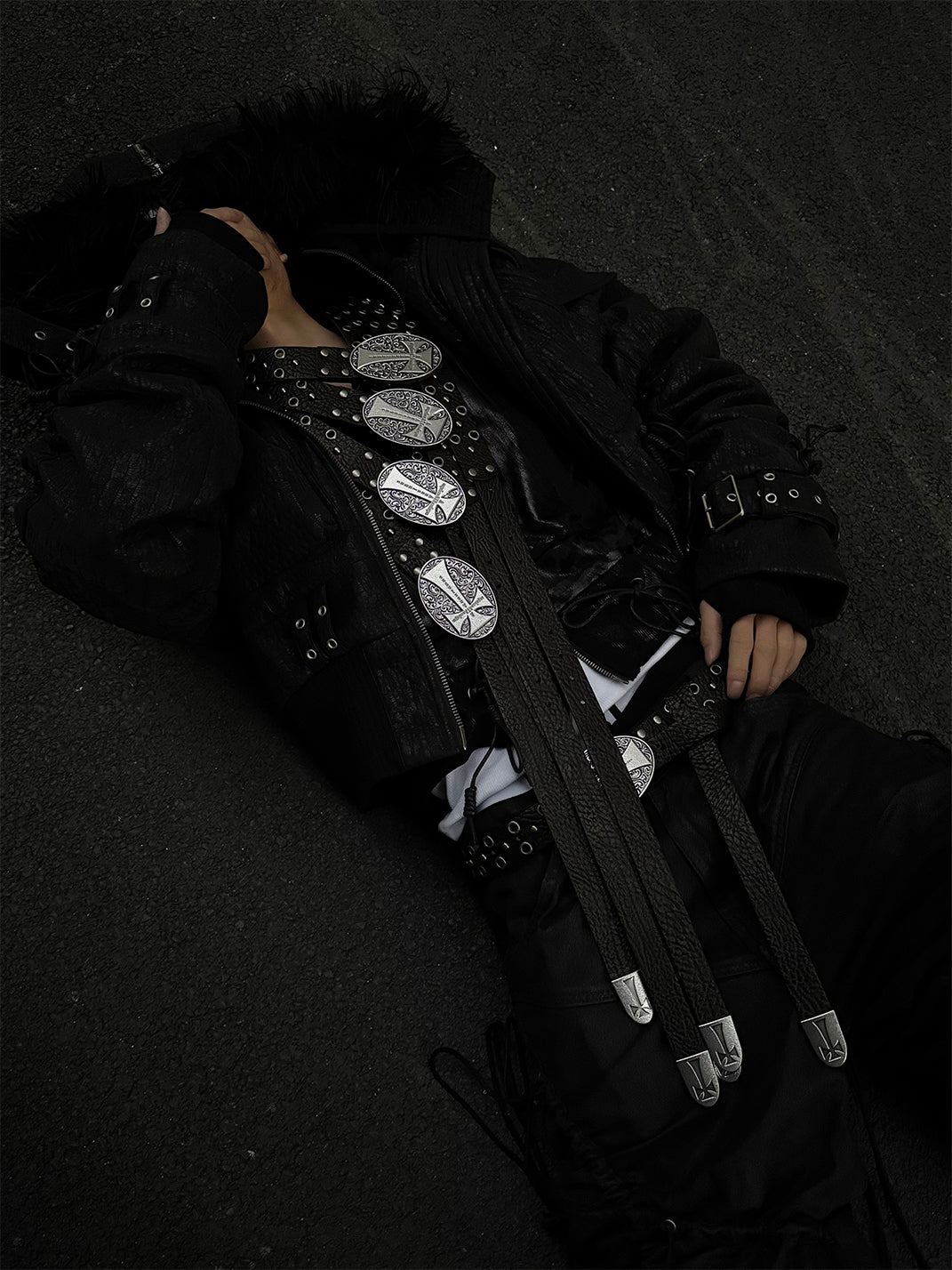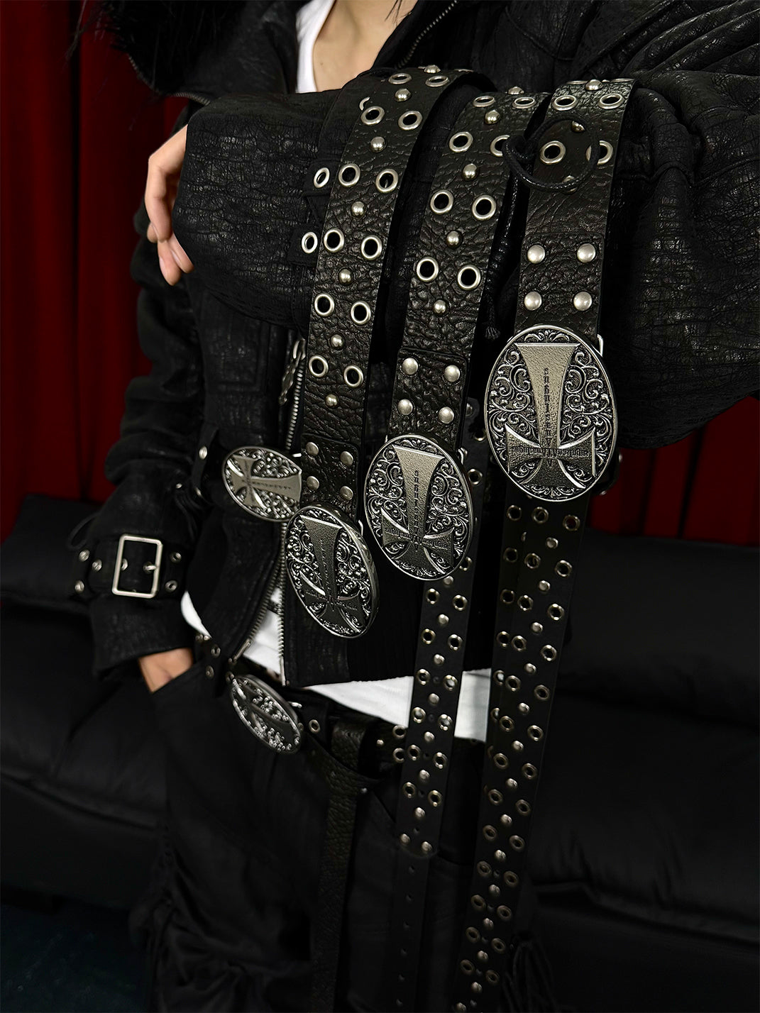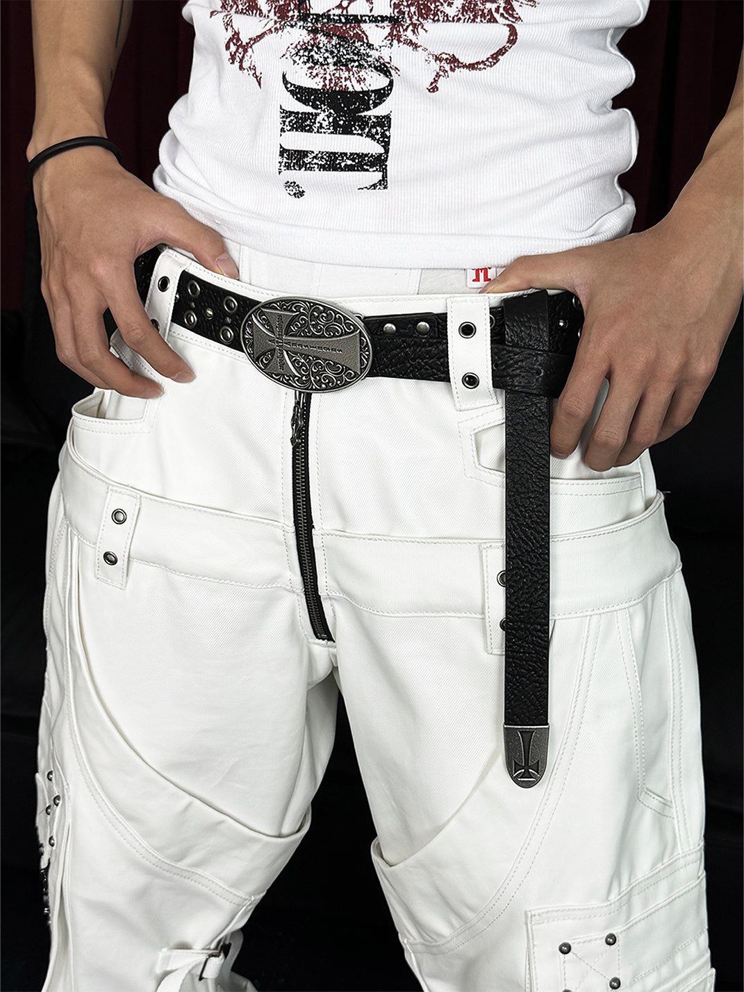 ATA NOTHINGNESS | Cross-Carved Leather Belt