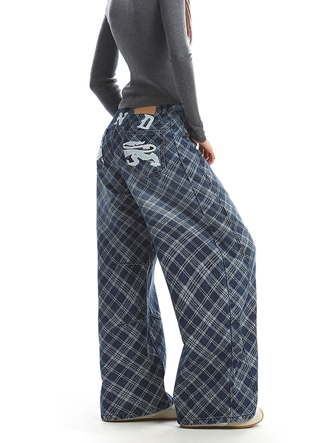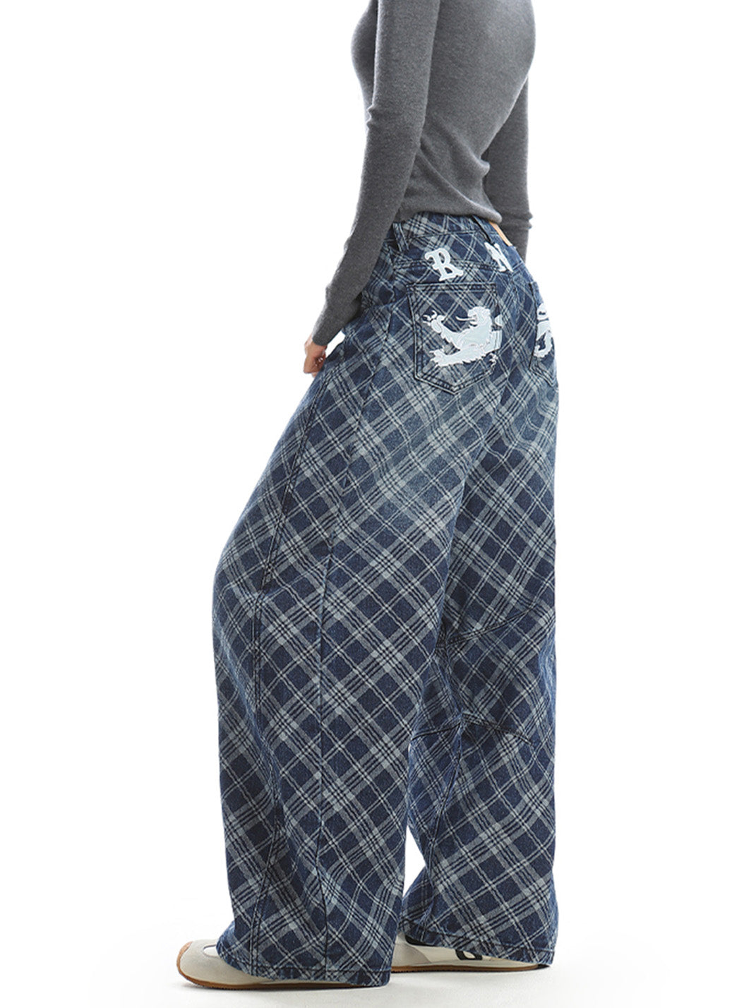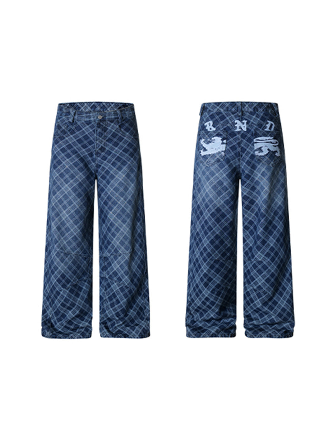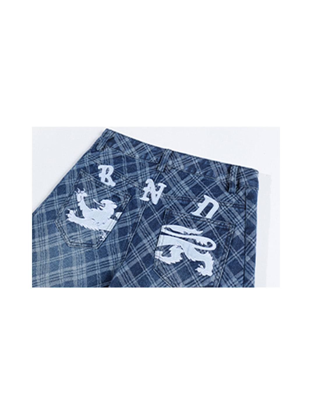 BIGGOLD | Embroidered Plaid Deconstructed Denim Pants saltar al contenido