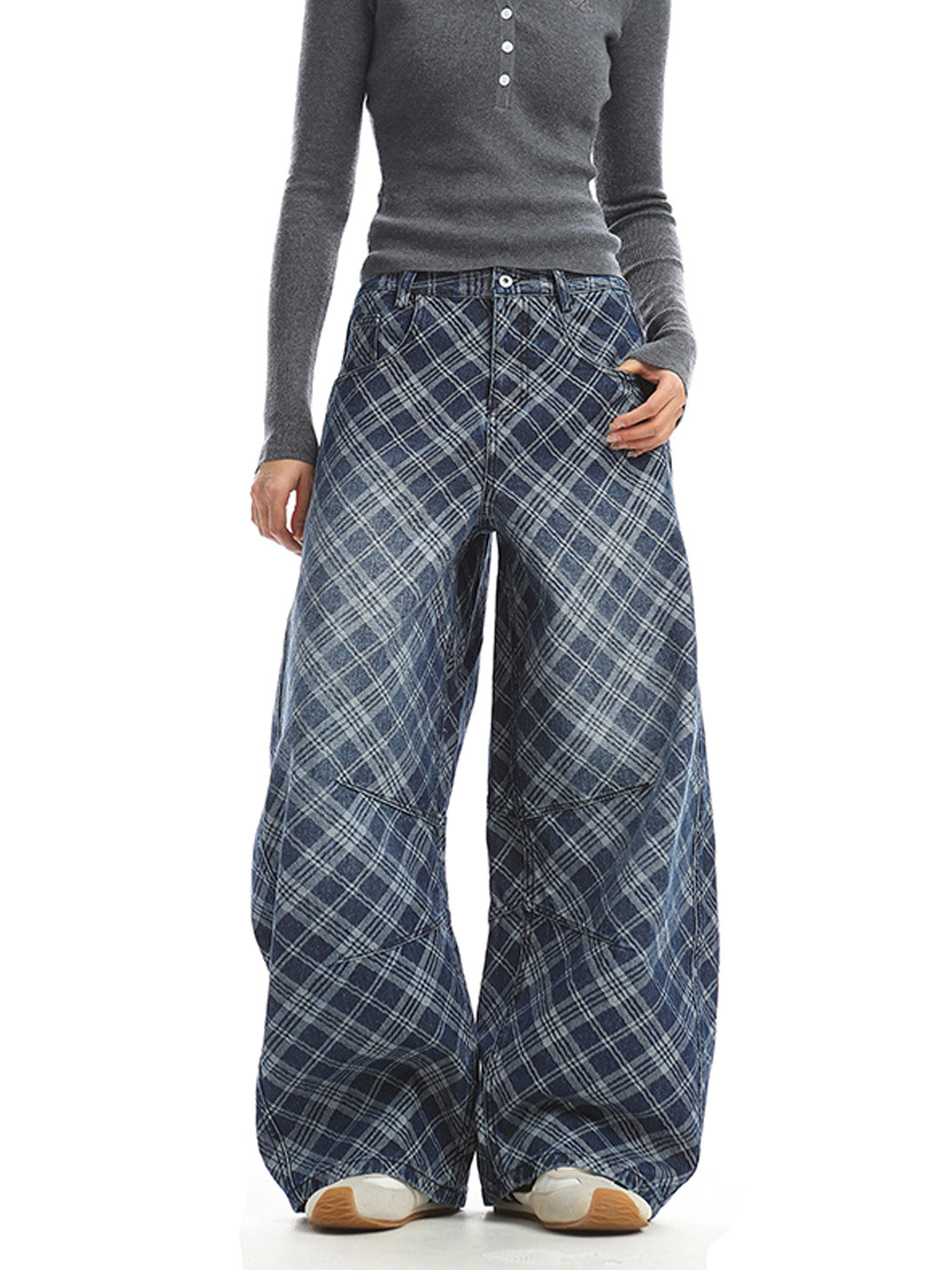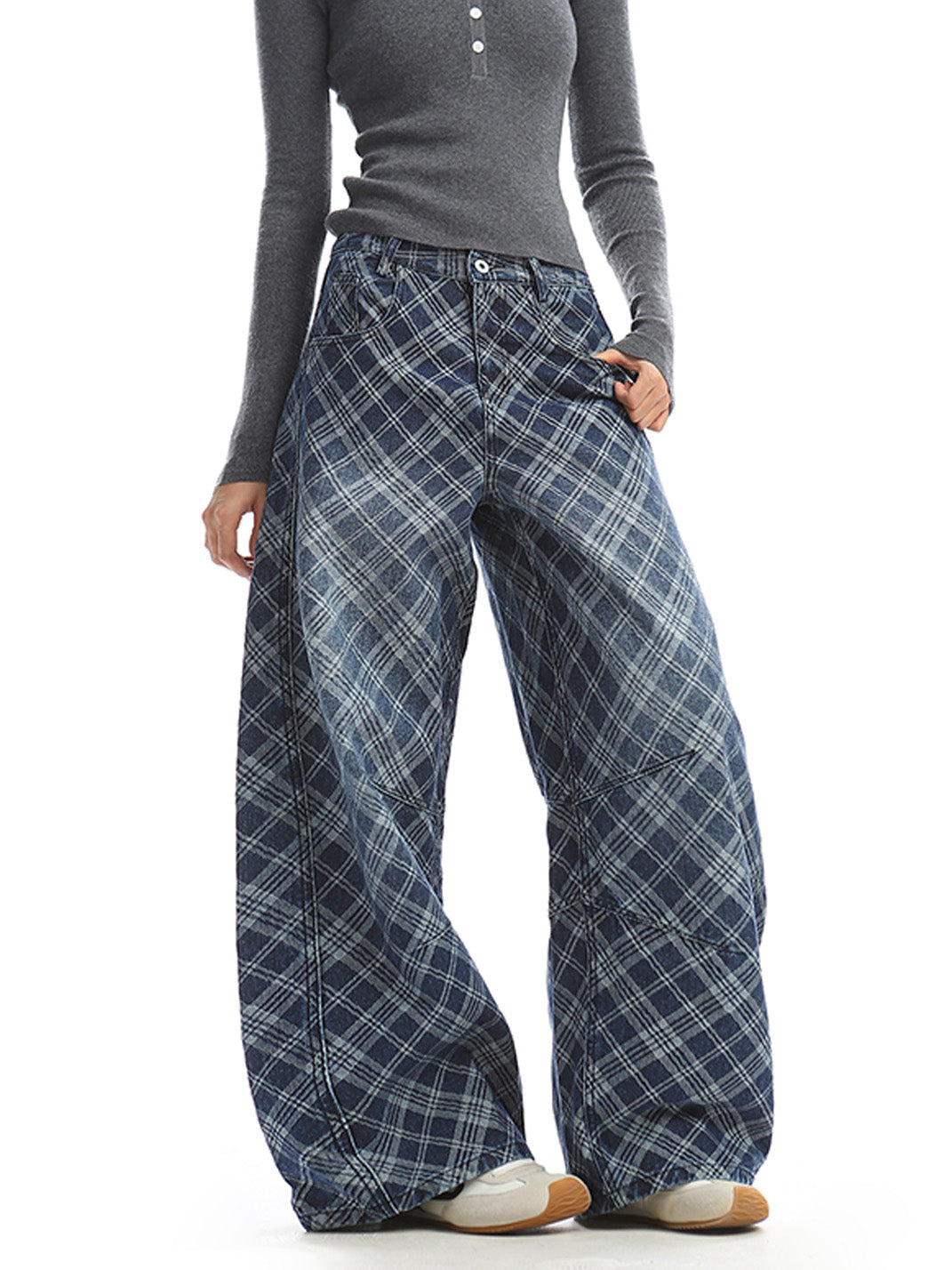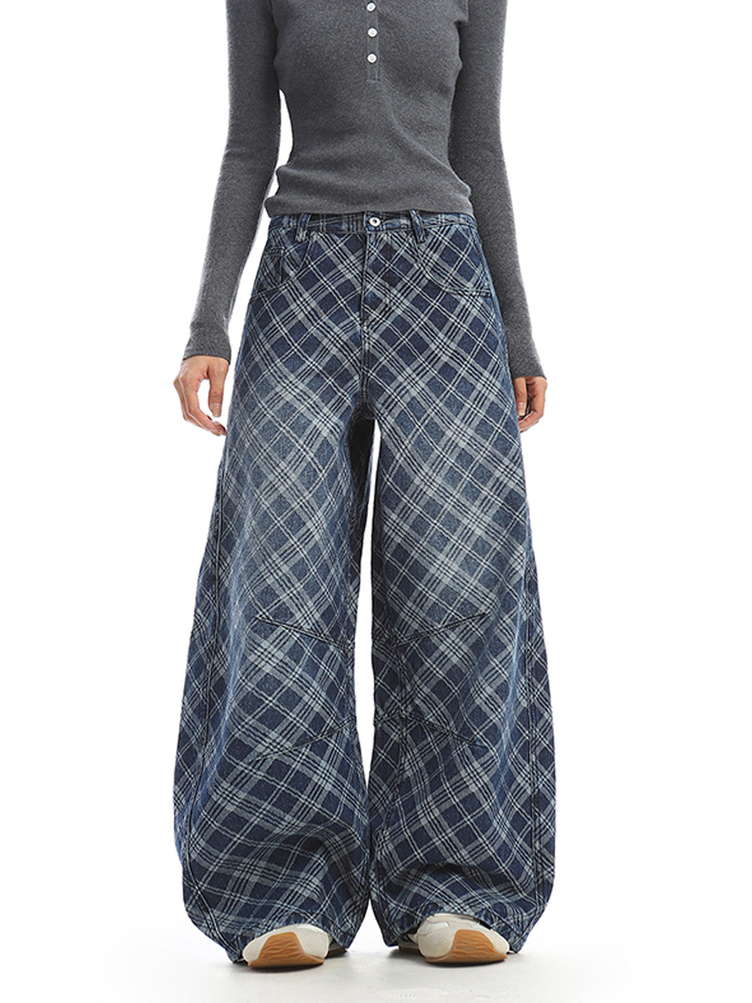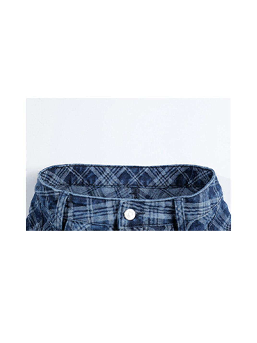 BIGGOLD | Embroidered Plaid Deconstructed Denim Pants saltar al contenido