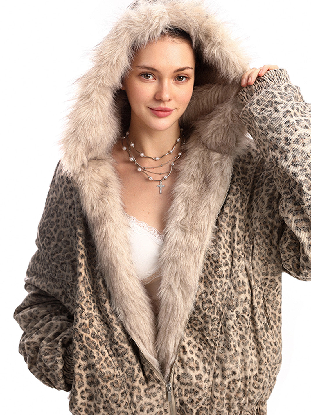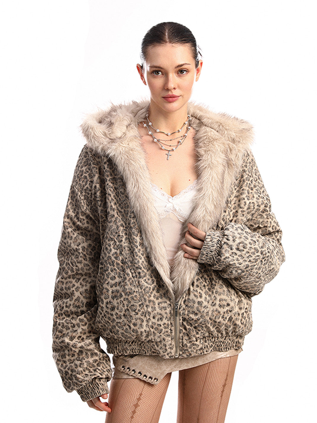 BIGGOLD | Leopard Print Hooded Coat saltar al contenido