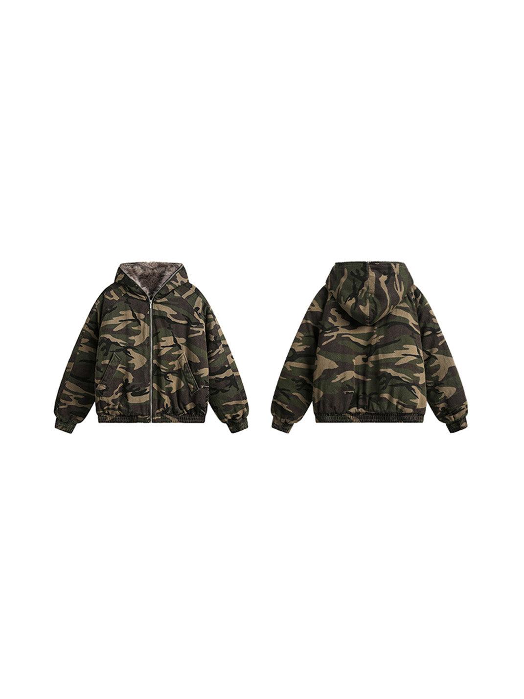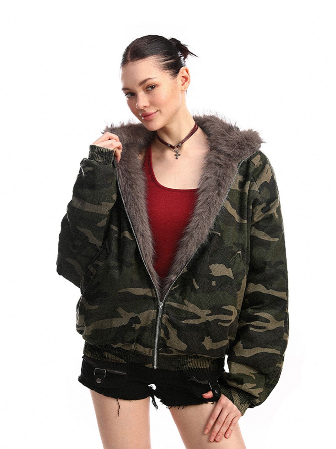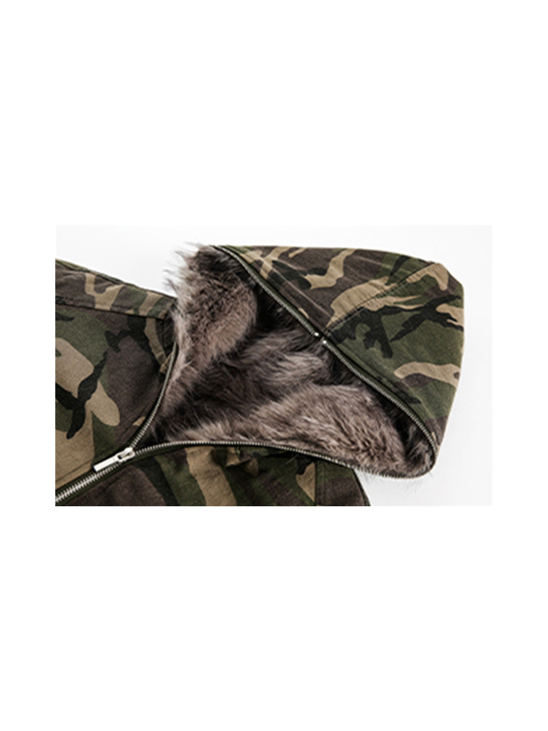 BIGGOLD | Vintage Camouflage Faux Fur Hooded Coat saltar al contenido