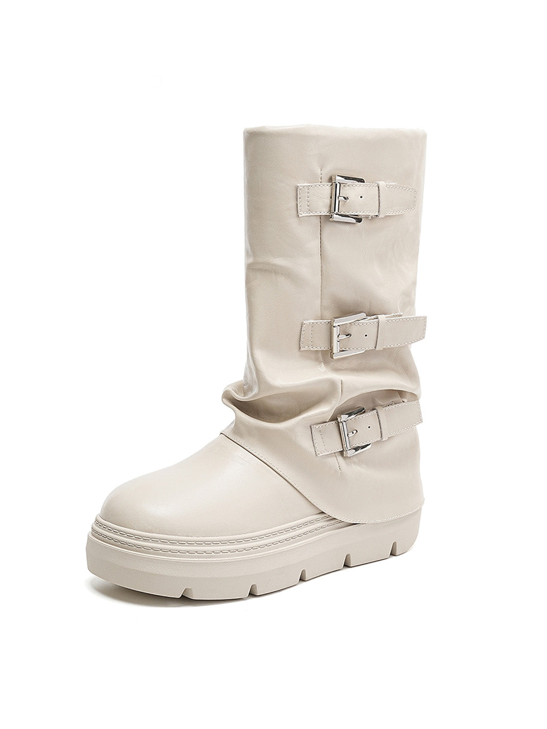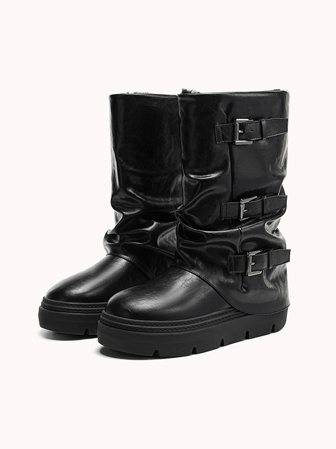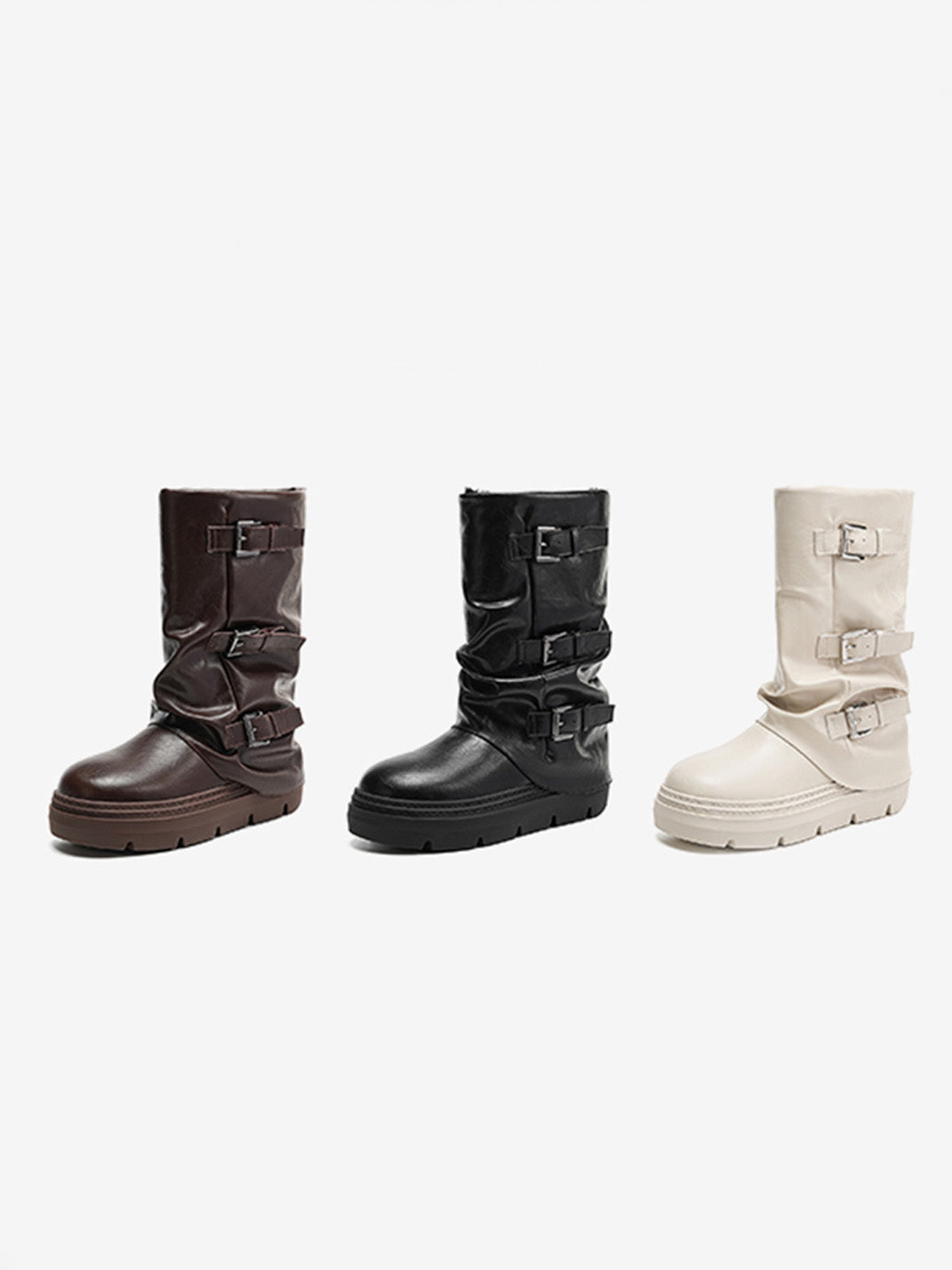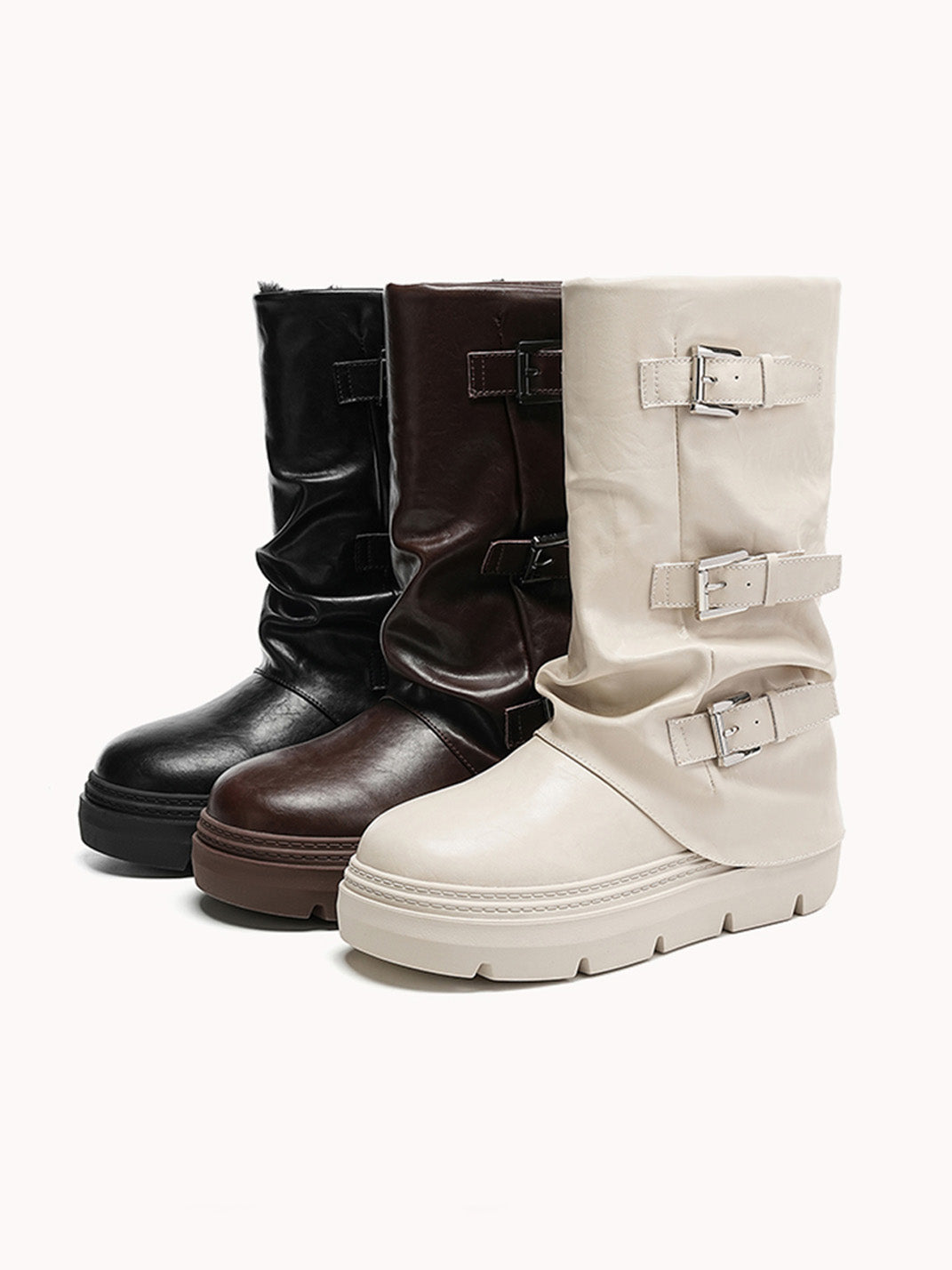 C.BANNER丨Belt Buckle Platform Mid-Calf Boots