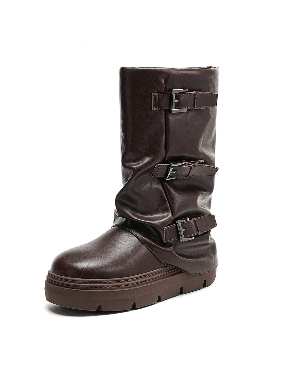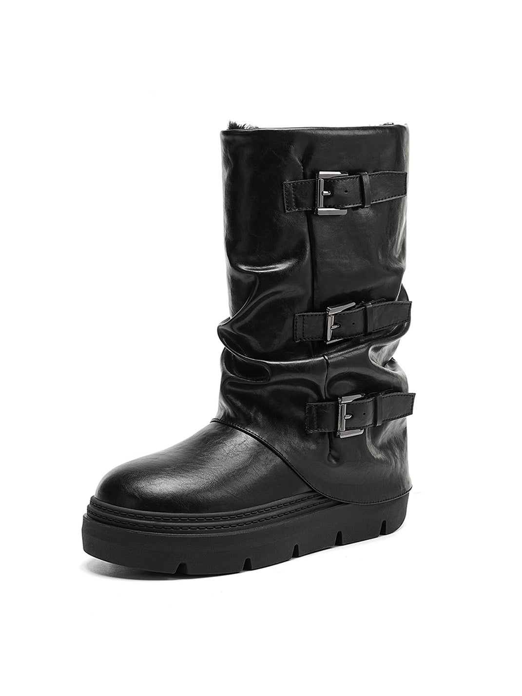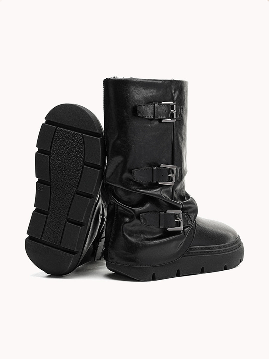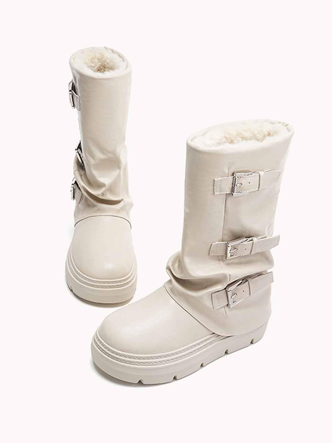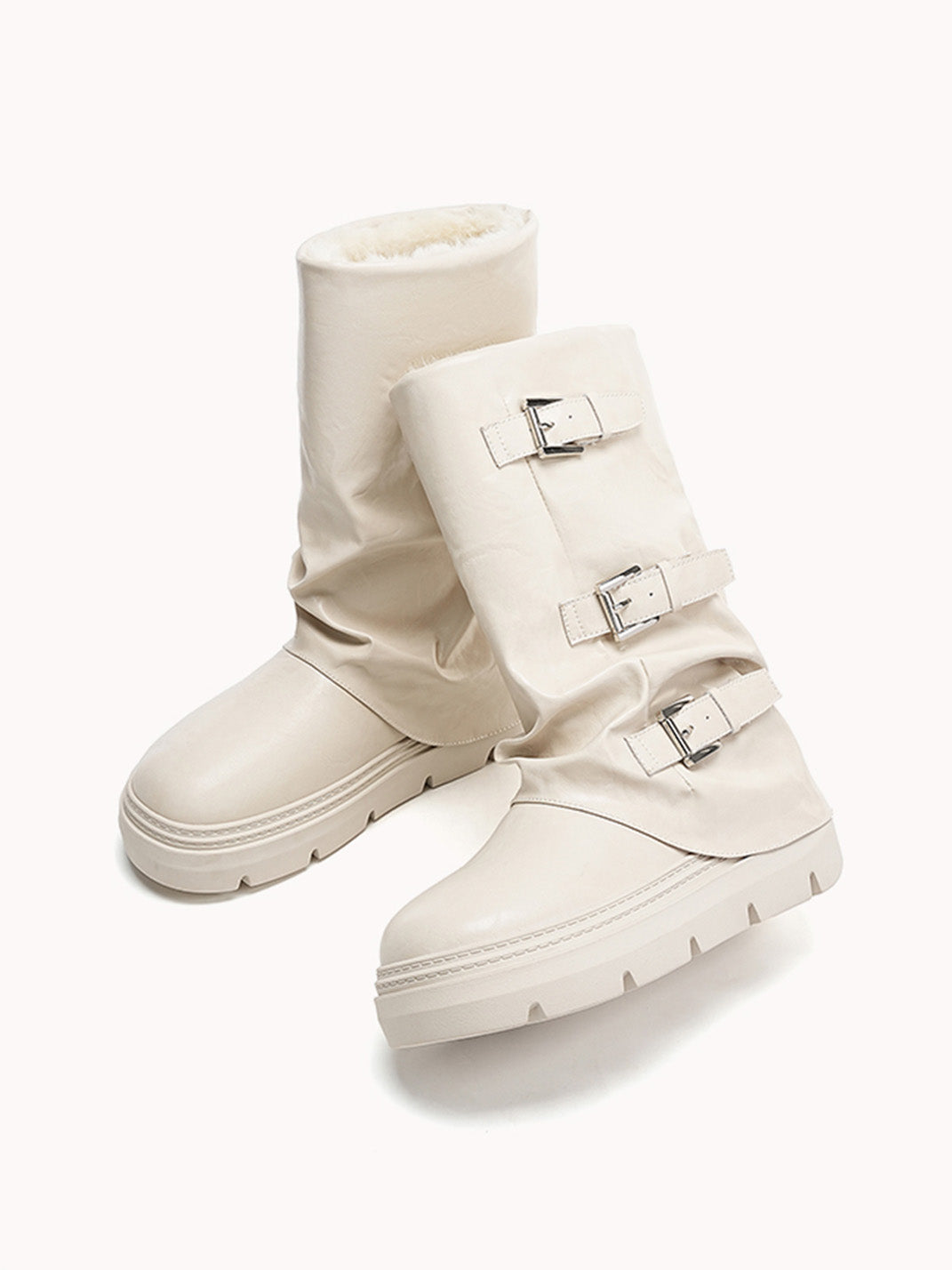 C.BANNER丨Belt Buckle Platform Mid-Calf Boots