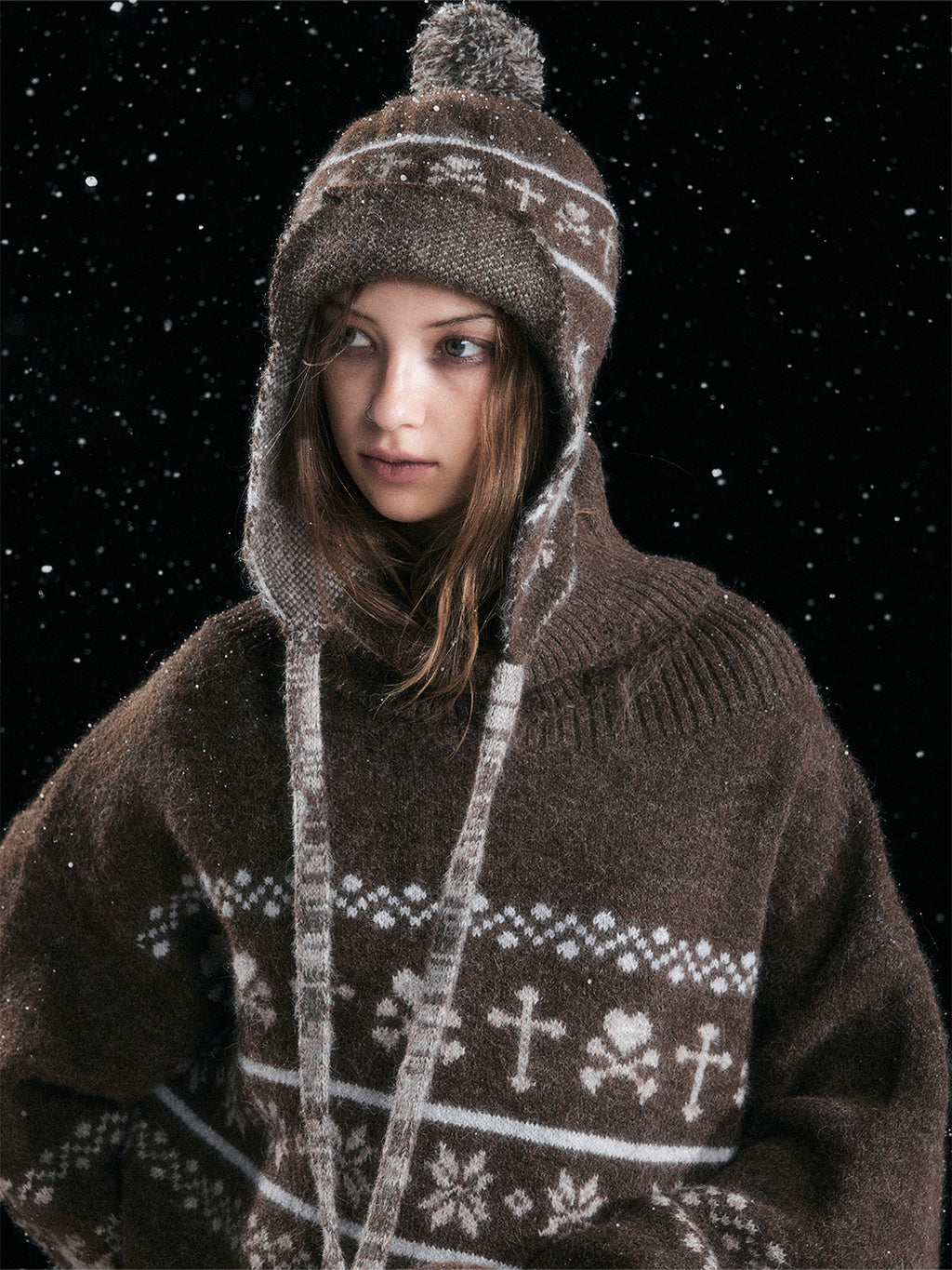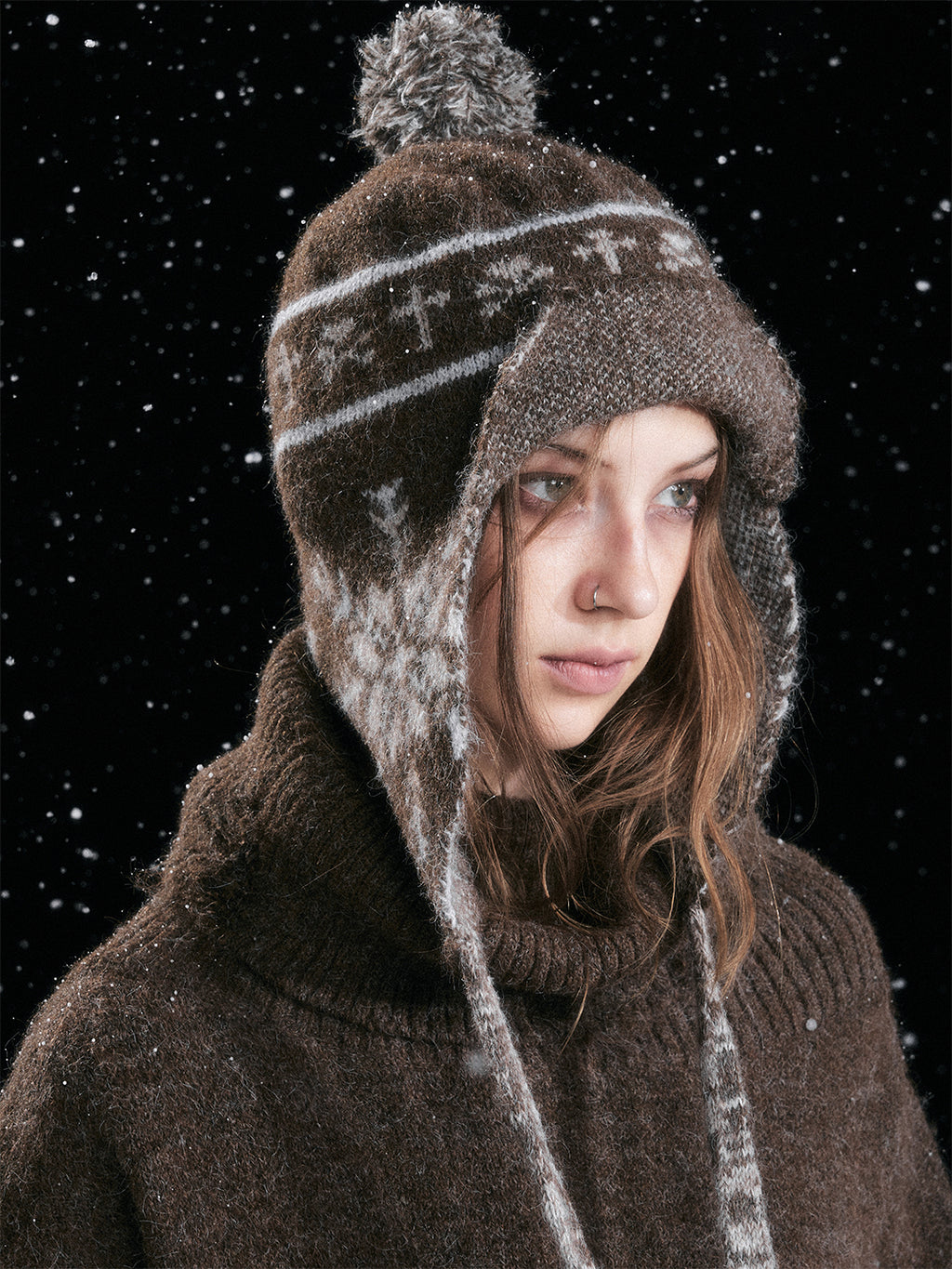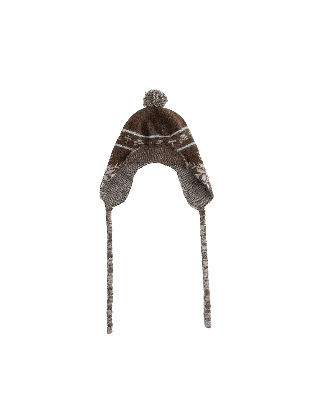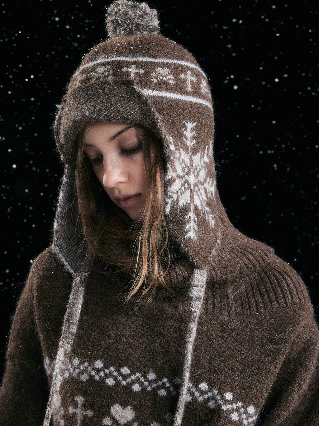 Cest Nous | Jacquard Knit Hat With Cord And Pom-Poms