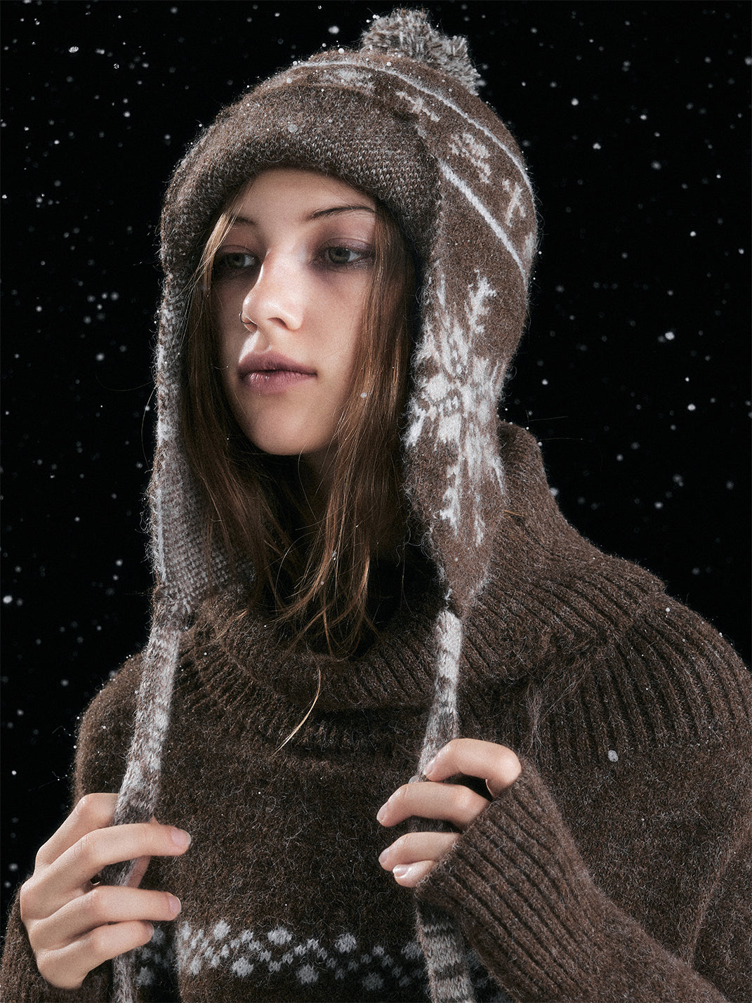 Cest Nous | Jacquard Knit Hat With Cord And Pom-Poms saltar al contenido