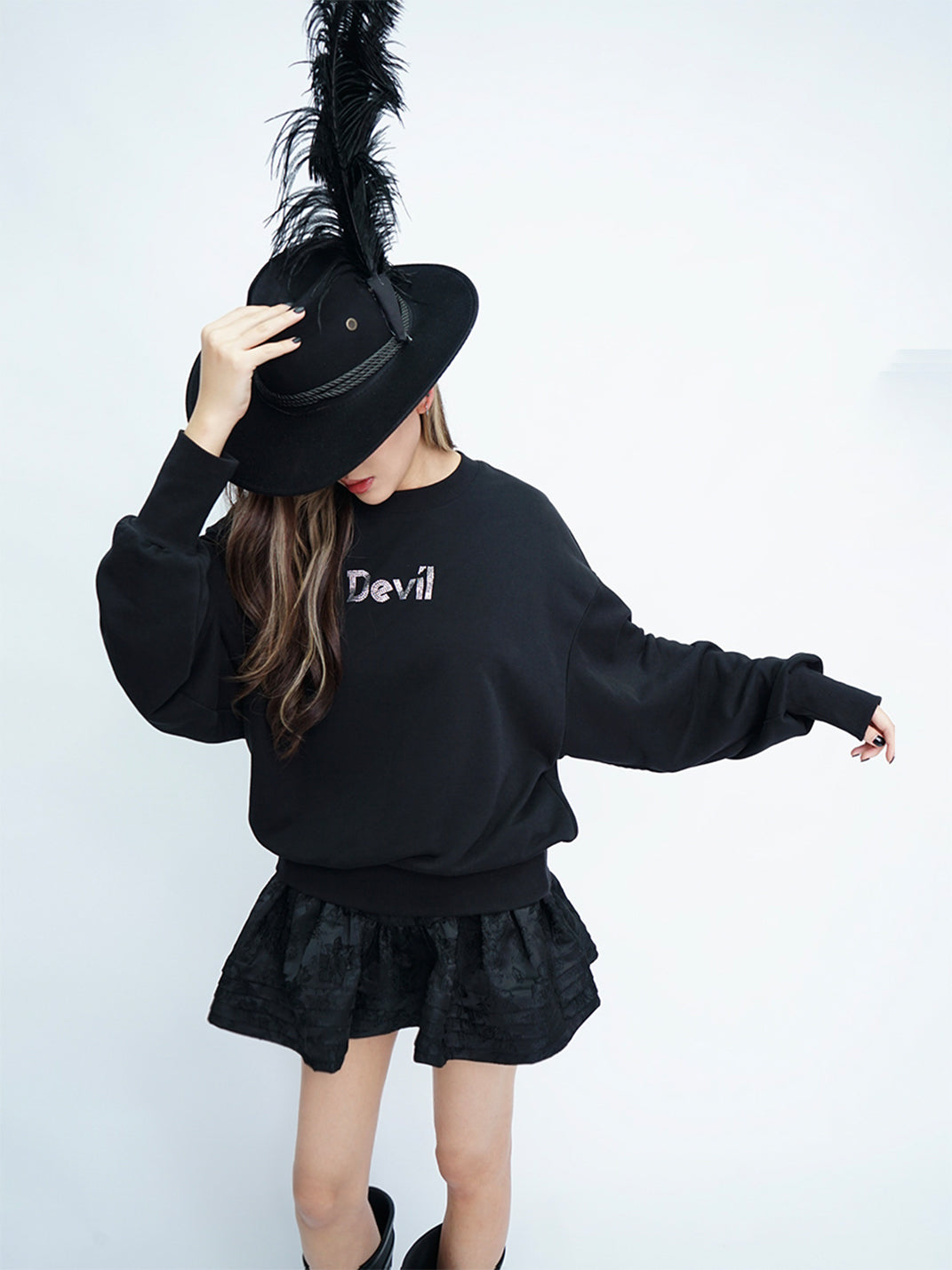 CLP | Devil Rhinestone Sequin Wing Sweatshirt saltar al contenido