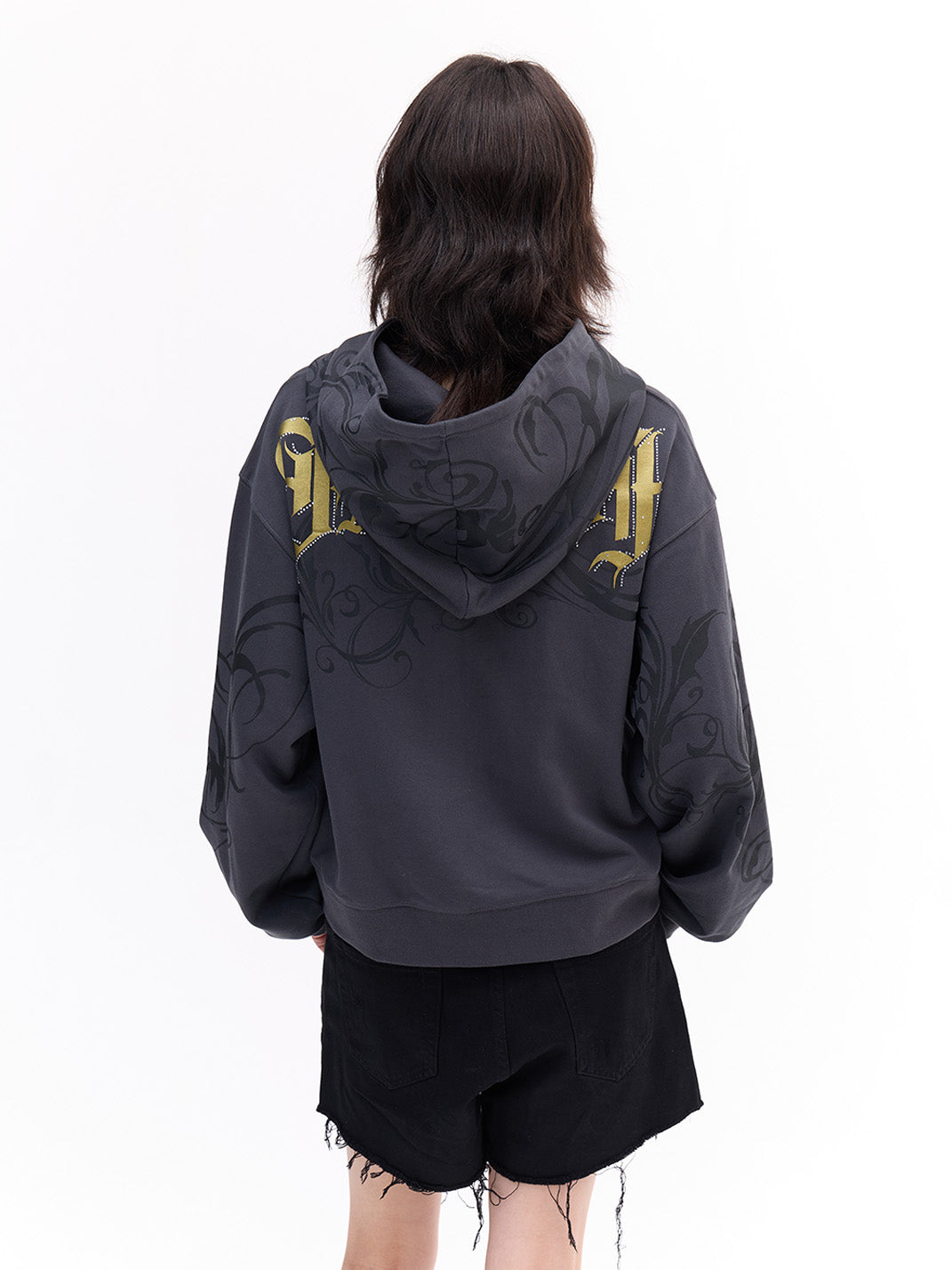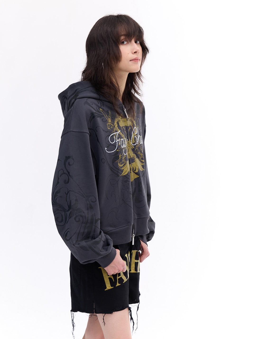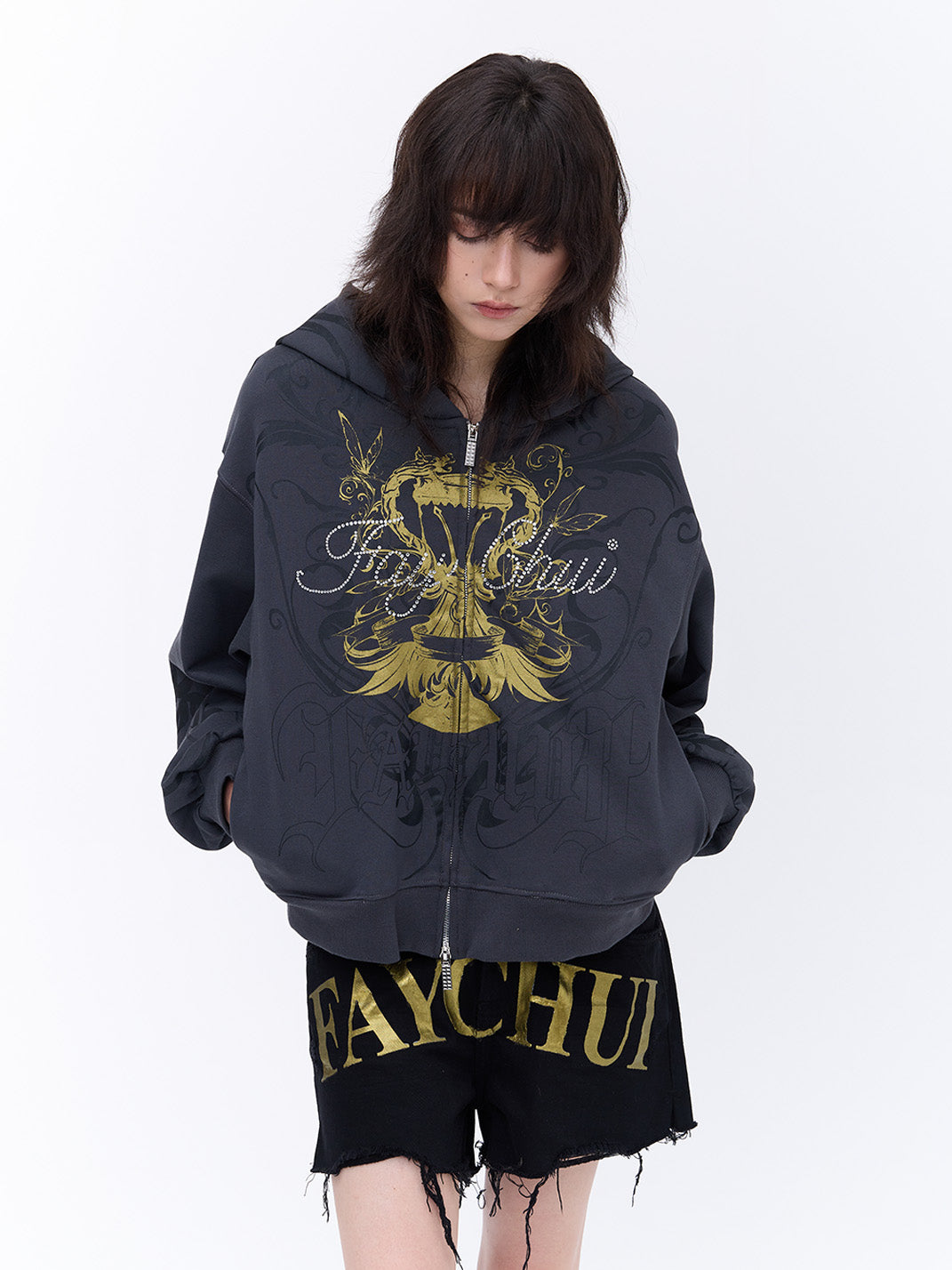 FayChui | Vintage Wash Gold Print Hoodie Jacket