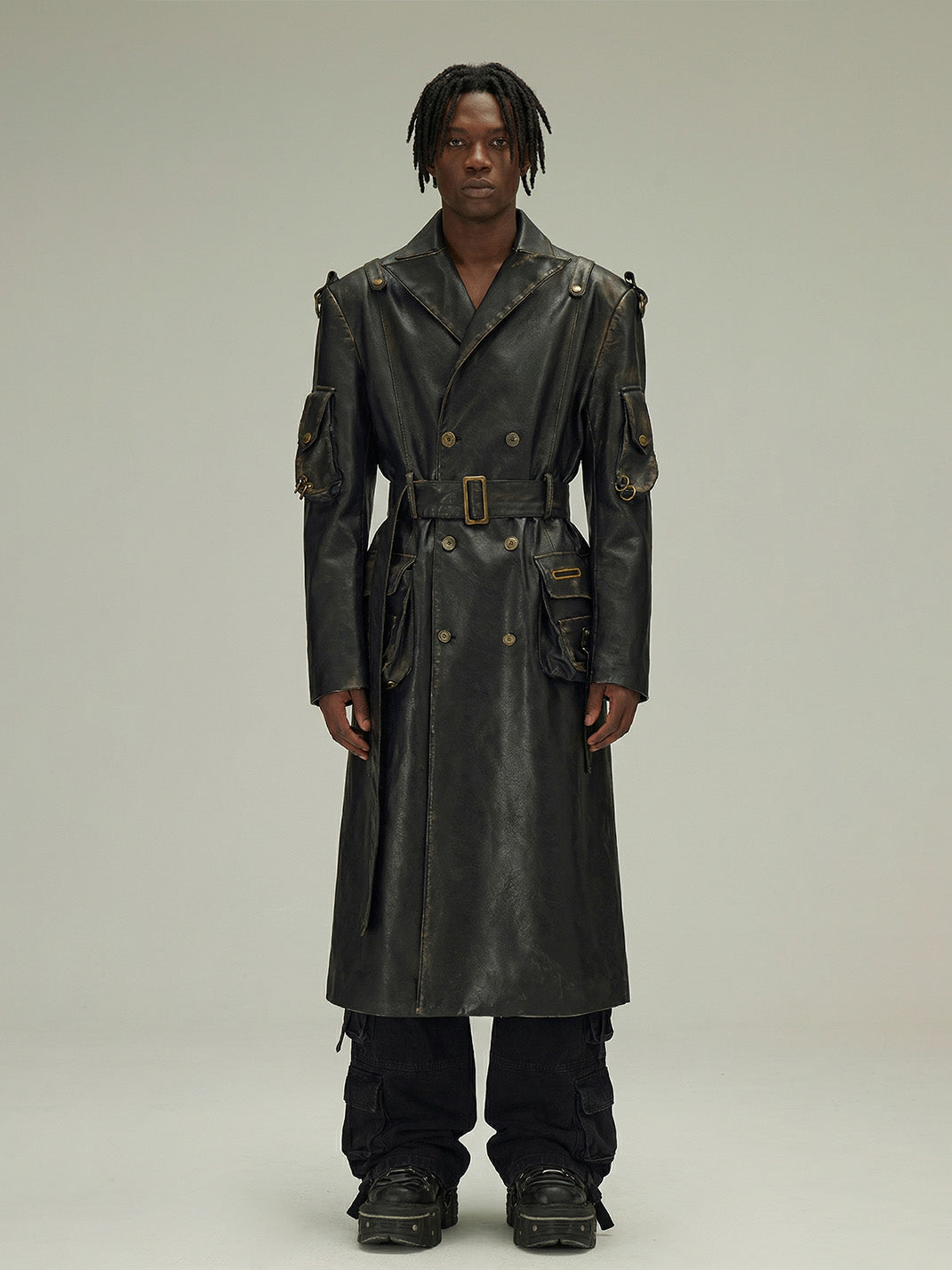 Flyerrer | Dyed Vintage Washed Leather Trench Coat