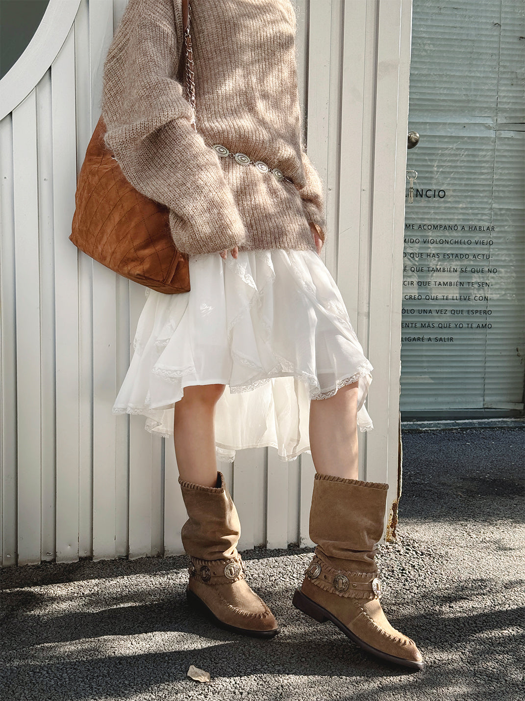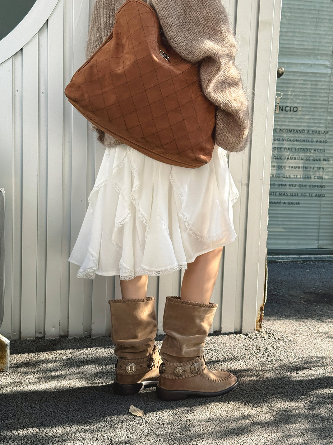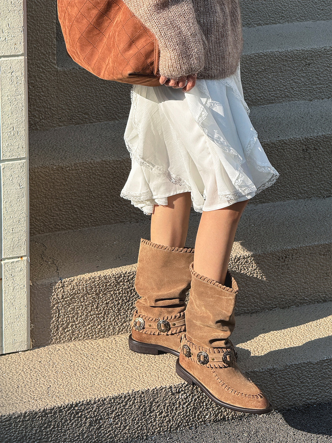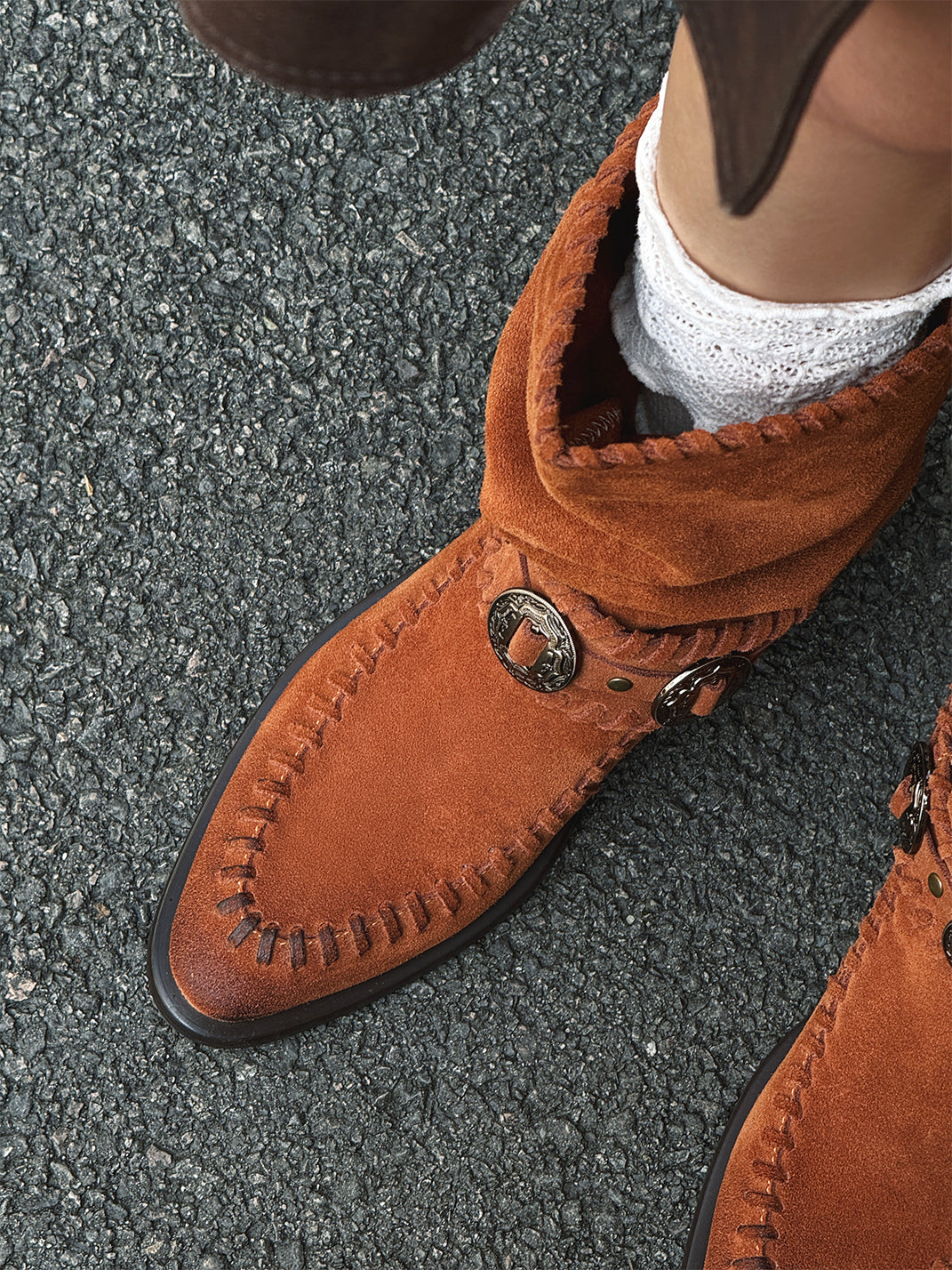 GSL | Retro Western Buckle Detail Suede Mid-calf Boots