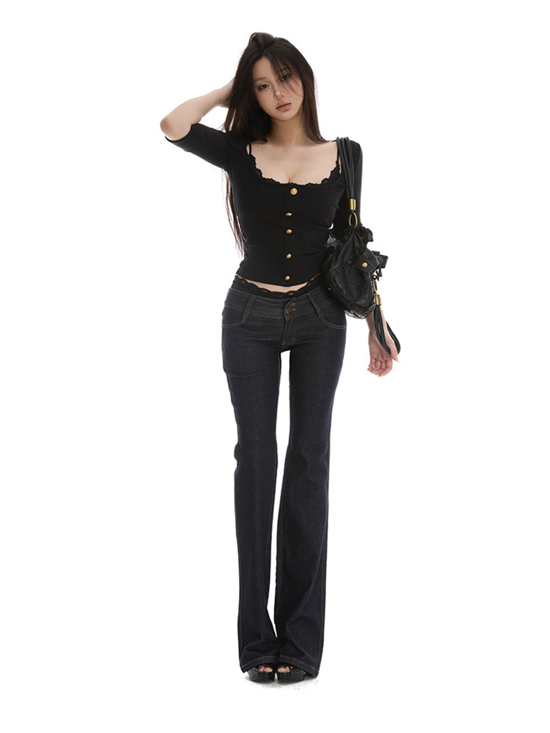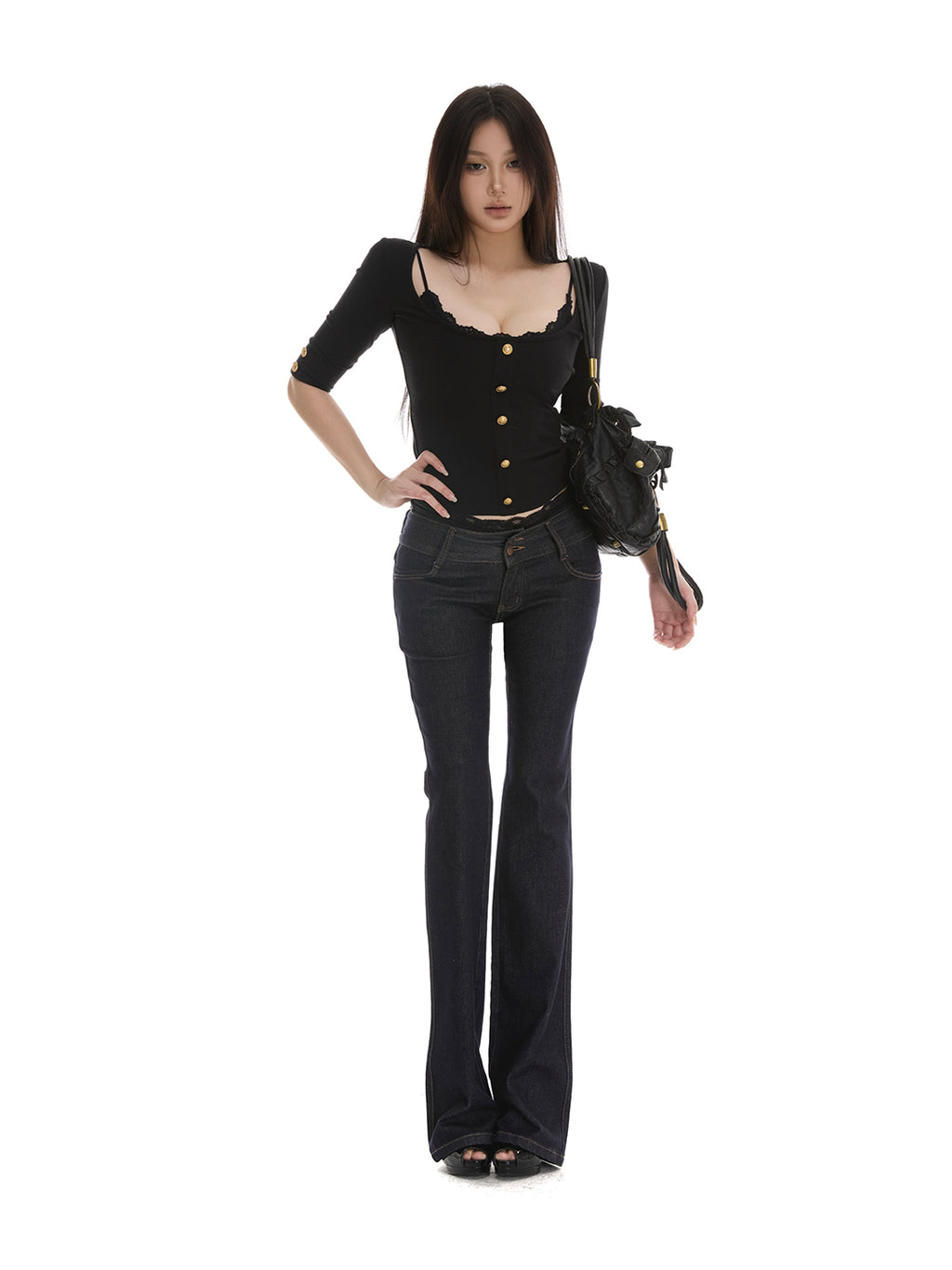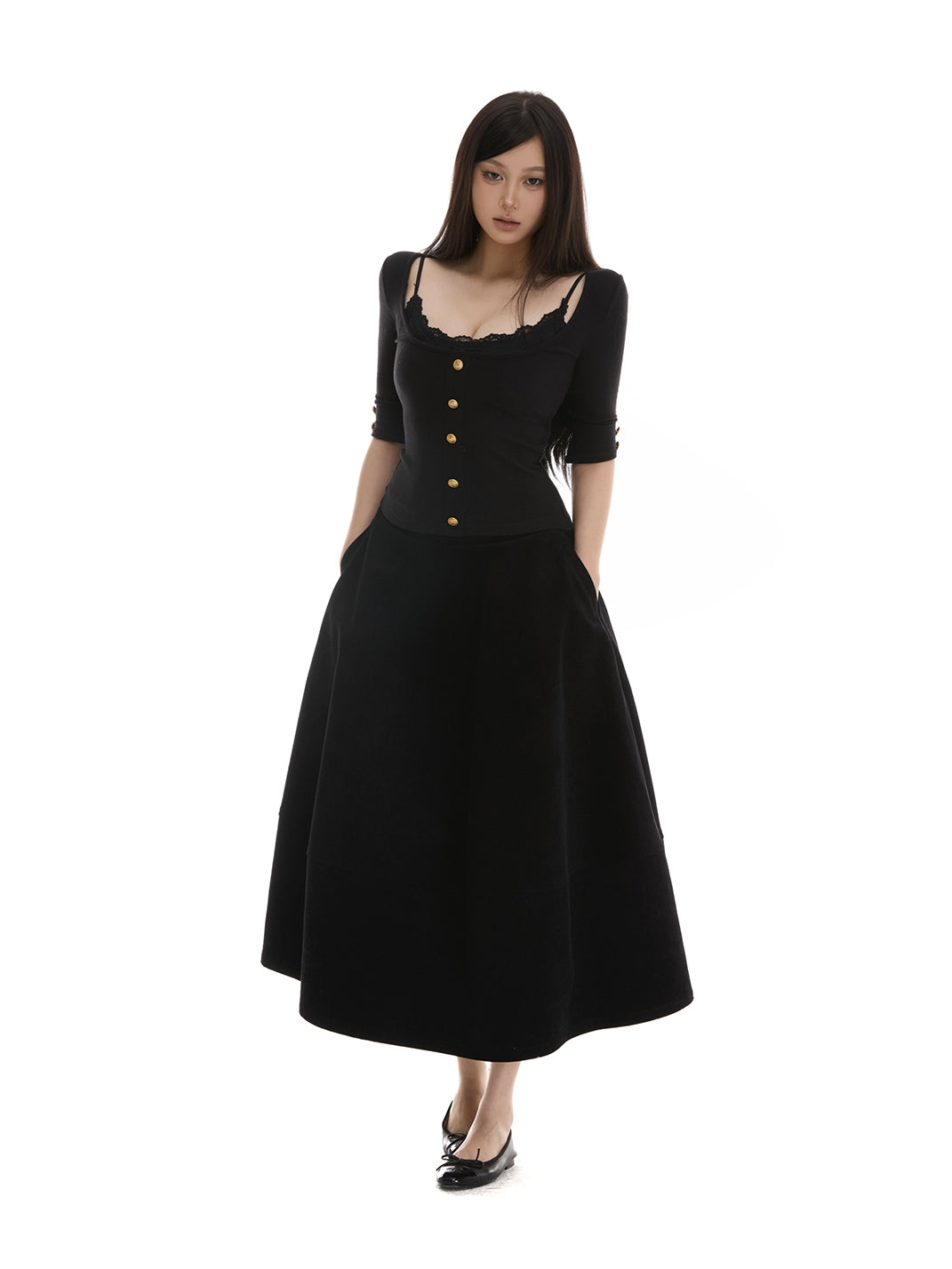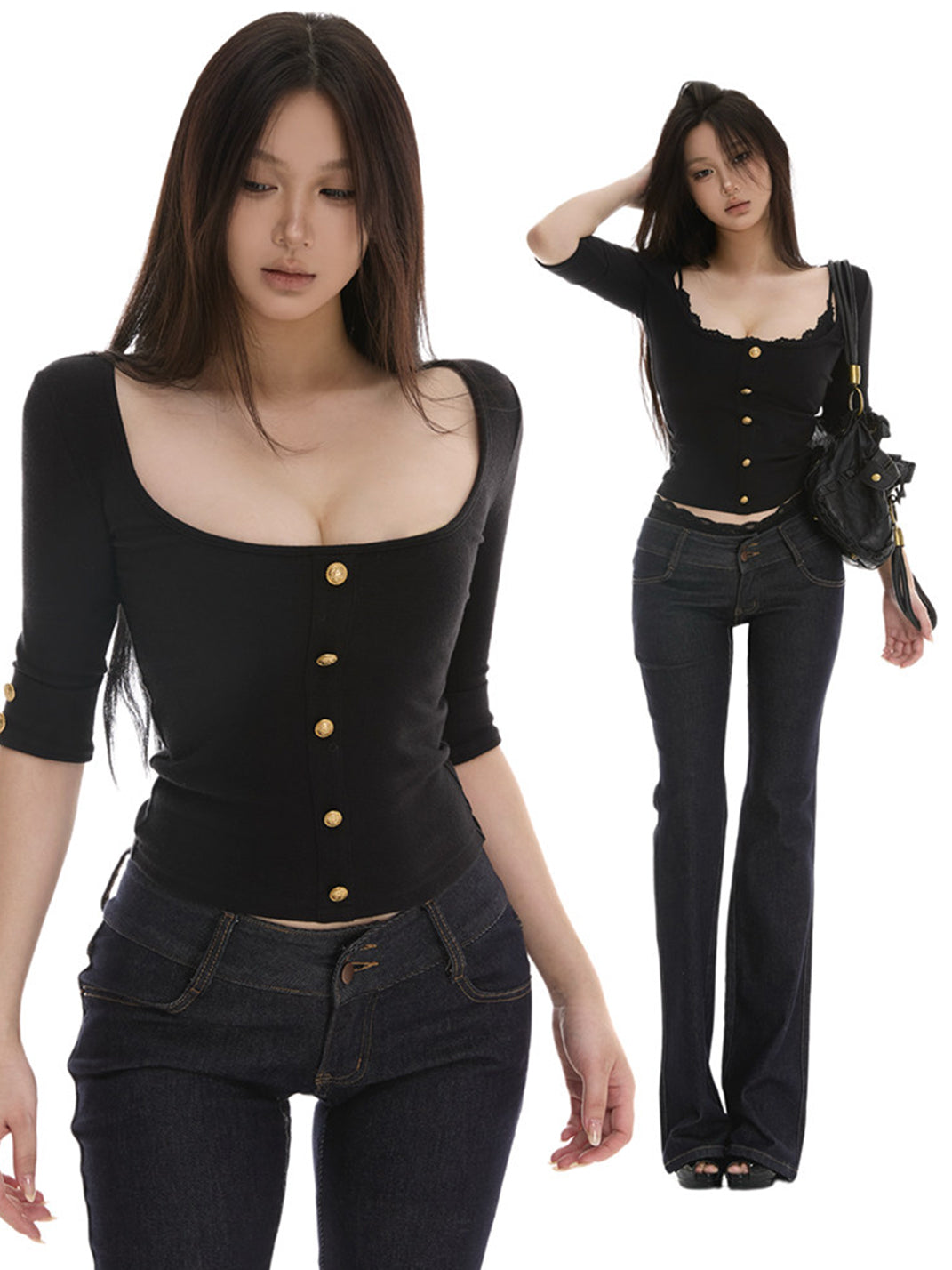 itsdinn | Square Neck Short Top With Gold Buttons