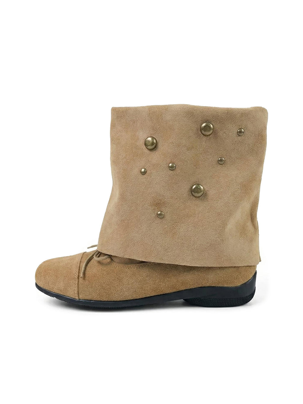 The shaft can be worn upright or folded down for an instant change of look. When folded, the boot opening is carefully adorned with metal studs of varying sizes, adding a touch of rebellious American flair to the soft suede.
