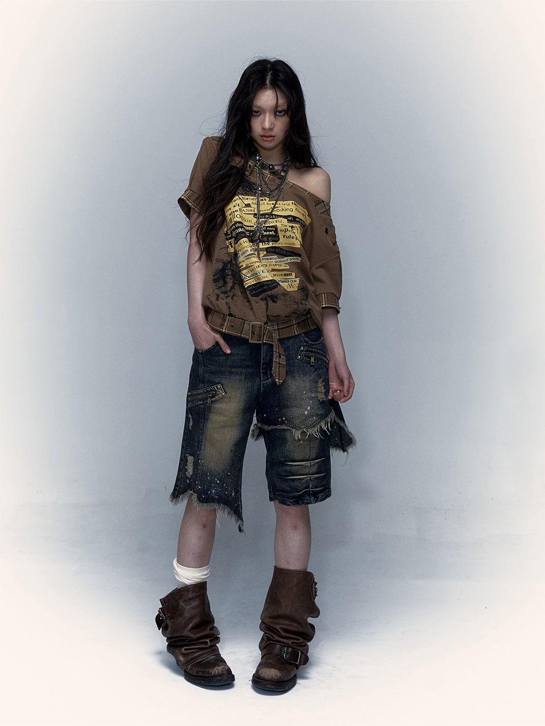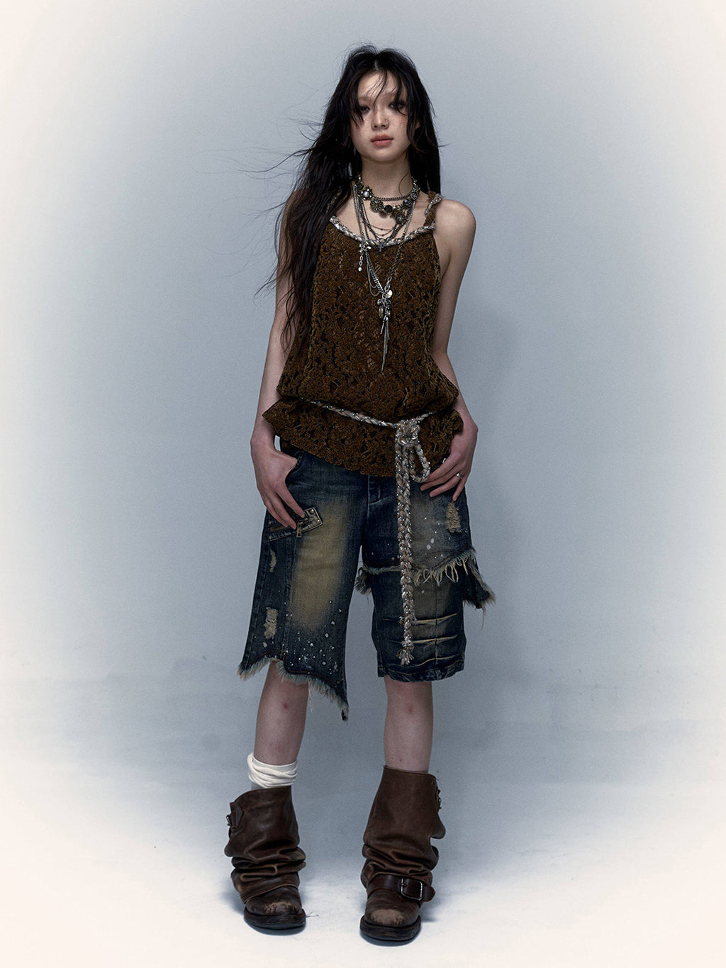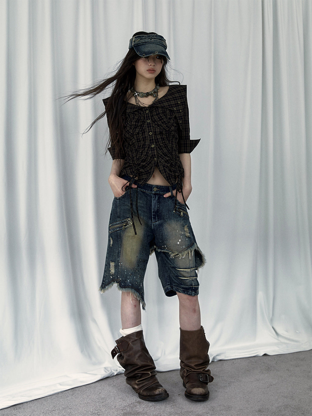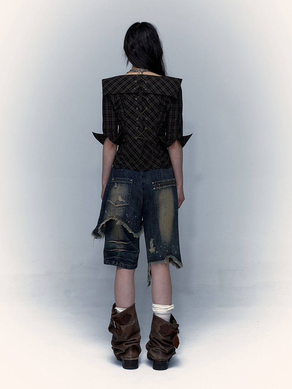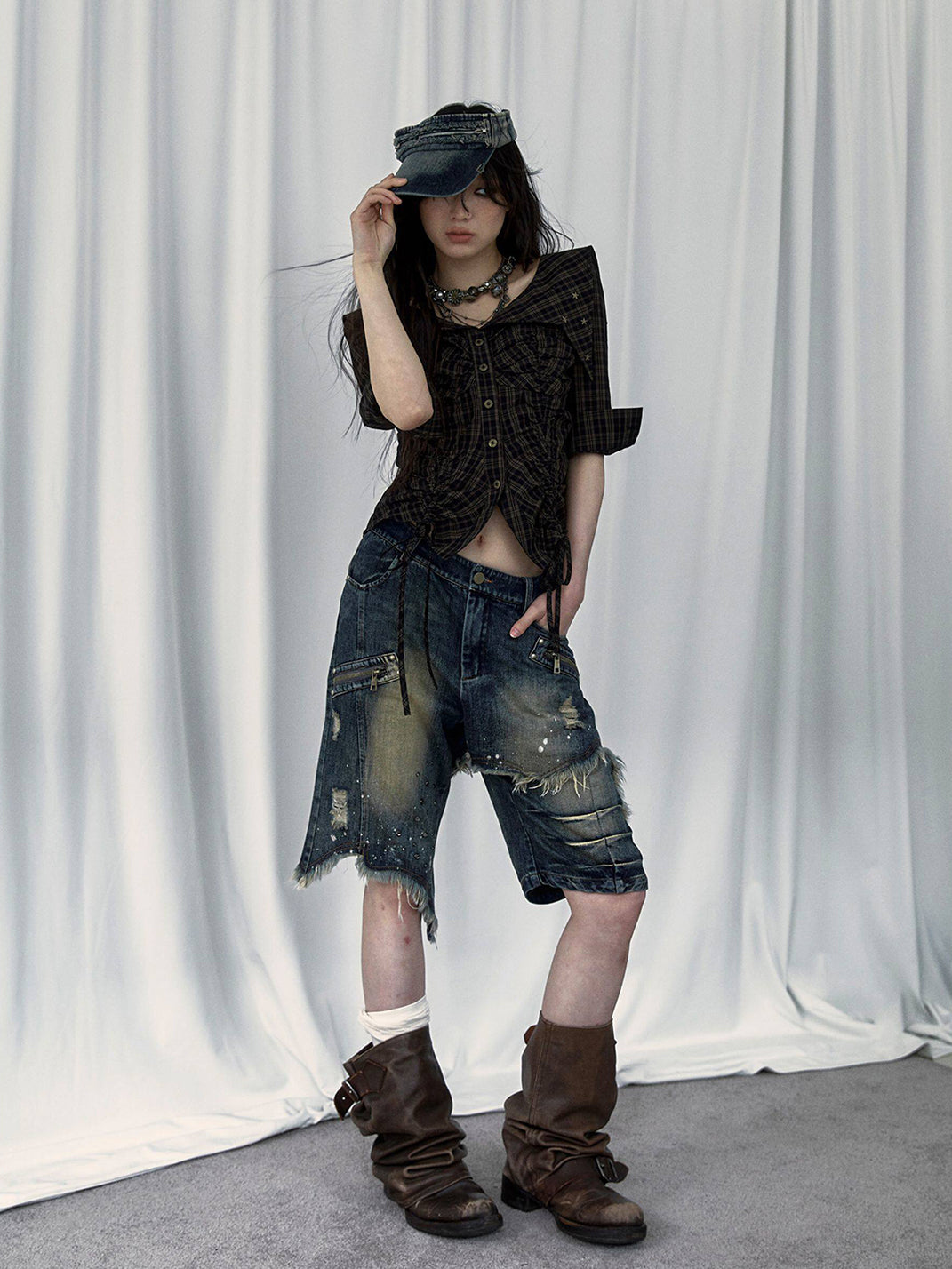 NO ROMANCE | Distressed Wide-Leg Cropped Jeans saltar al contenido