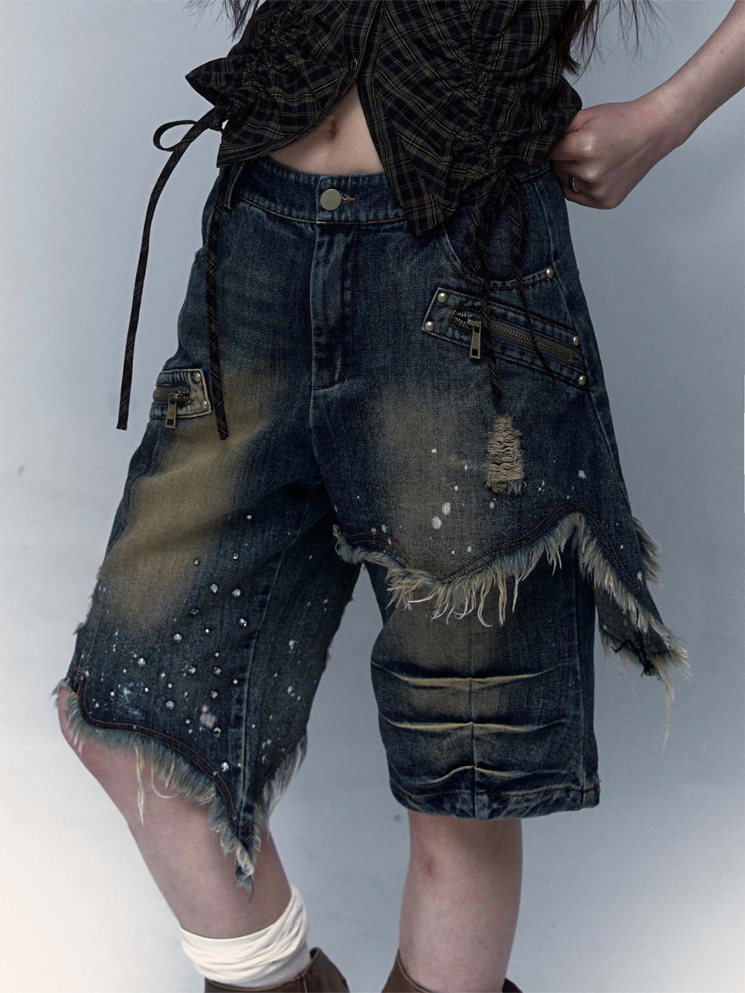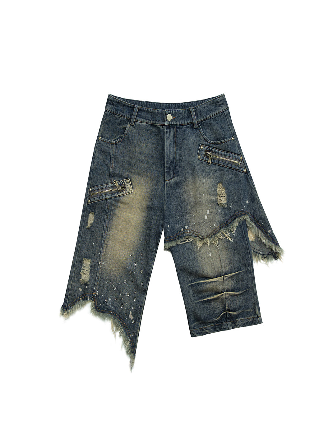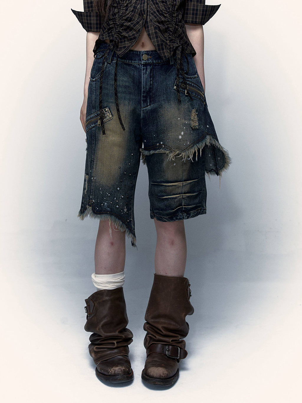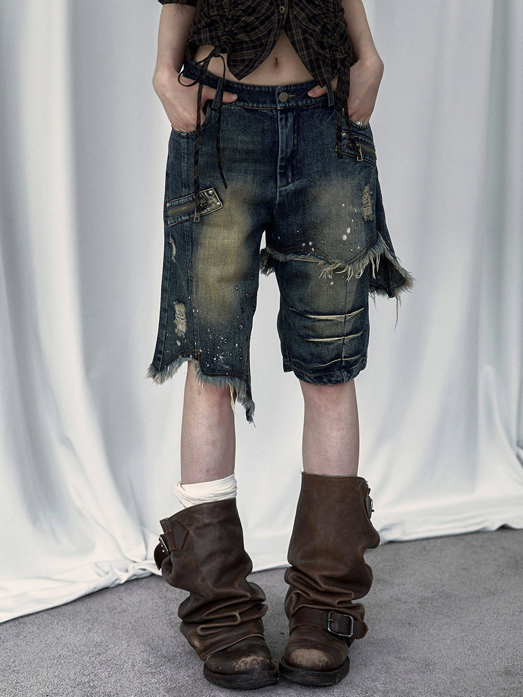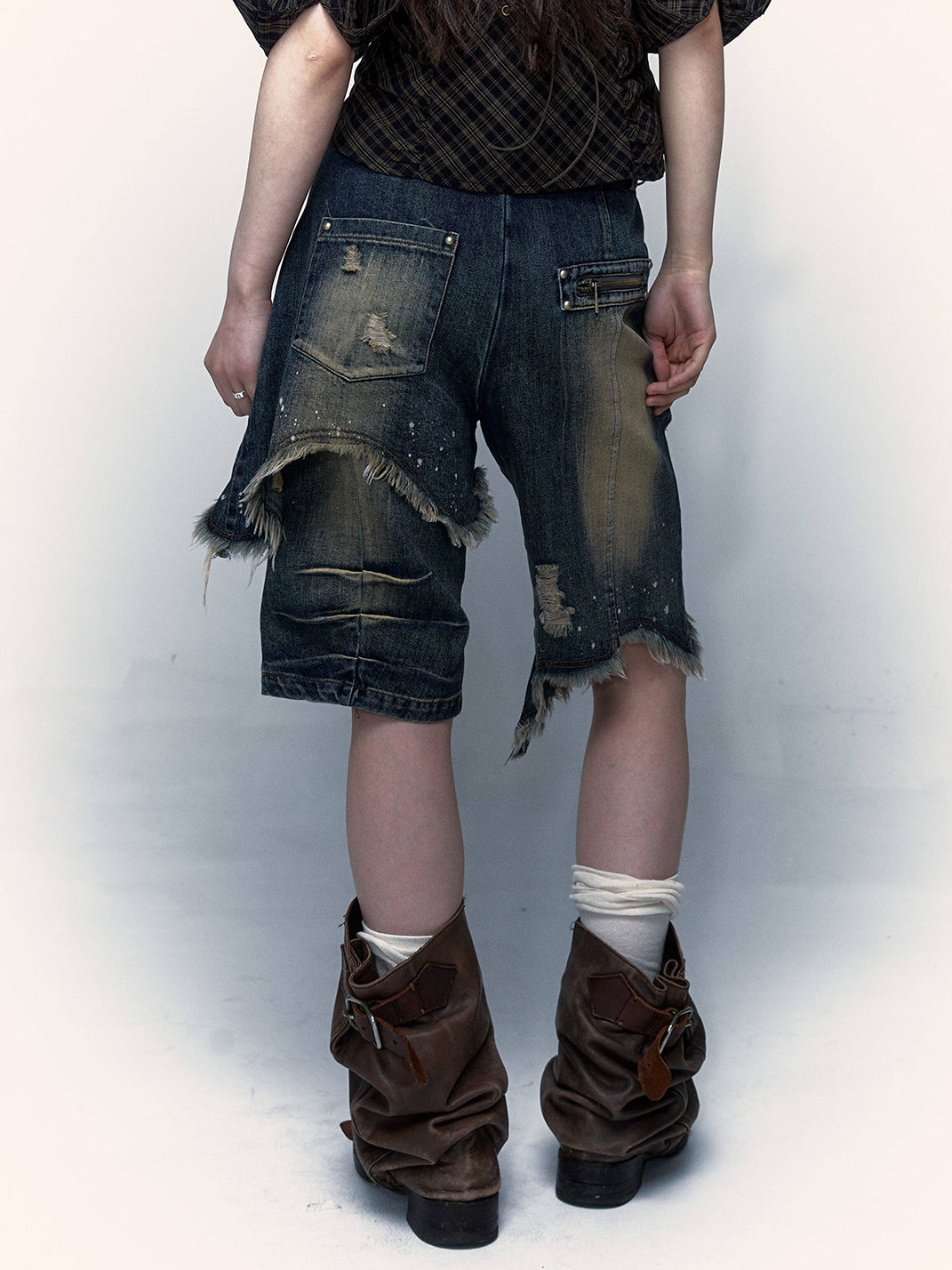 NO ROMANCE | Distressed Wide-Leg Cropped Jeans