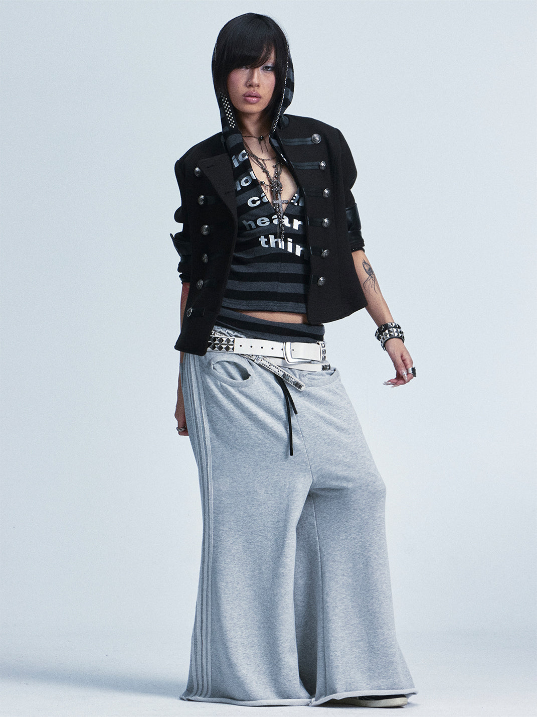 NONAME SPACE | Striped Studded Print Top and Trousers Set saltar al contenido