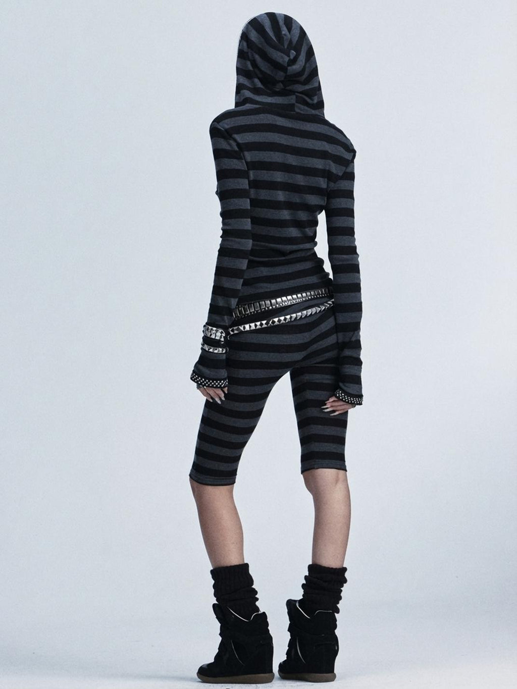 NONAME SPACE | Striped Studded Print Top and Trousers Set