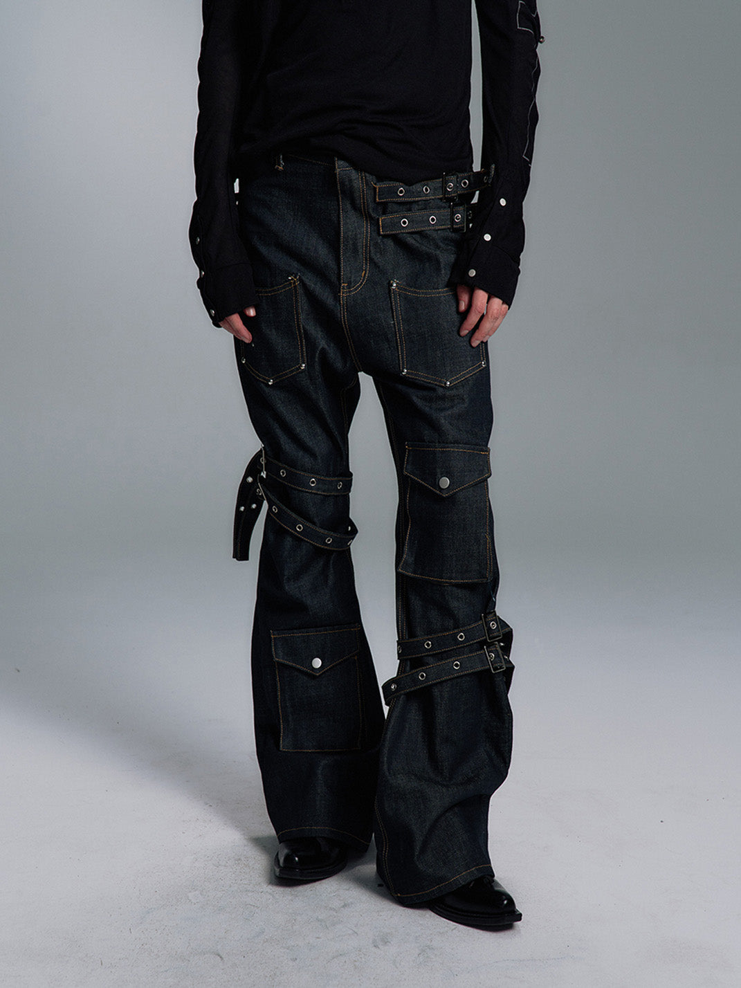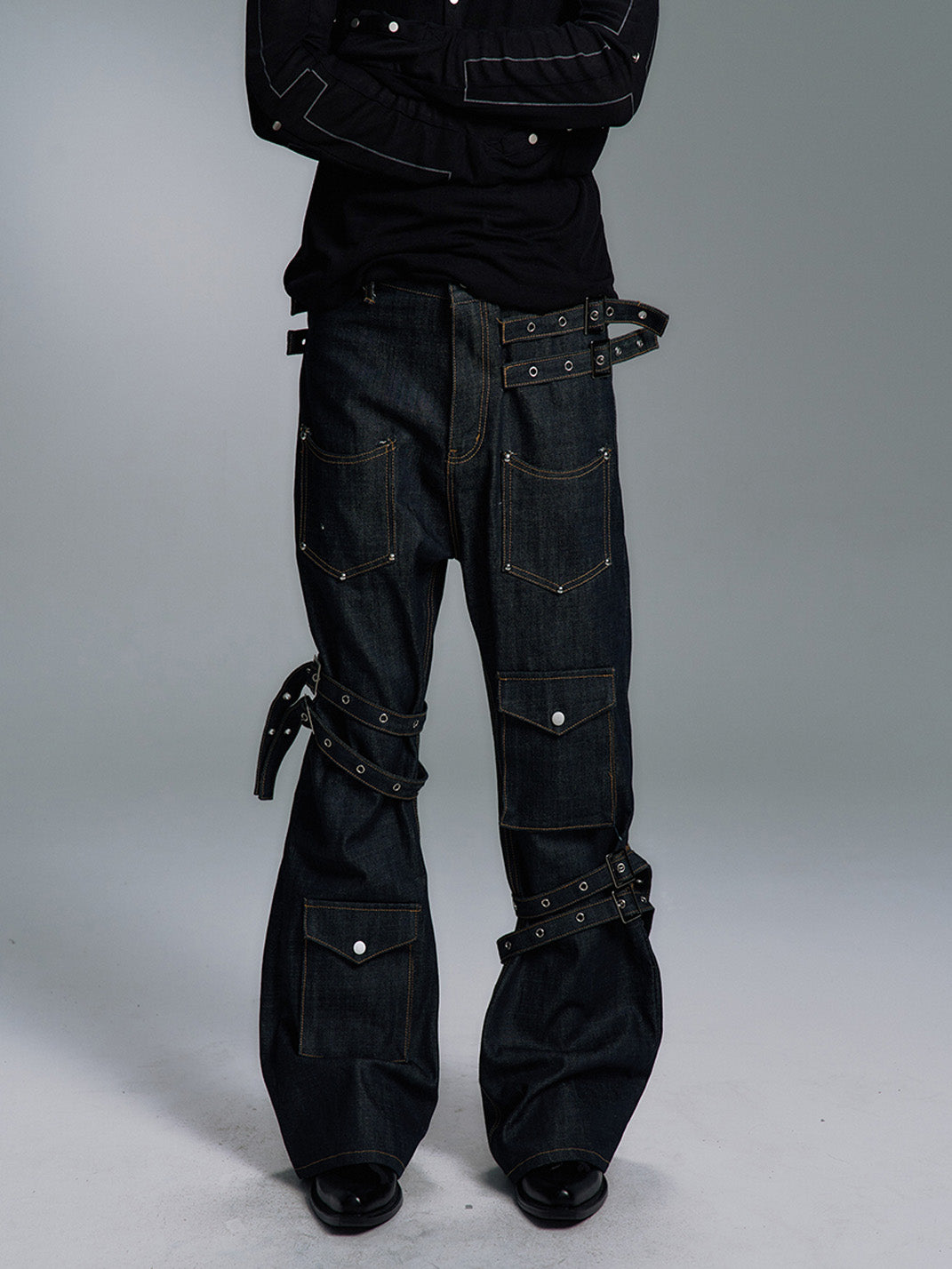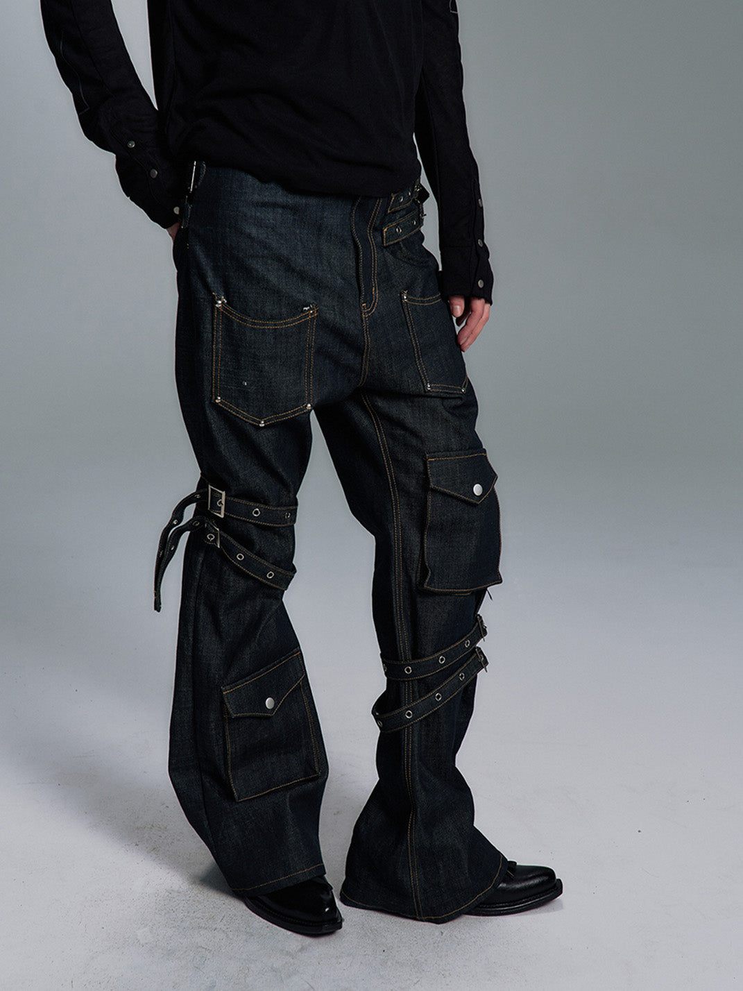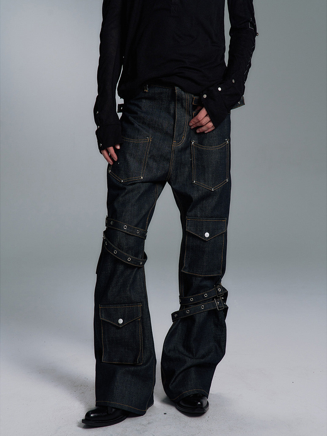 PAIKI | Lace-up Multi-pocket Straight-leg Denim Pants