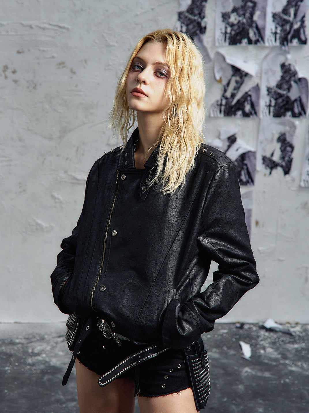 PAIKI | Skull Headphones Leather Jacket saltar al contenido