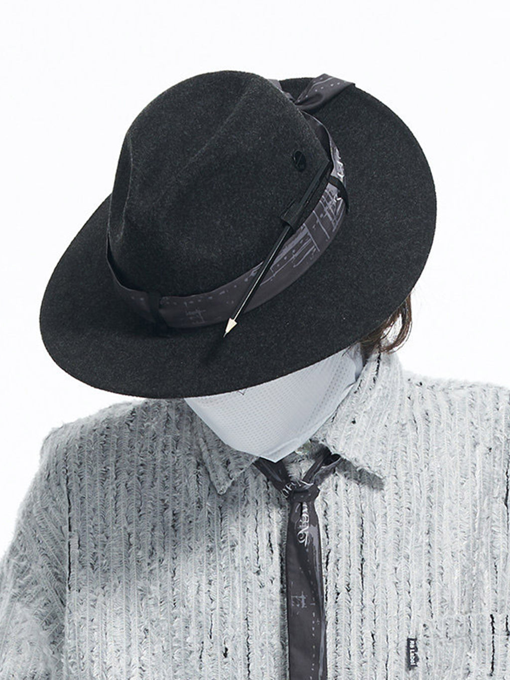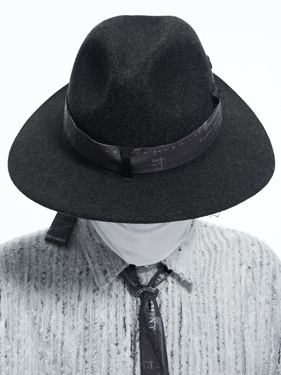 RELABEL | Wool Felt Detachable Silk-Scarf Fedora Hat