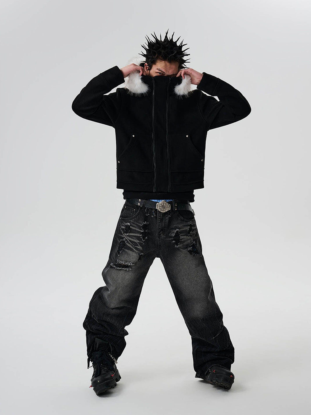 SGW | Detachable Fur Collar Double-Zipper Coat saltar al contenido