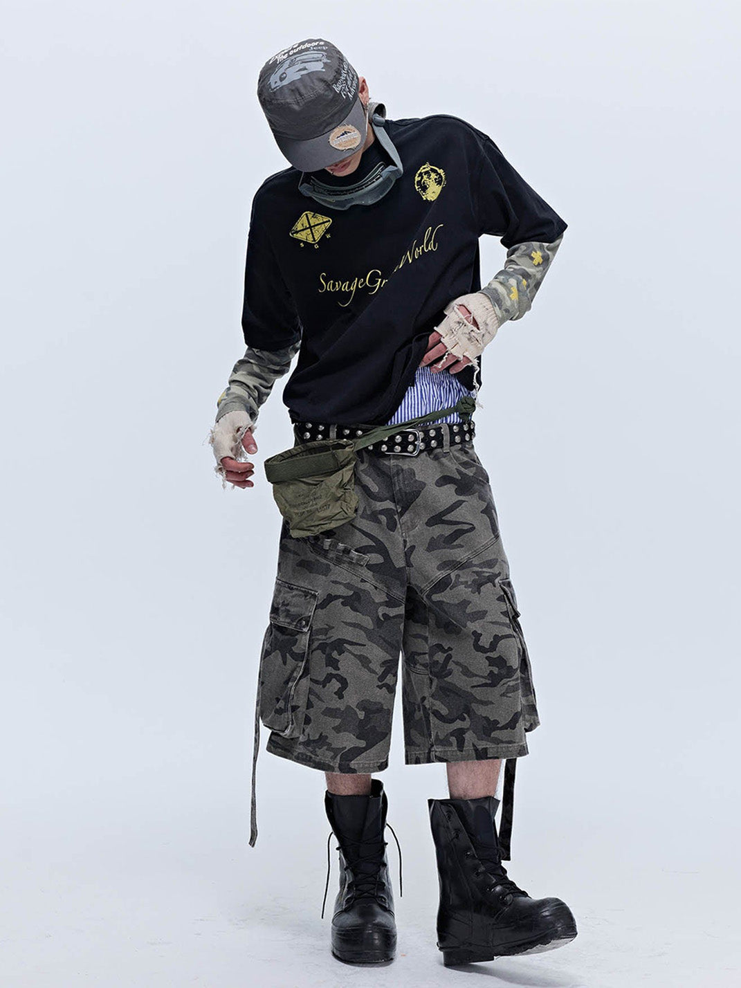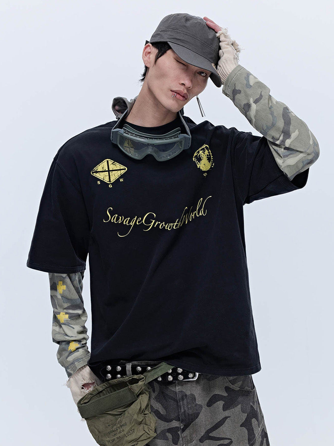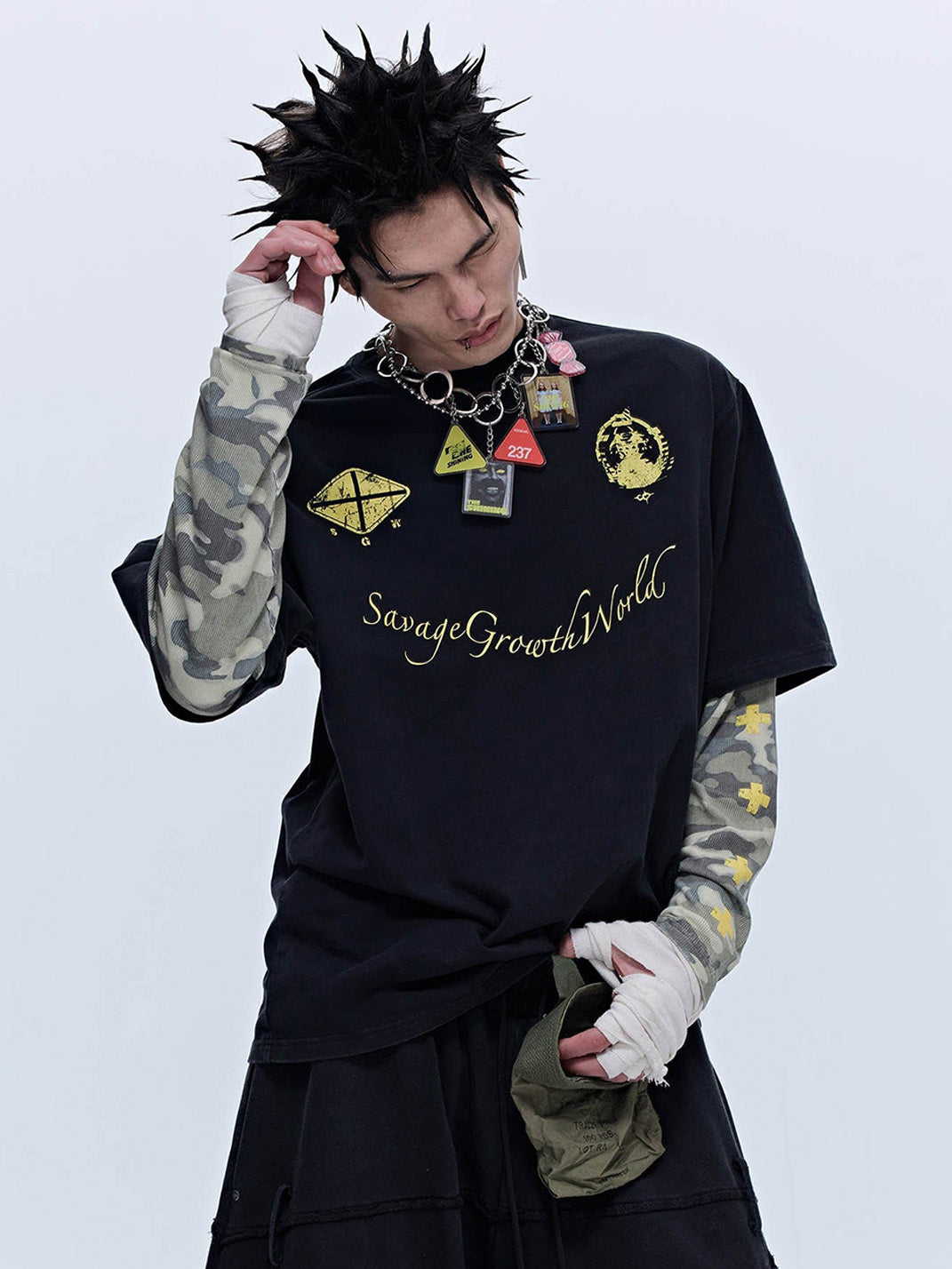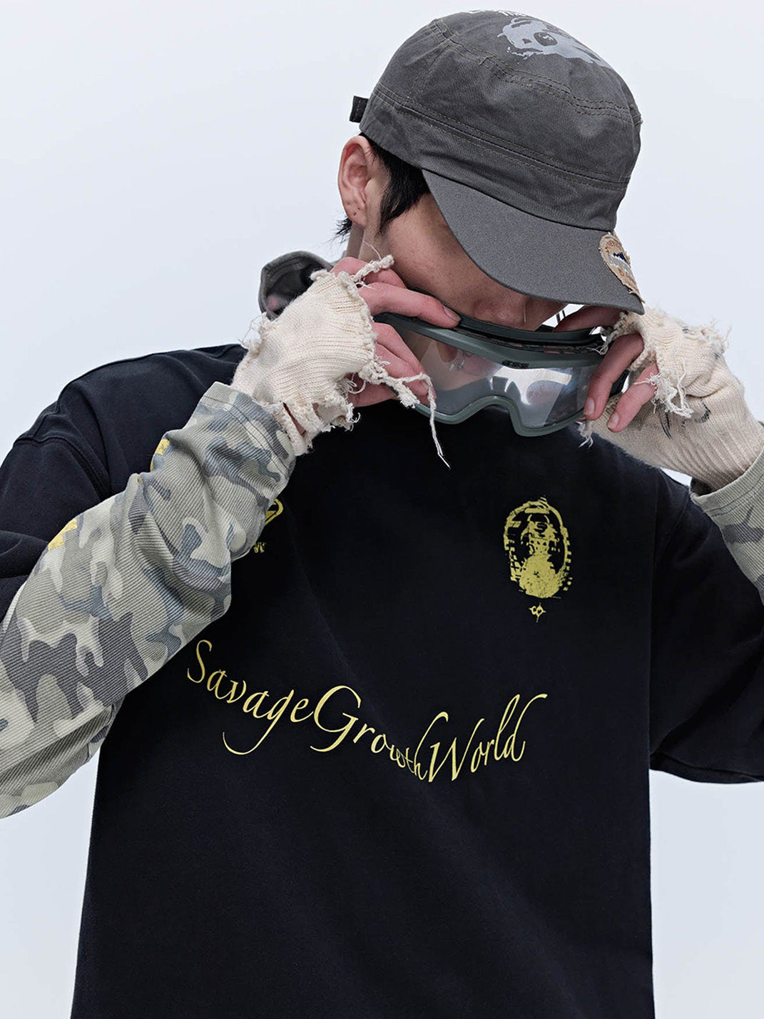 SGW | No.5 Camo-Sleeve Layered Long-Sleeve T-Shirt