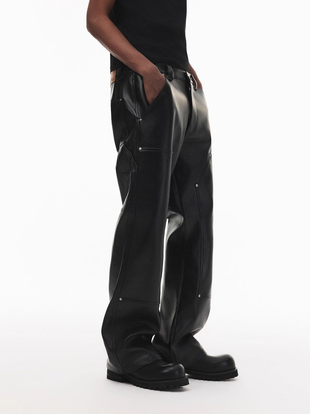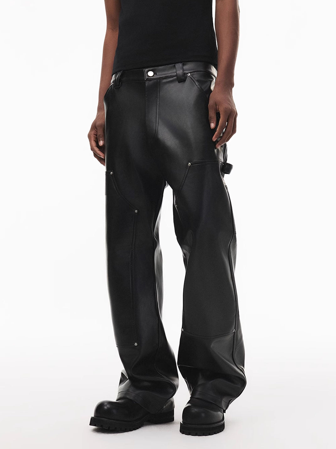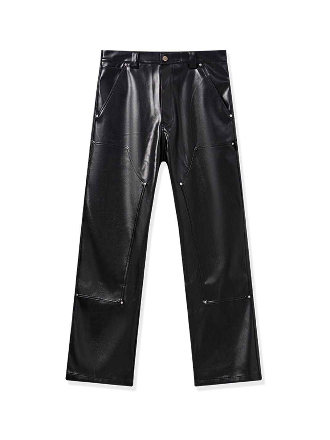 SSR | Vintage Rivets PU Leather Straight Leg Pants