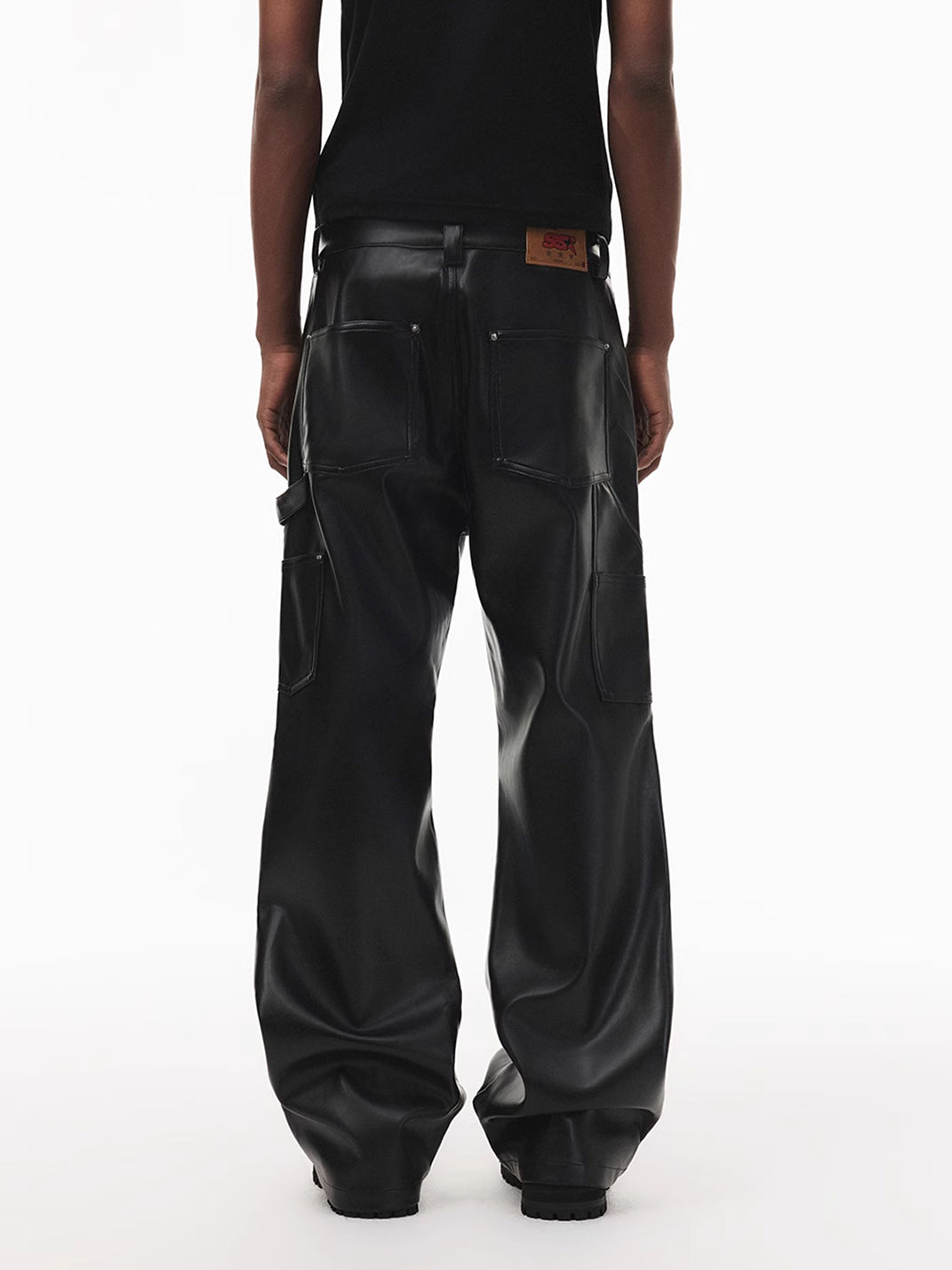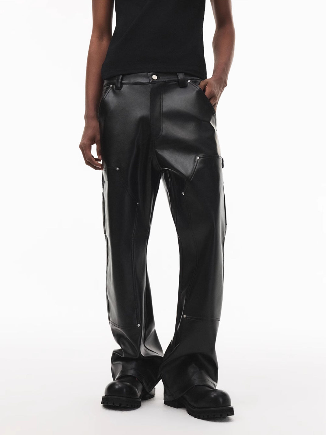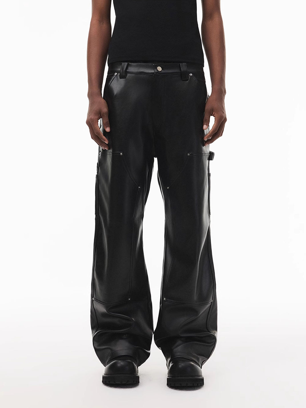 SSR | Vintage Rivets PU Leather Straight Leg Pants