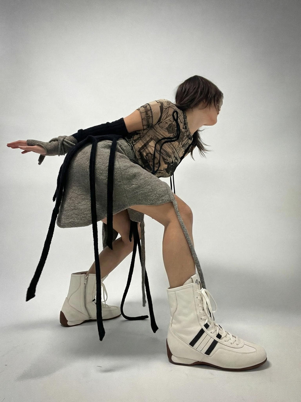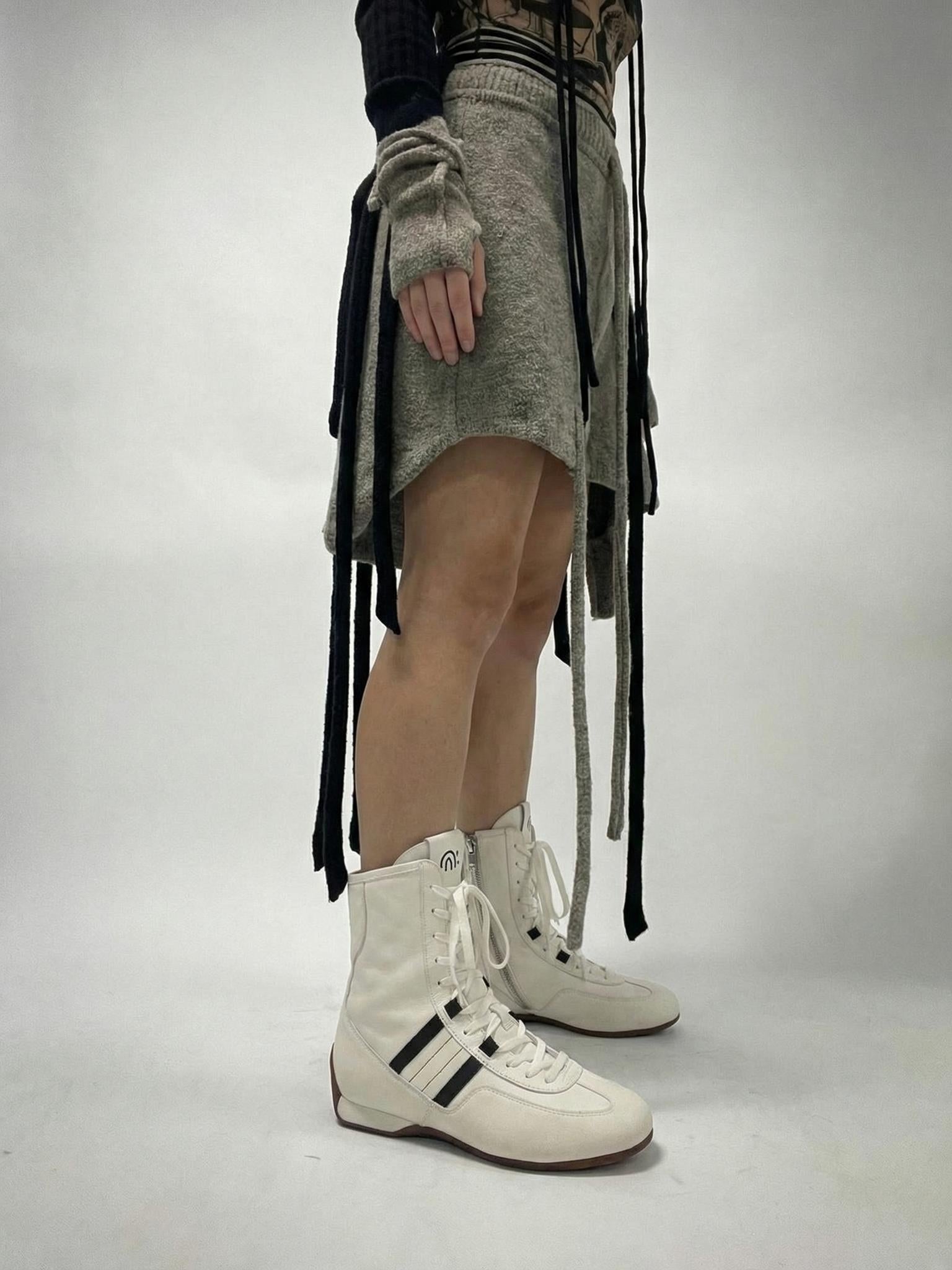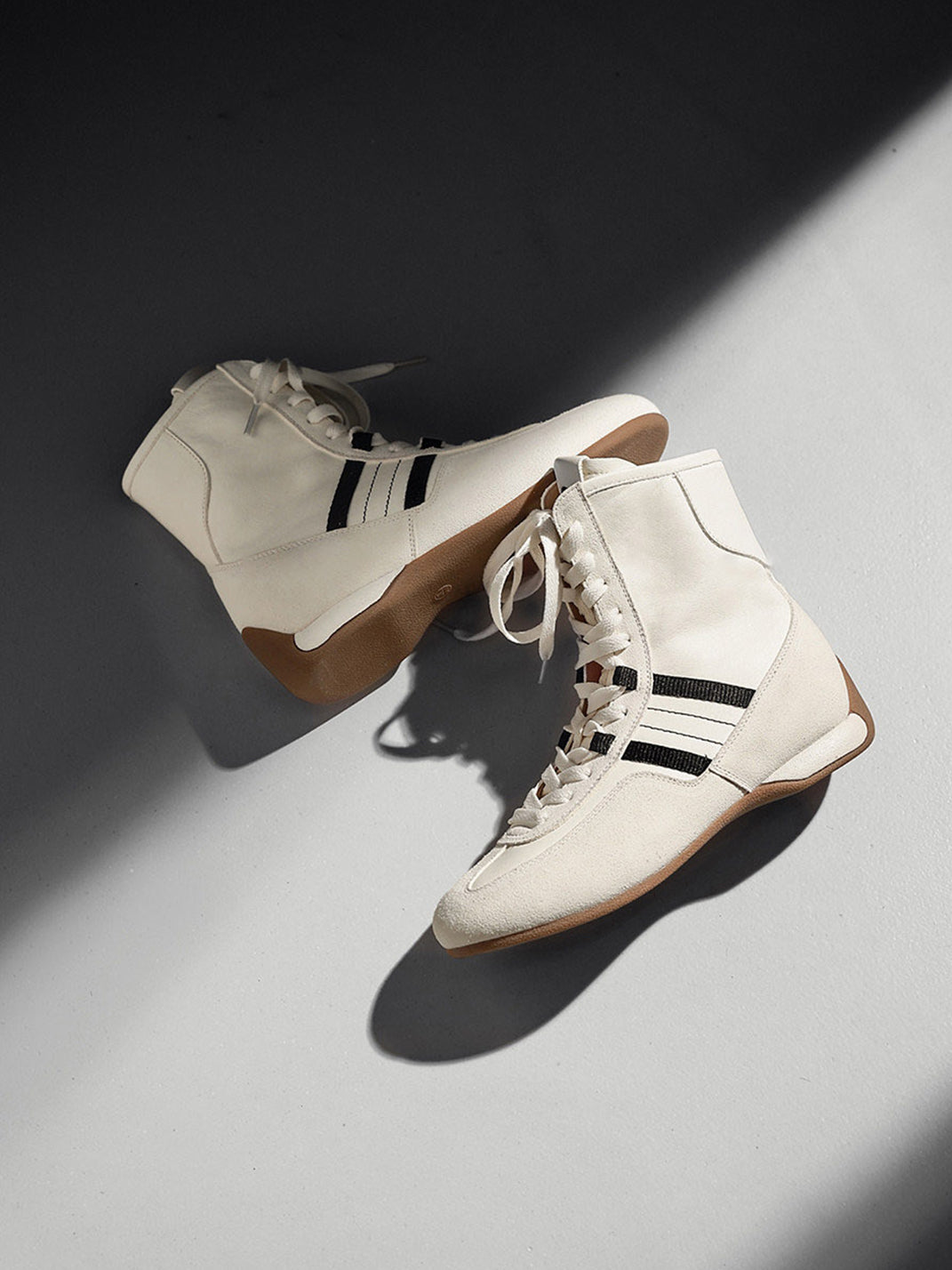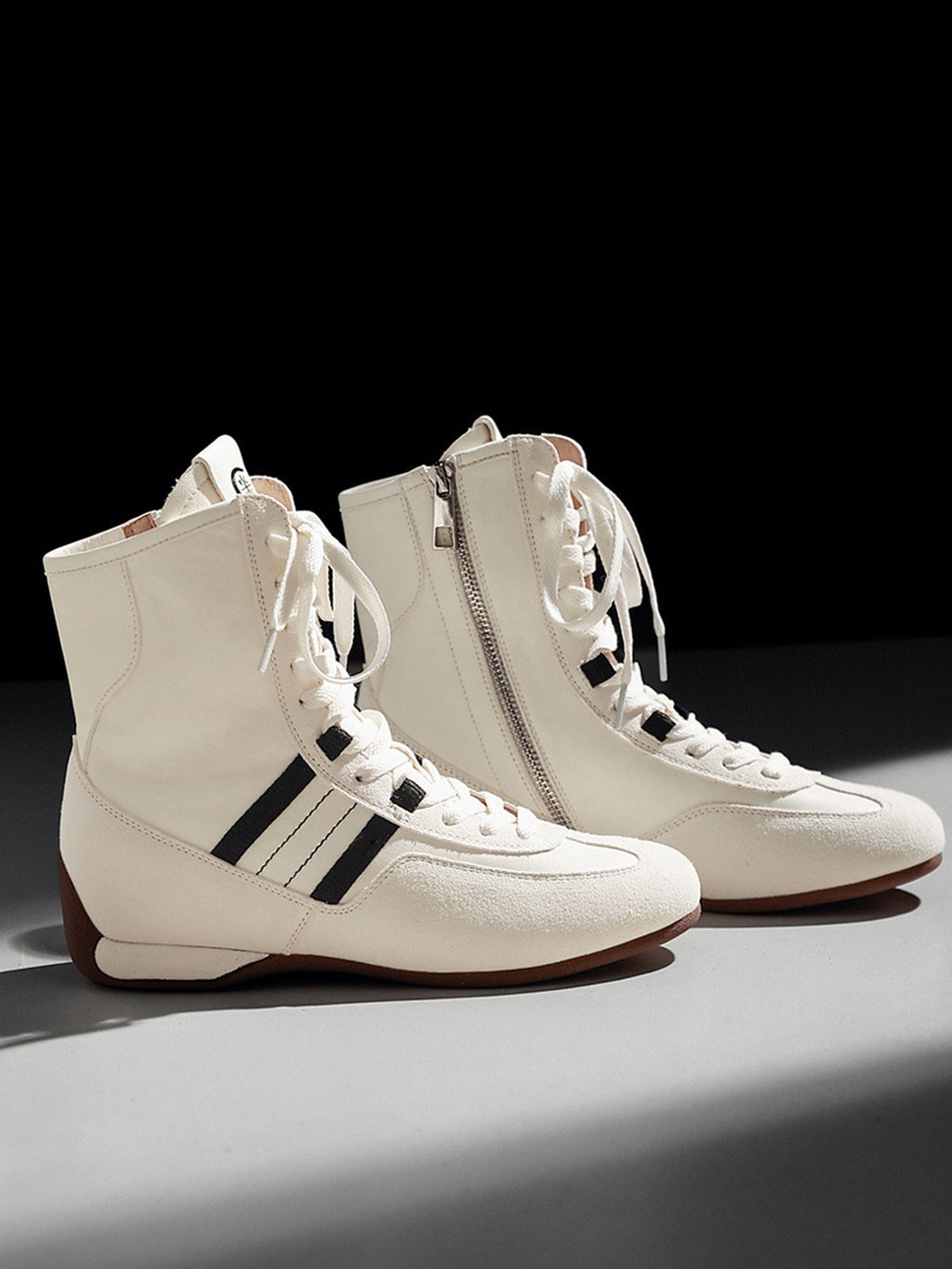 White Moose | Lace-Up Side Zip Ankle Boots-White saltar al contenido