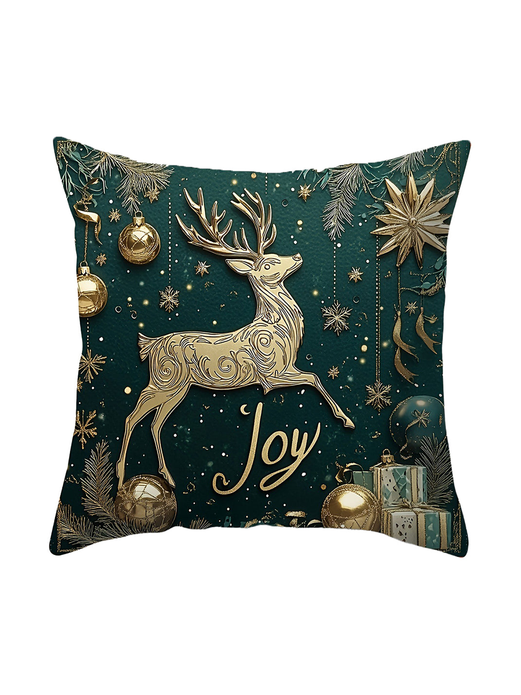 Xmas | Green & Gold Christmas Linen Pillow Cover 18x18 Inch saltar al contenido