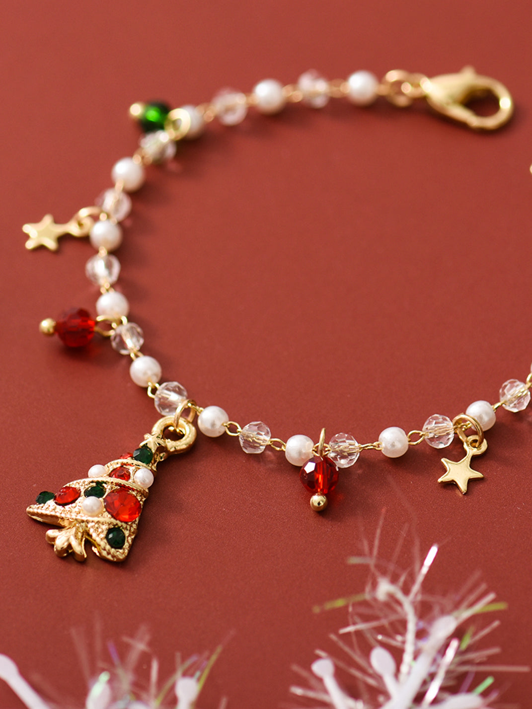 Xmas | Rhinestone Christmas Tree Pearl Bracelet