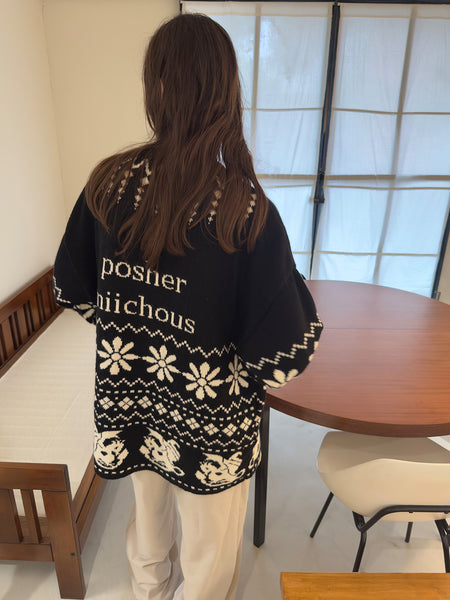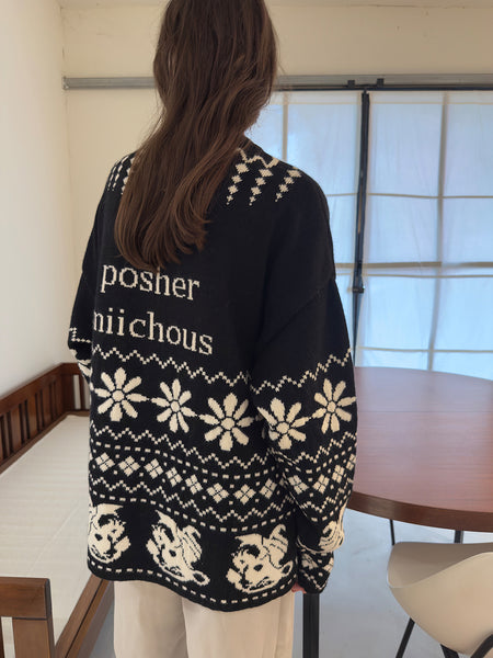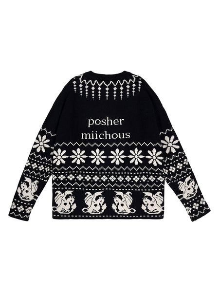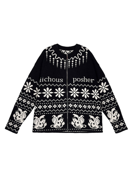 MIICHOUS | Fair Isle Dragon Knit Zip Cardigan