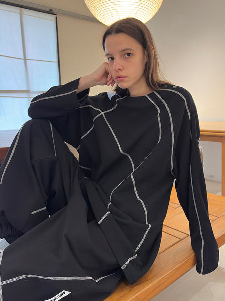 MIICHOUS | Contrast Stitch Waffle Knit Long Sle...