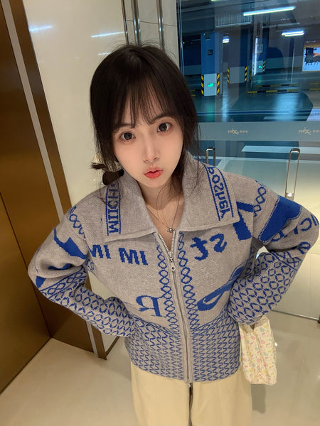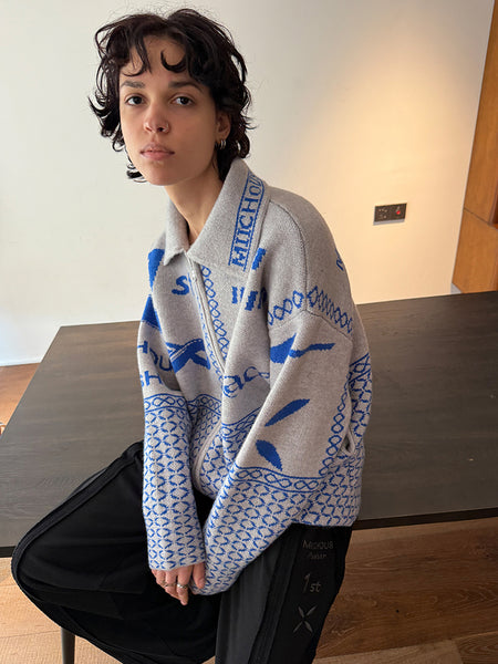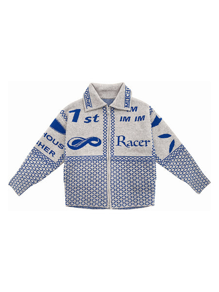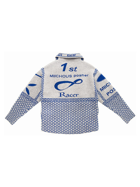 MIICHOUS | Vintage Racing Jacquard Zip Cardigan...