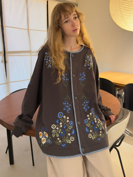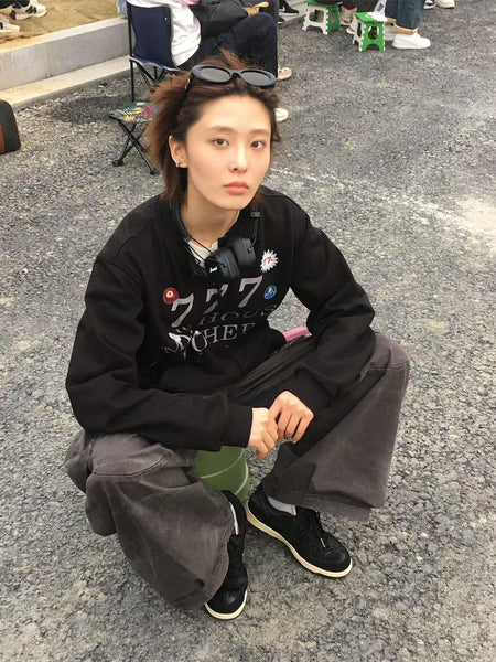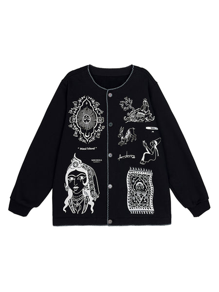 MIICHOUS | Vintage Graphic Embroidered Fleece S...
