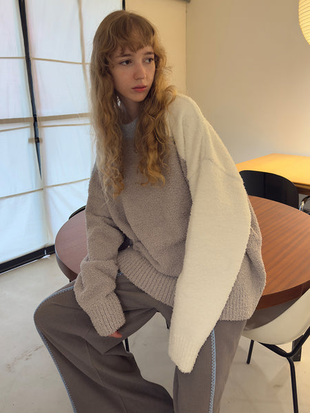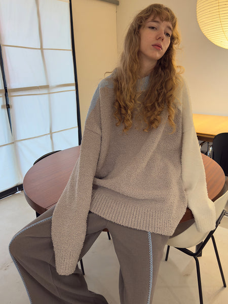 MIICHOUS | Colorblock Coral Fleece Knit Crewnec...