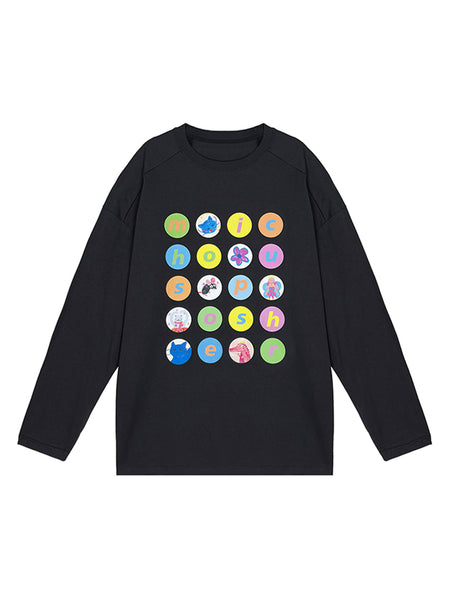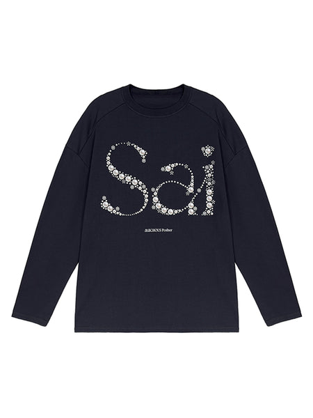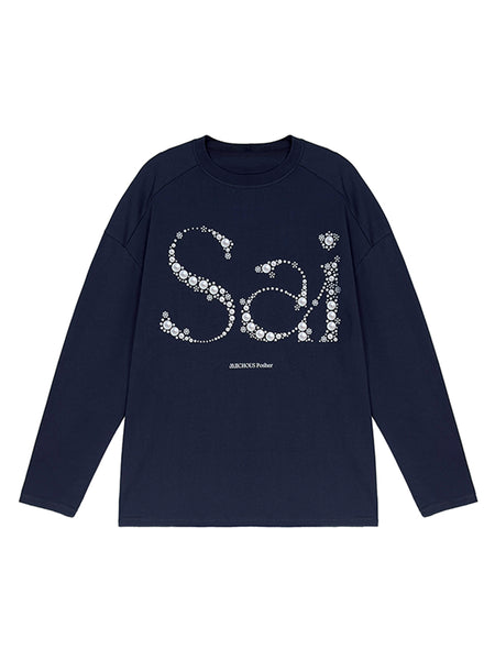 MIICHOUS | Sai Pearl Letter Print Long Sleeve T...