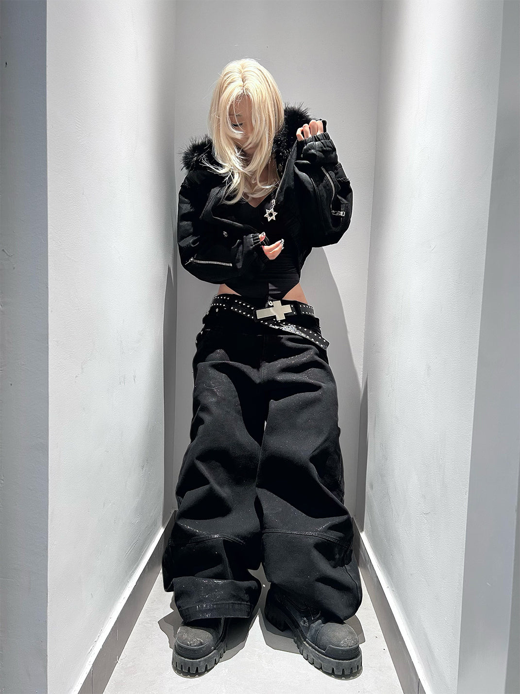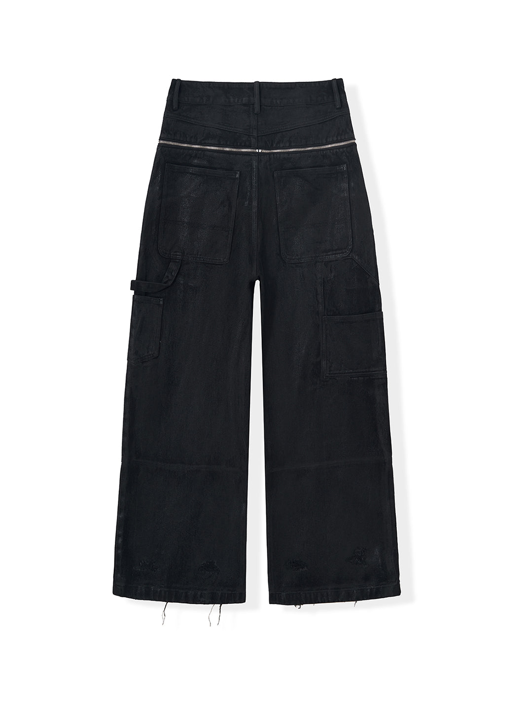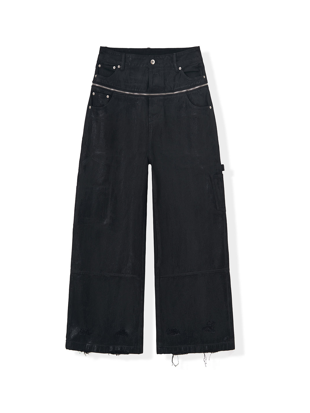 BE A DEVIL | Hand-Waxed Brush Silver Damaged Wide-Leg Pants コンテンツにスキップ