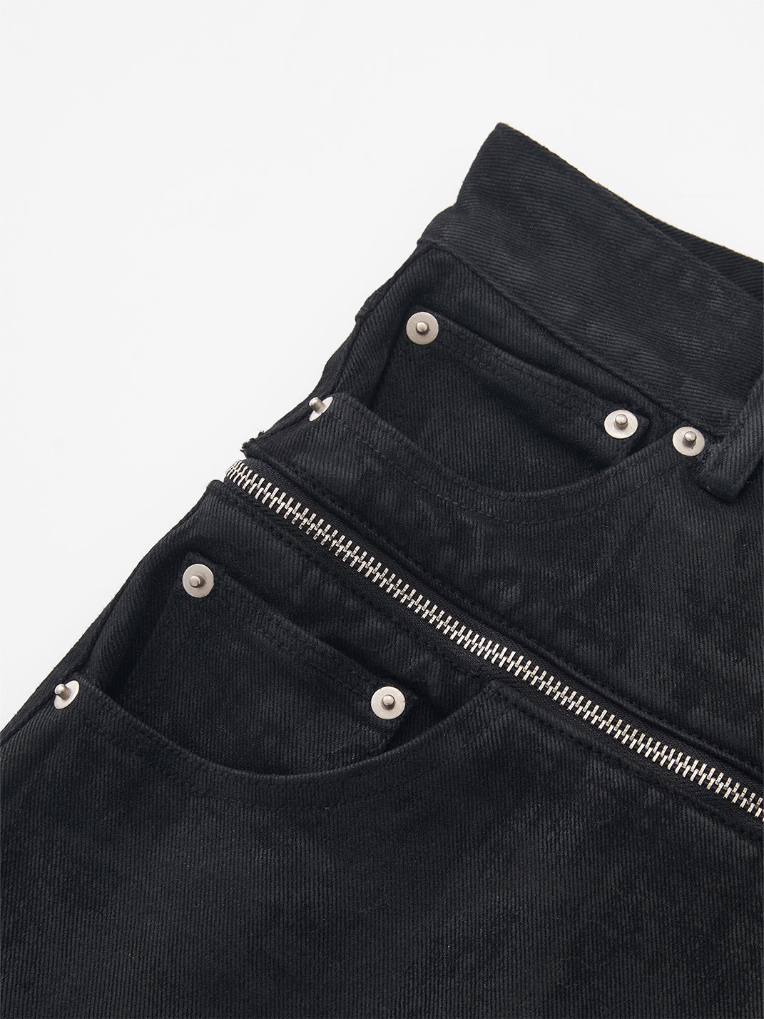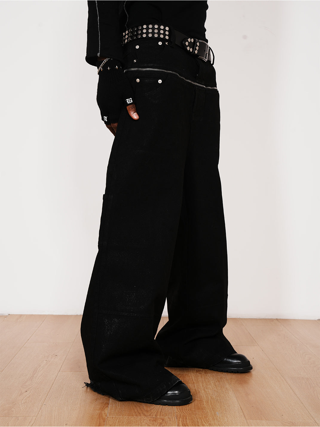 BE A DEVIL | Hand-Waxed Brush Silver Damaged Wide-Leg Pants