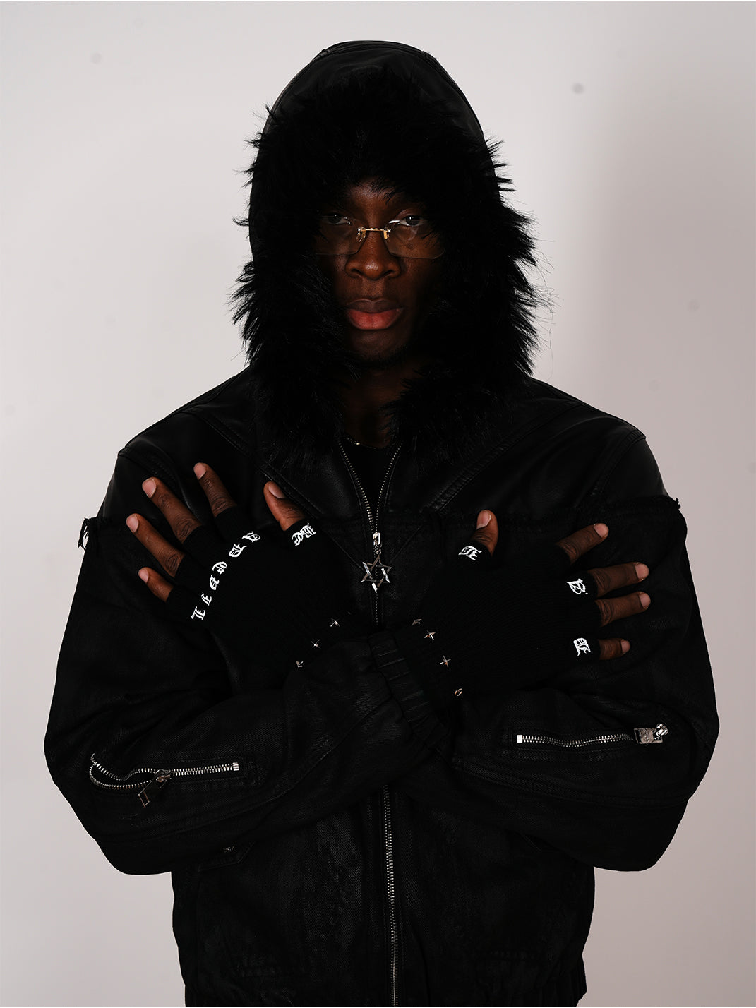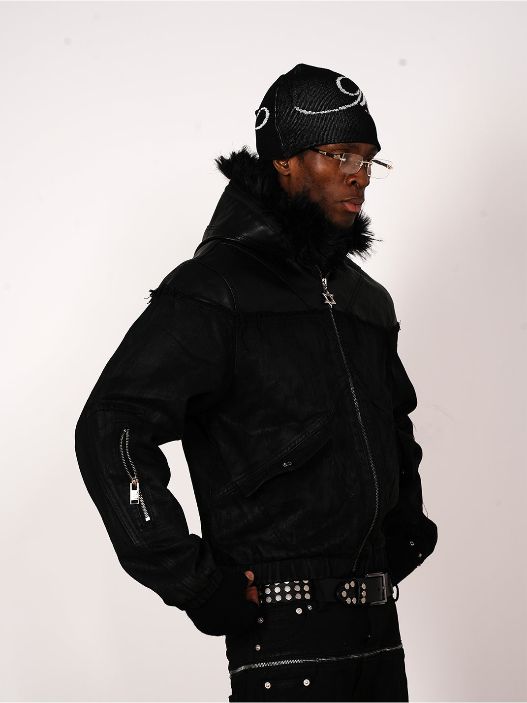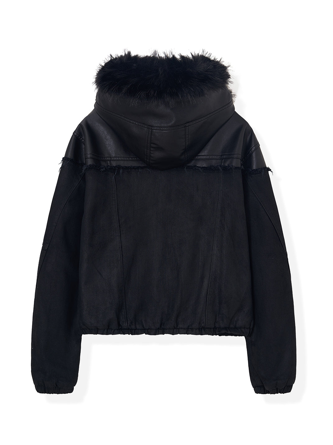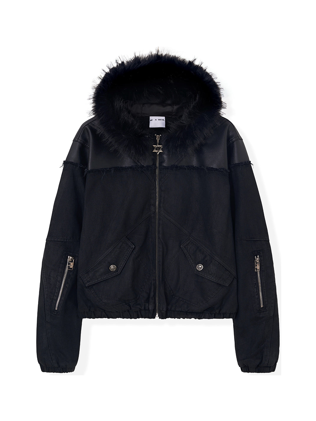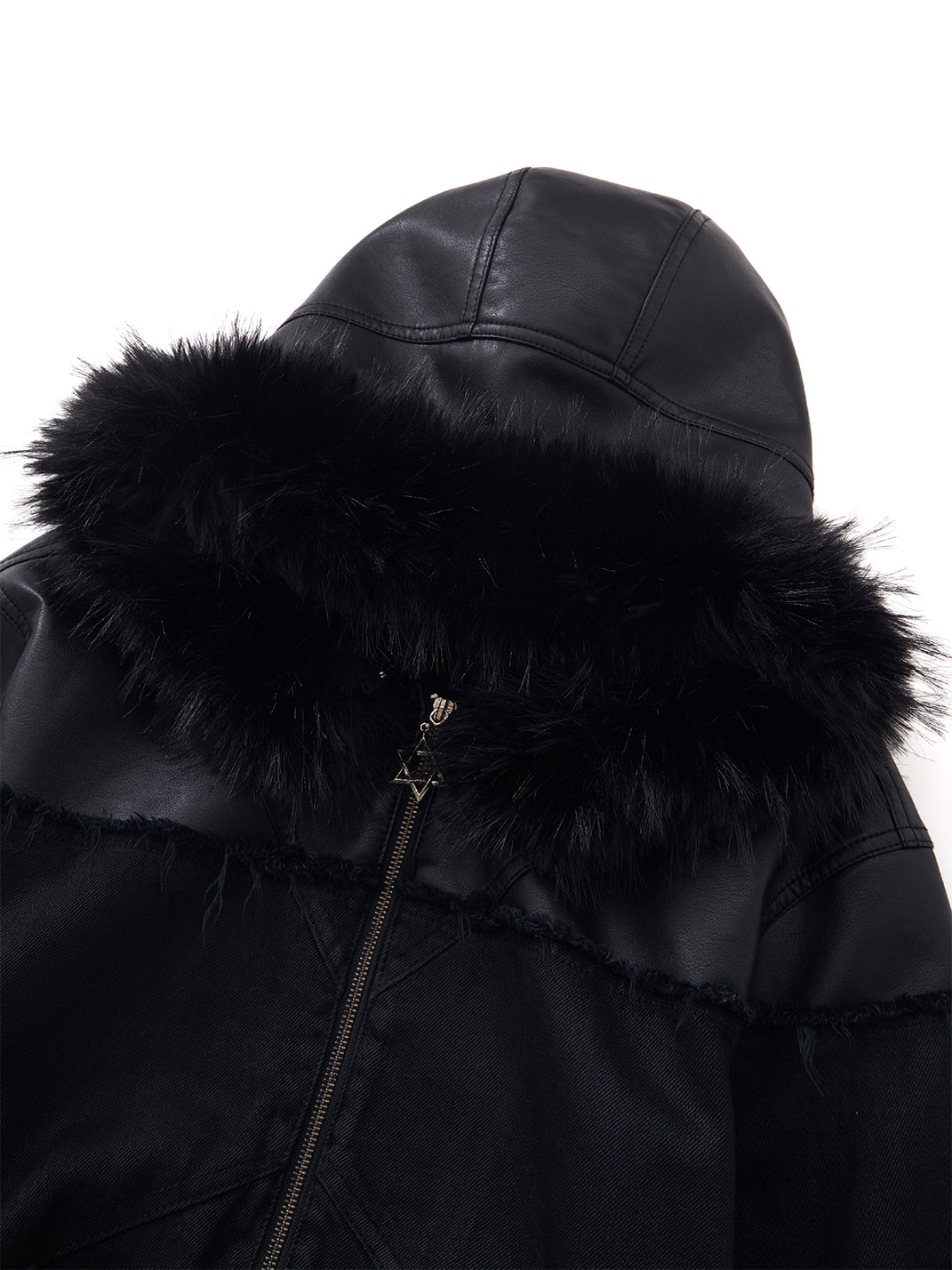 BE A DEVIL | “SØÐ” Detachable Fur Hooded Denim Hybrid-Leather Jacket