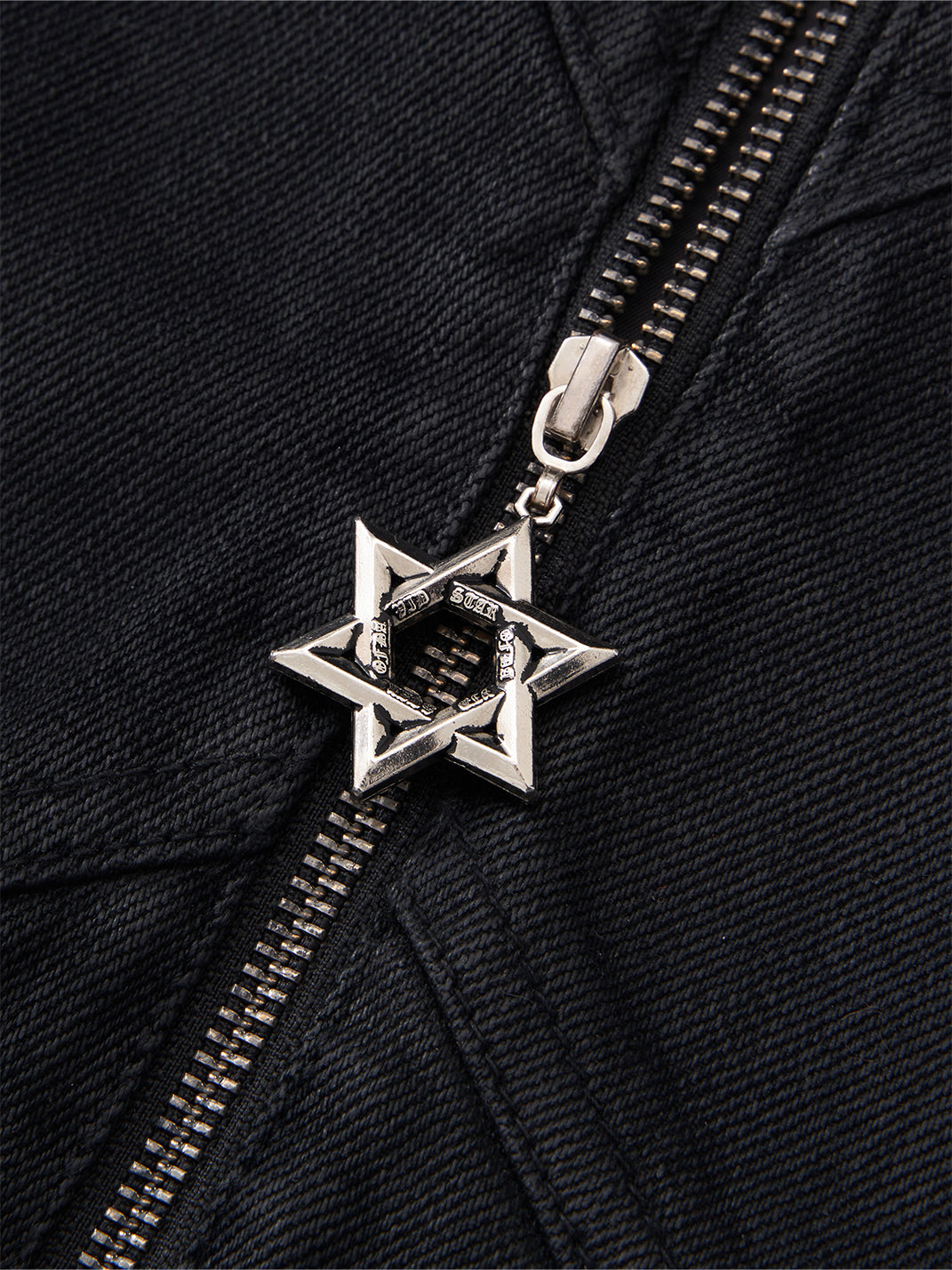 BE A DEVIL | “SØÐ” Detachable Fur Hooded Denim Hybrid-Leather Jacket コンテンツにスキップ