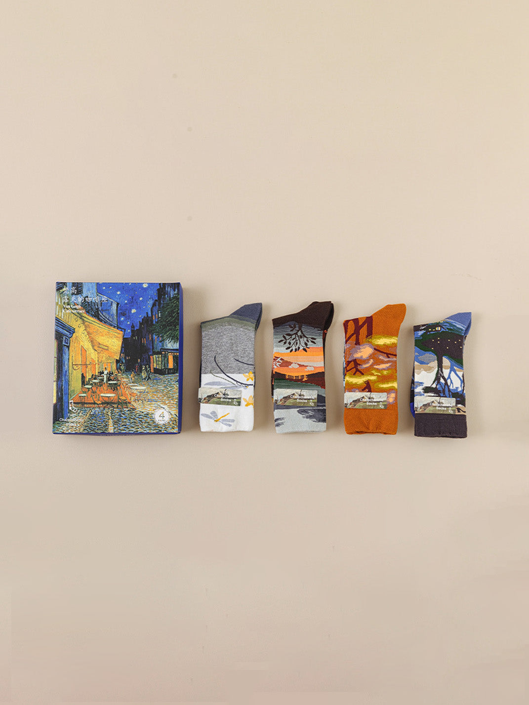 CORRYDELAAN | Four Pairs Art-Inspired Featuring Classic Paintings Socks
