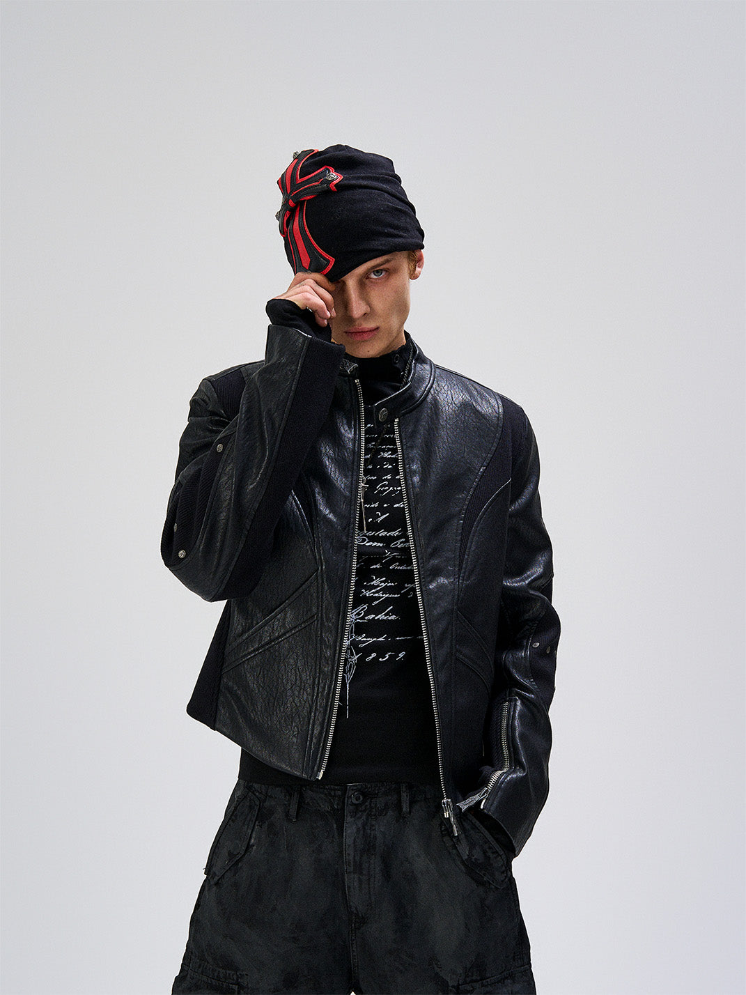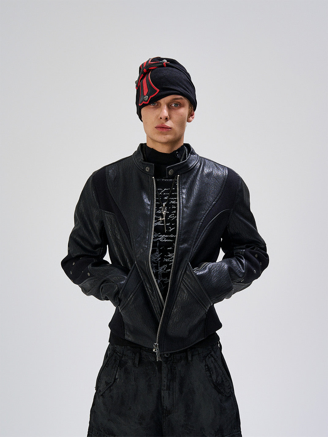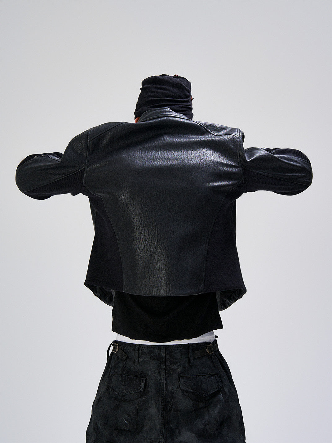 Flyerrer | Asymmetrical Patchwork Biker Leather Jacket