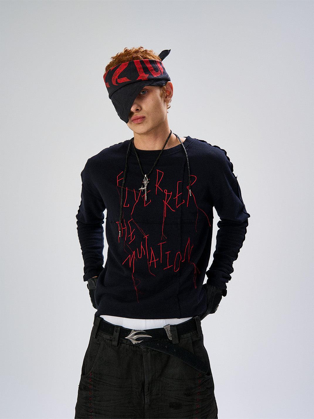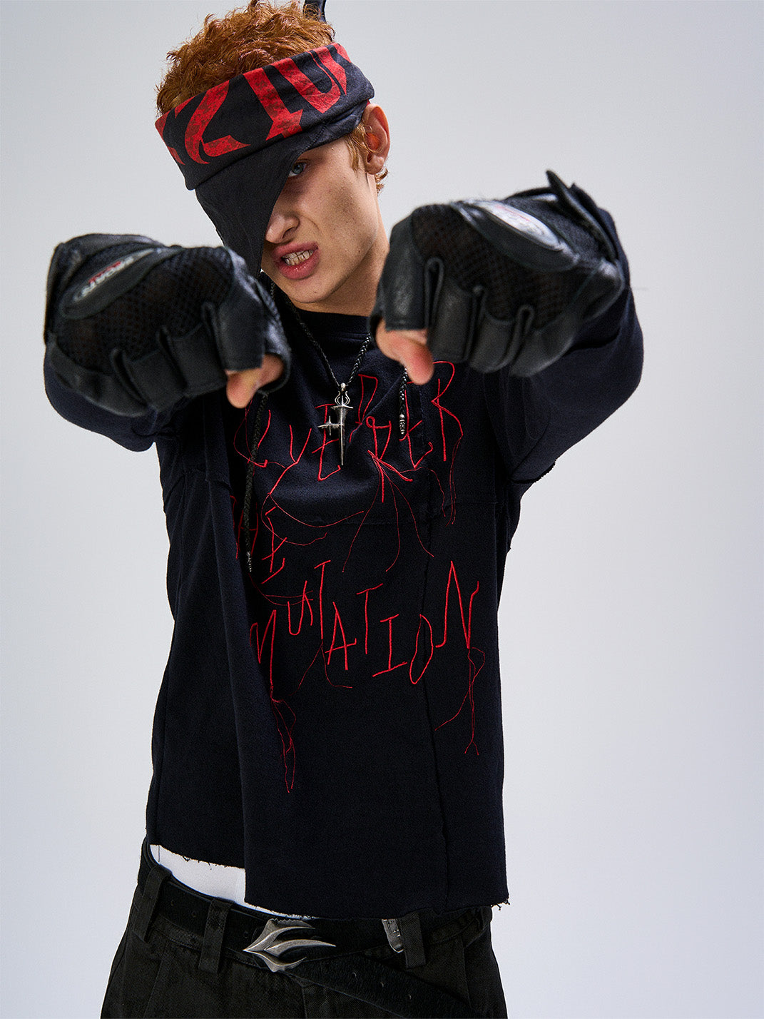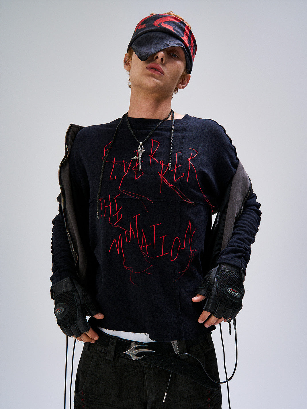 Flyerrer | Black & Red Tassel Embroidered T-shirt コンテンツにスキップ