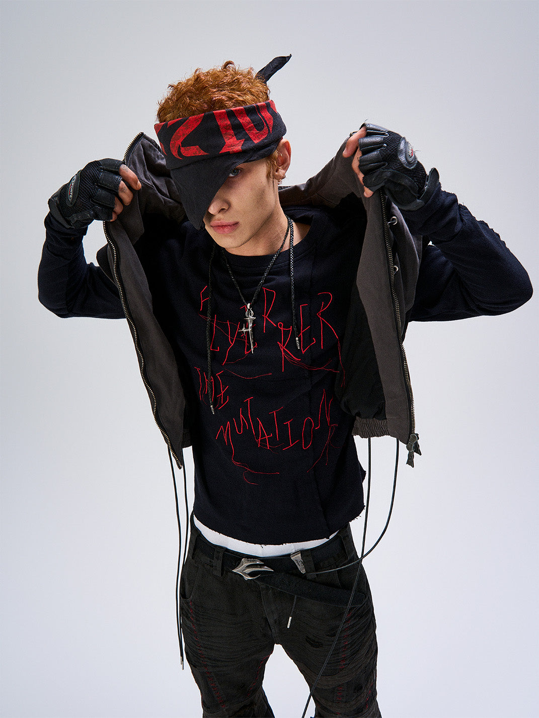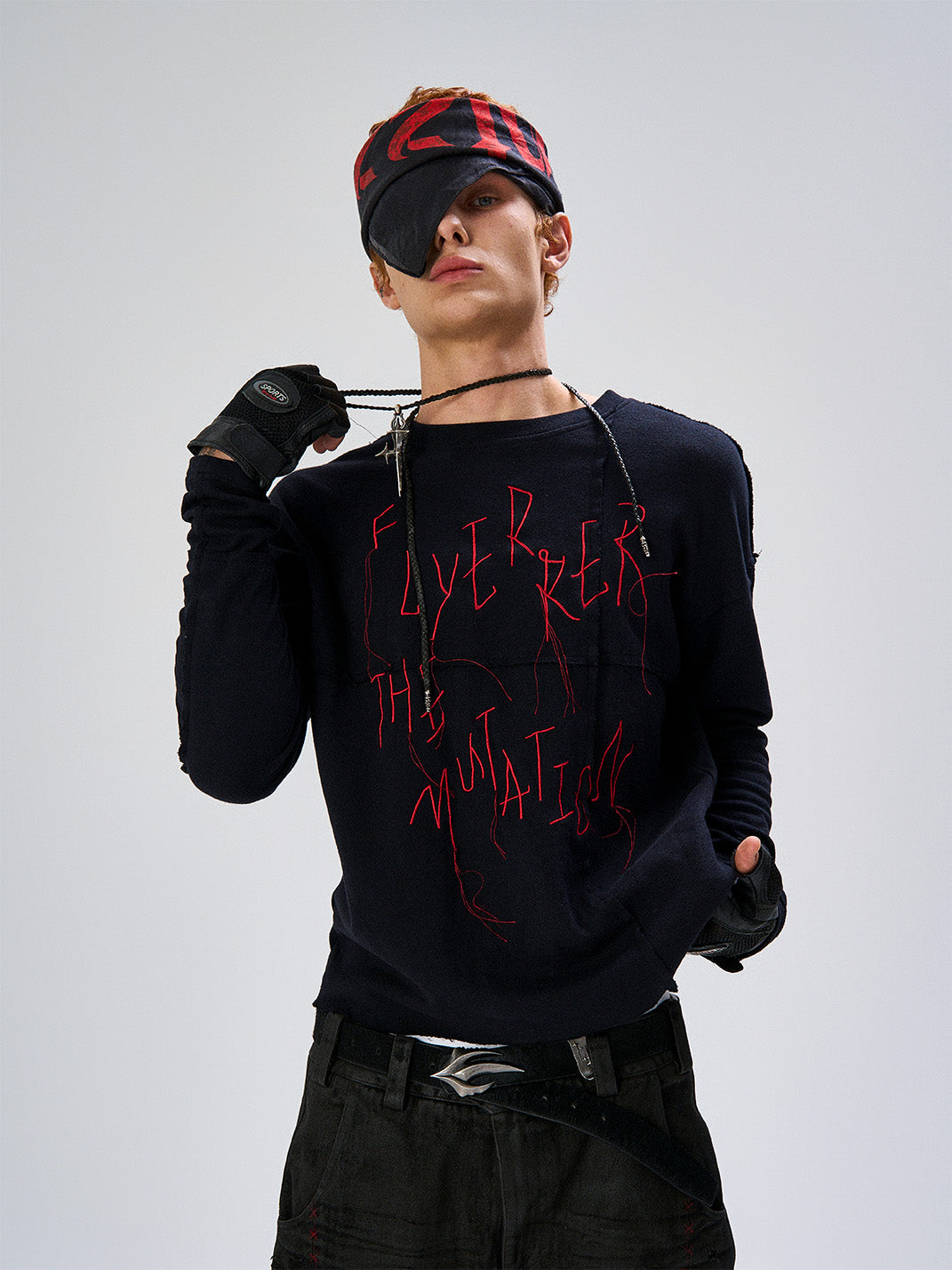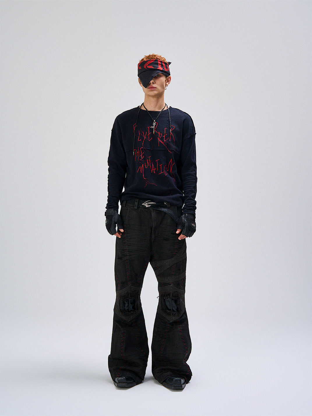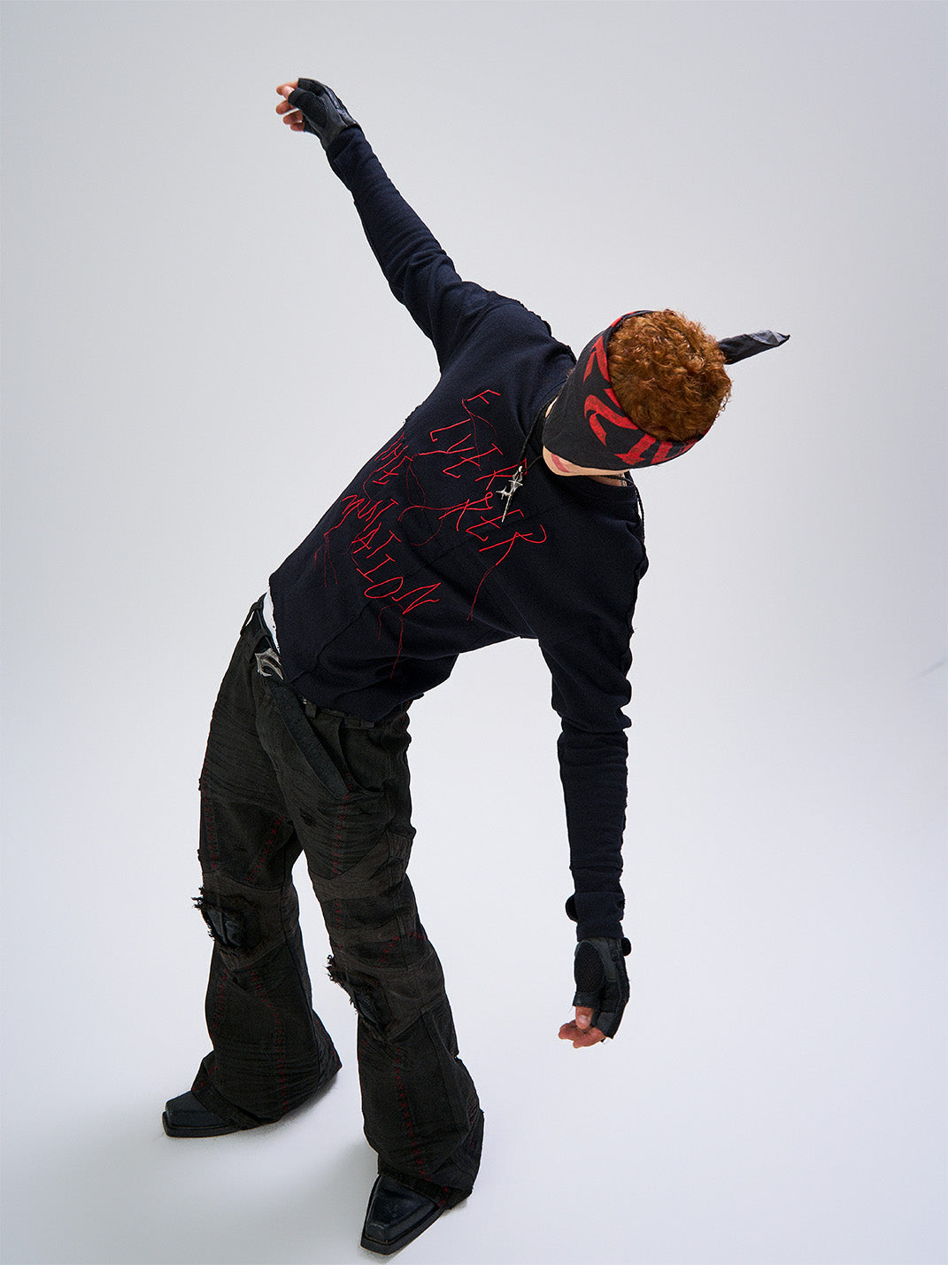 Flyerrer | Black & Red Tassel Embroidered T-shirt コンテンツにスキップ