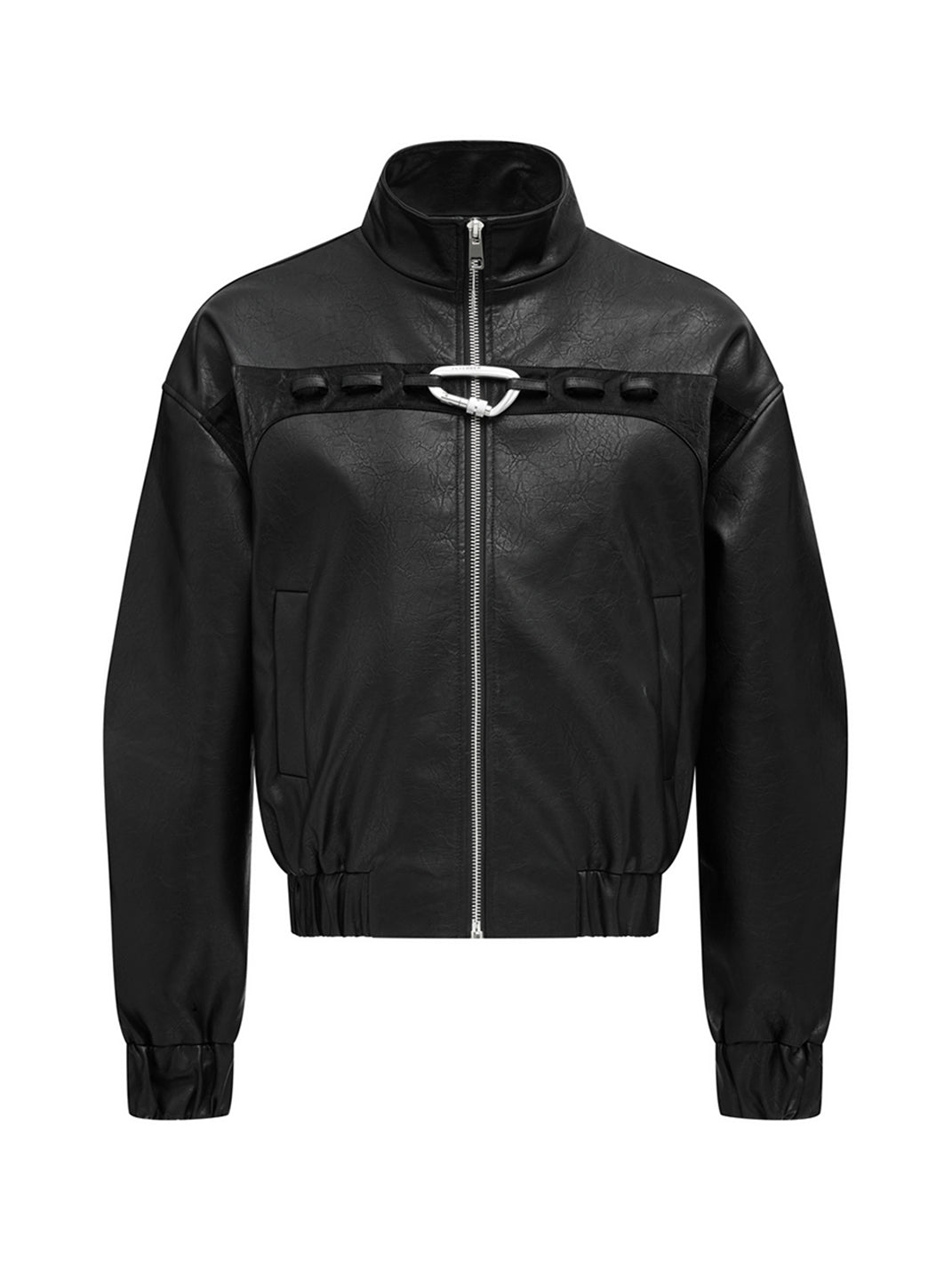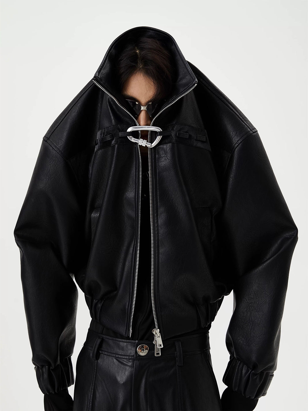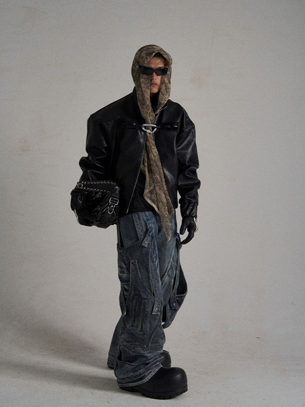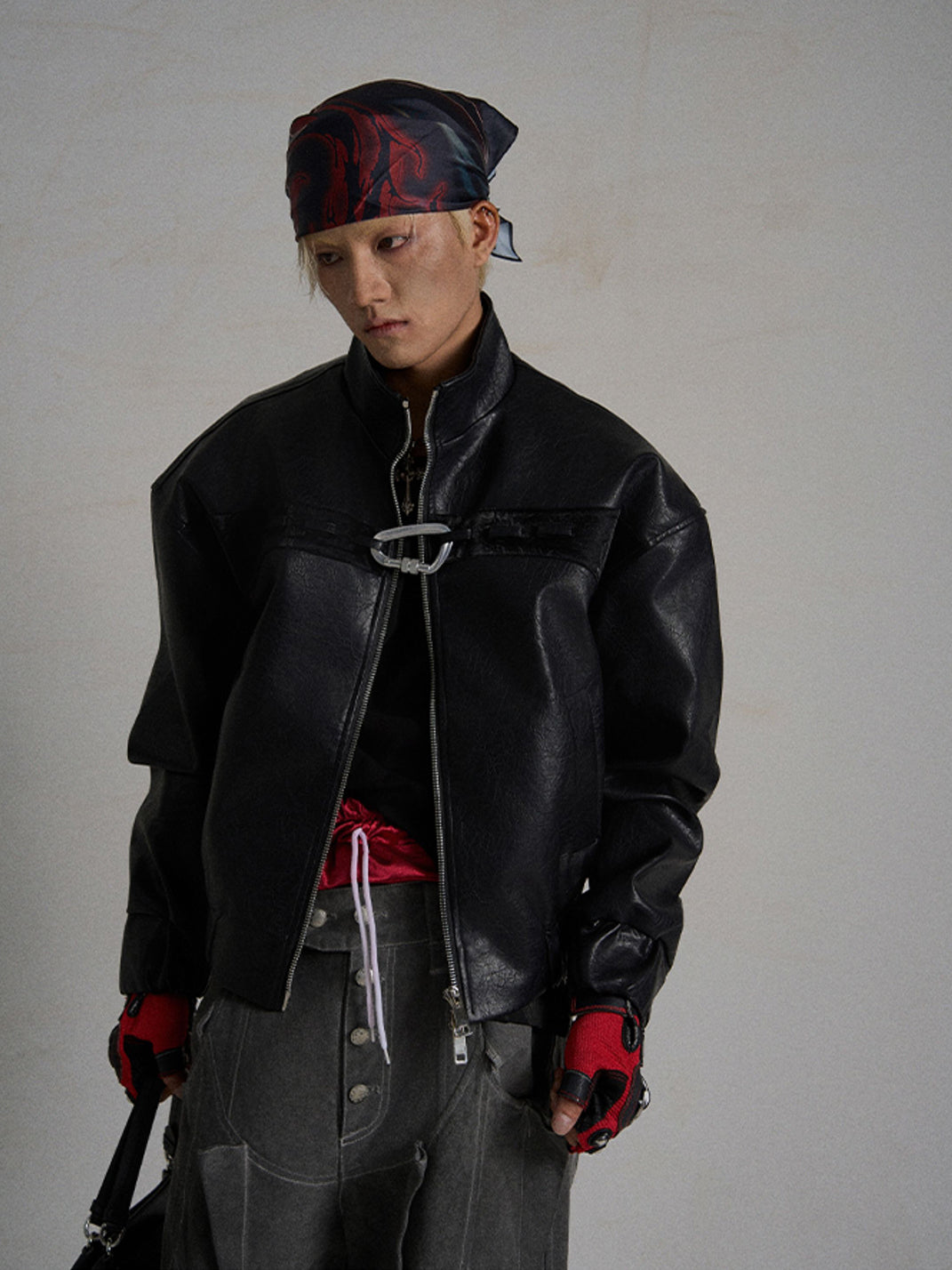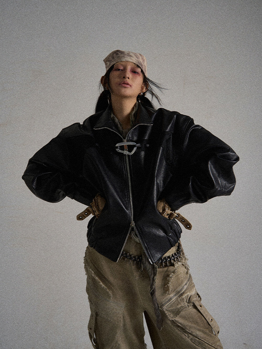 Flyerrer | Cross Buckle Dual Zipper Leather Biker Jacket