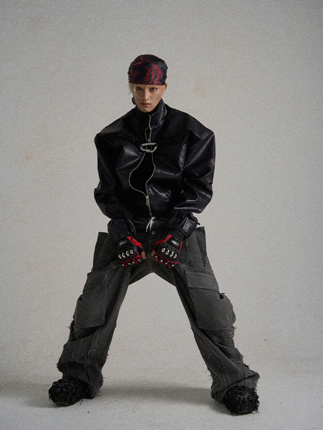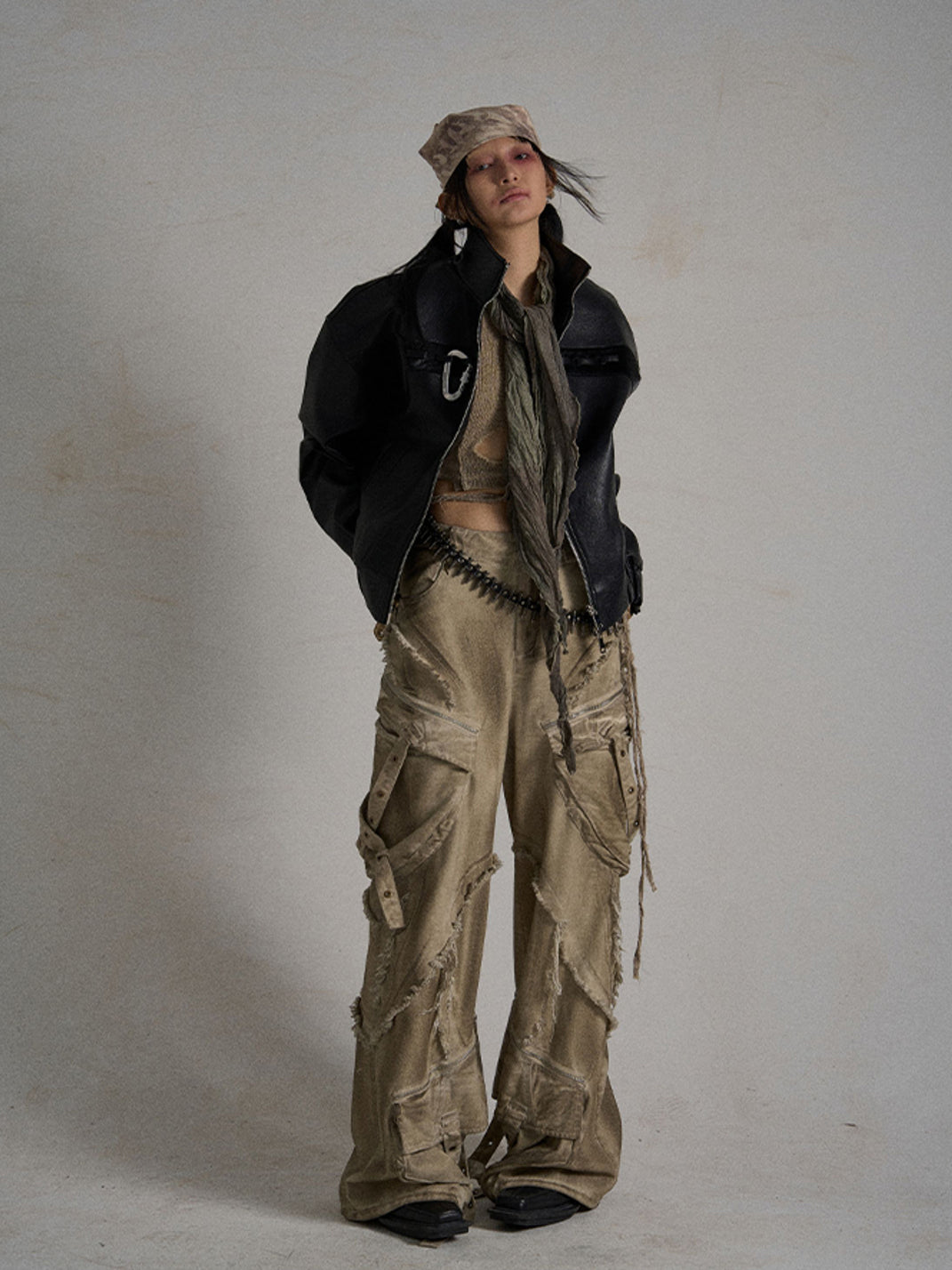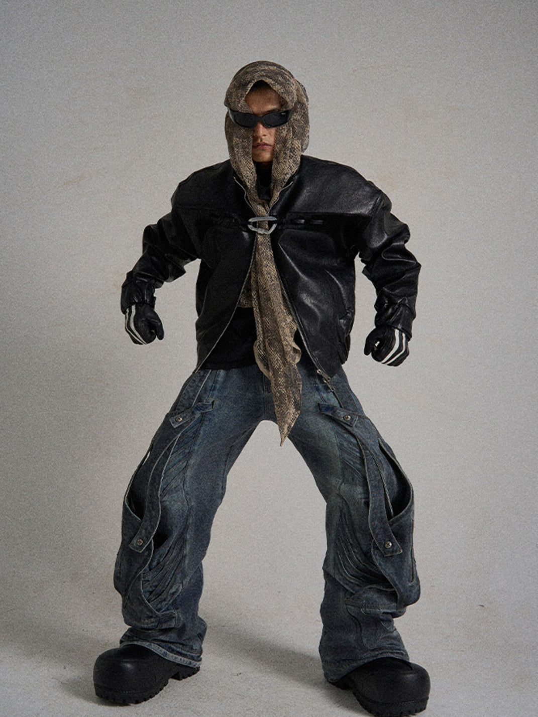 Flyerrer | Cross Buckle Dual Zipper Leather Biker Jacket コンテンツにスキップ