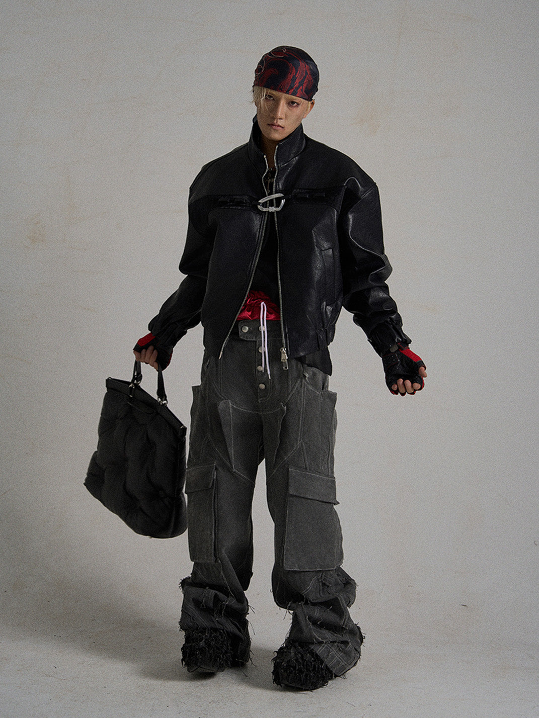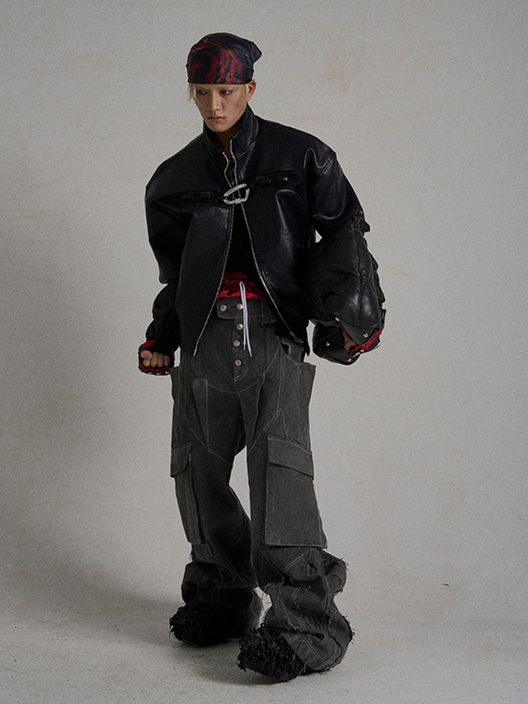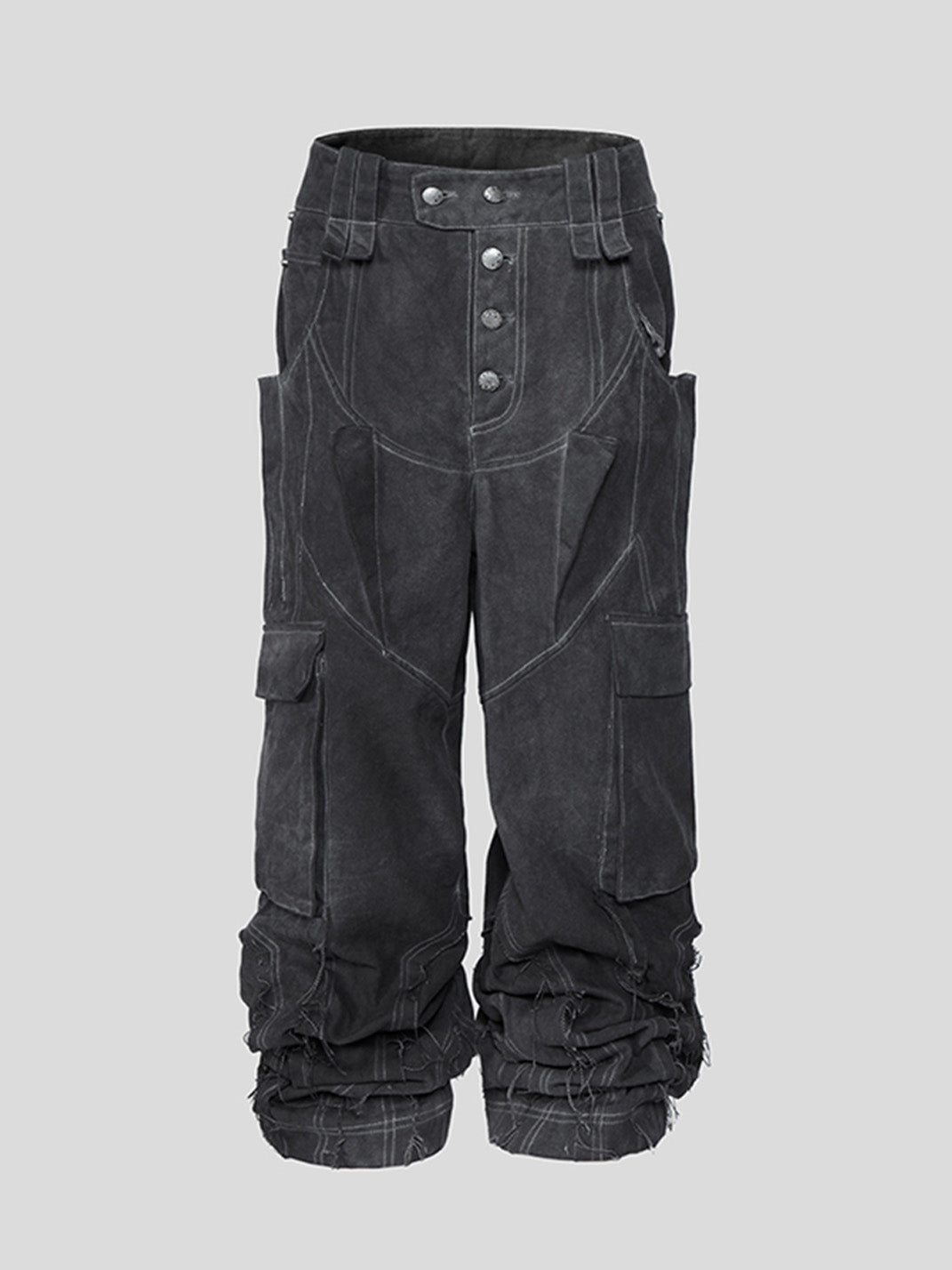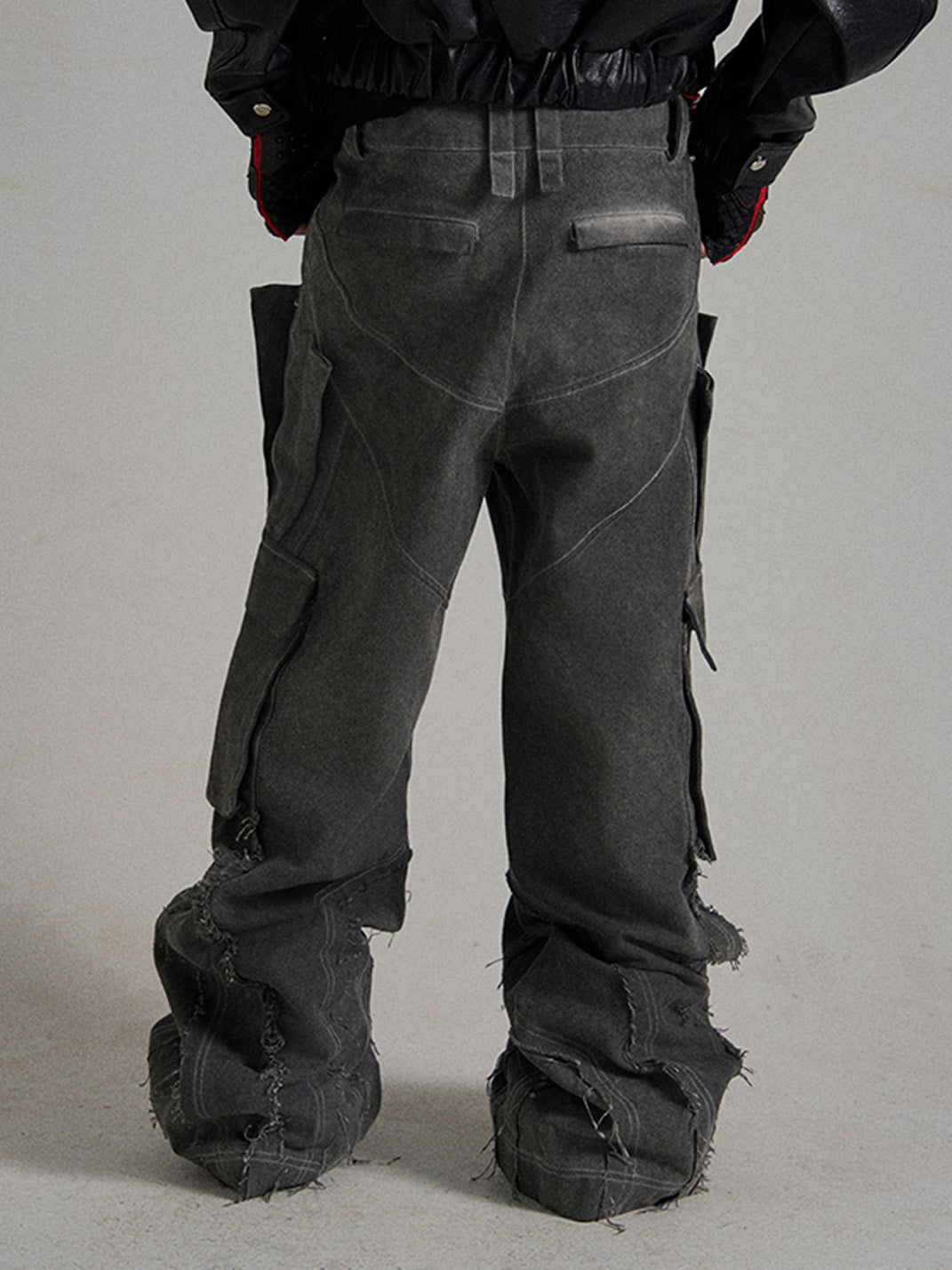 Flyerrer | Loose Fit Asymmetrical Patchwork Distressed Denim Pants