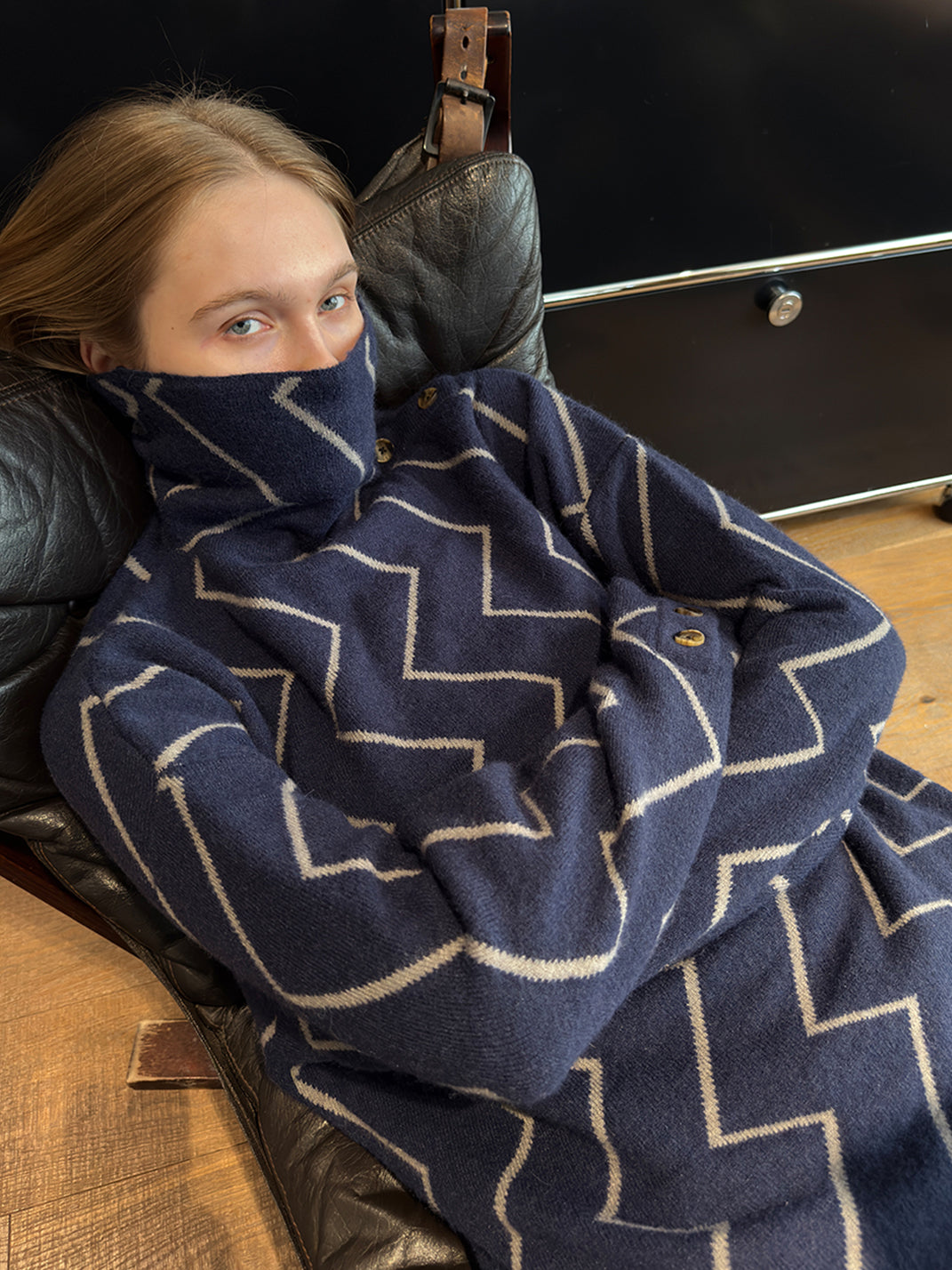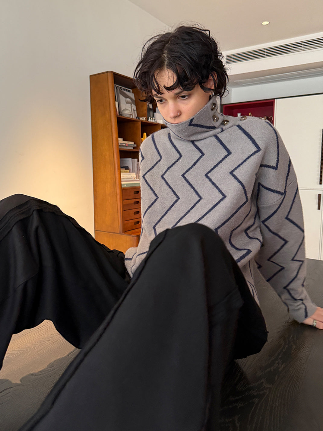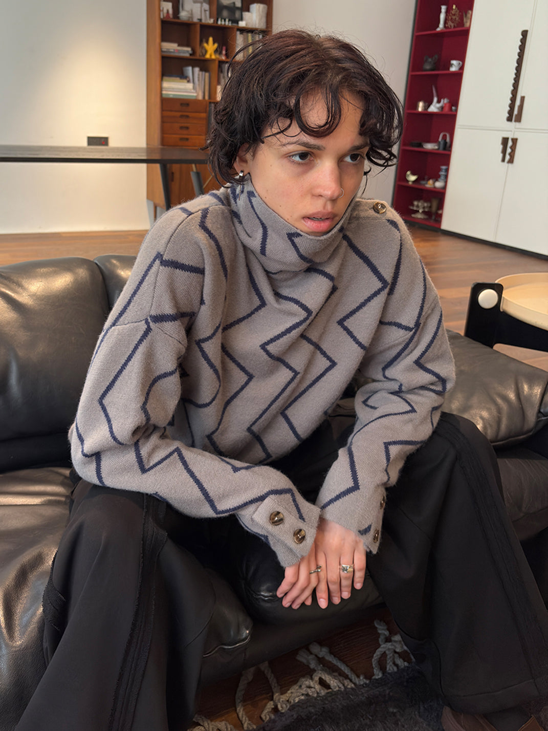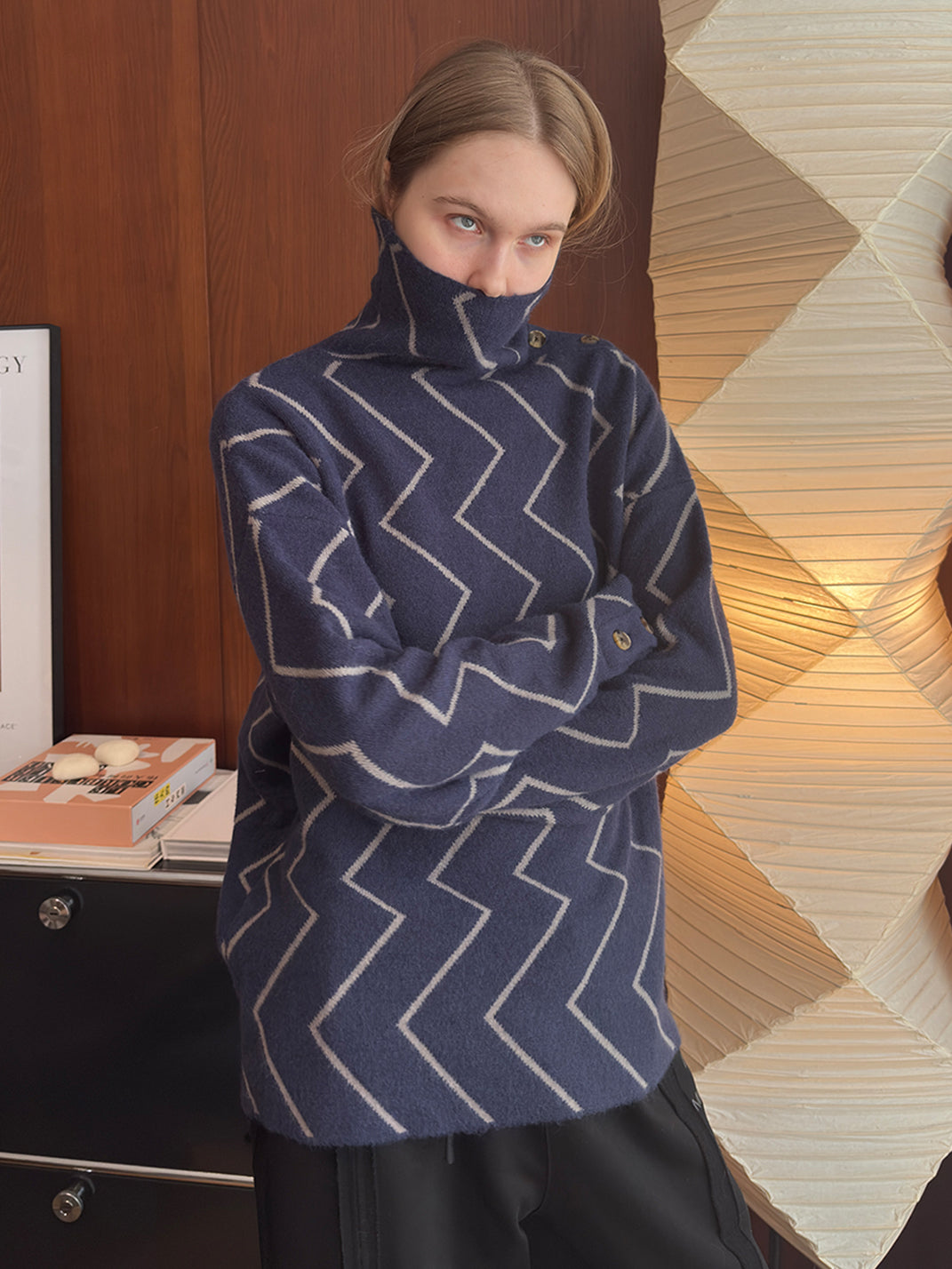 MIICHOUS | Dublin Night Wave Jacquard Turtleneck Knit Top