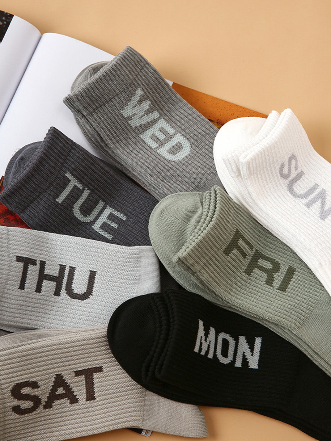 Renaissance | Colorful Weekday Letter-Printed Ribbed Socks