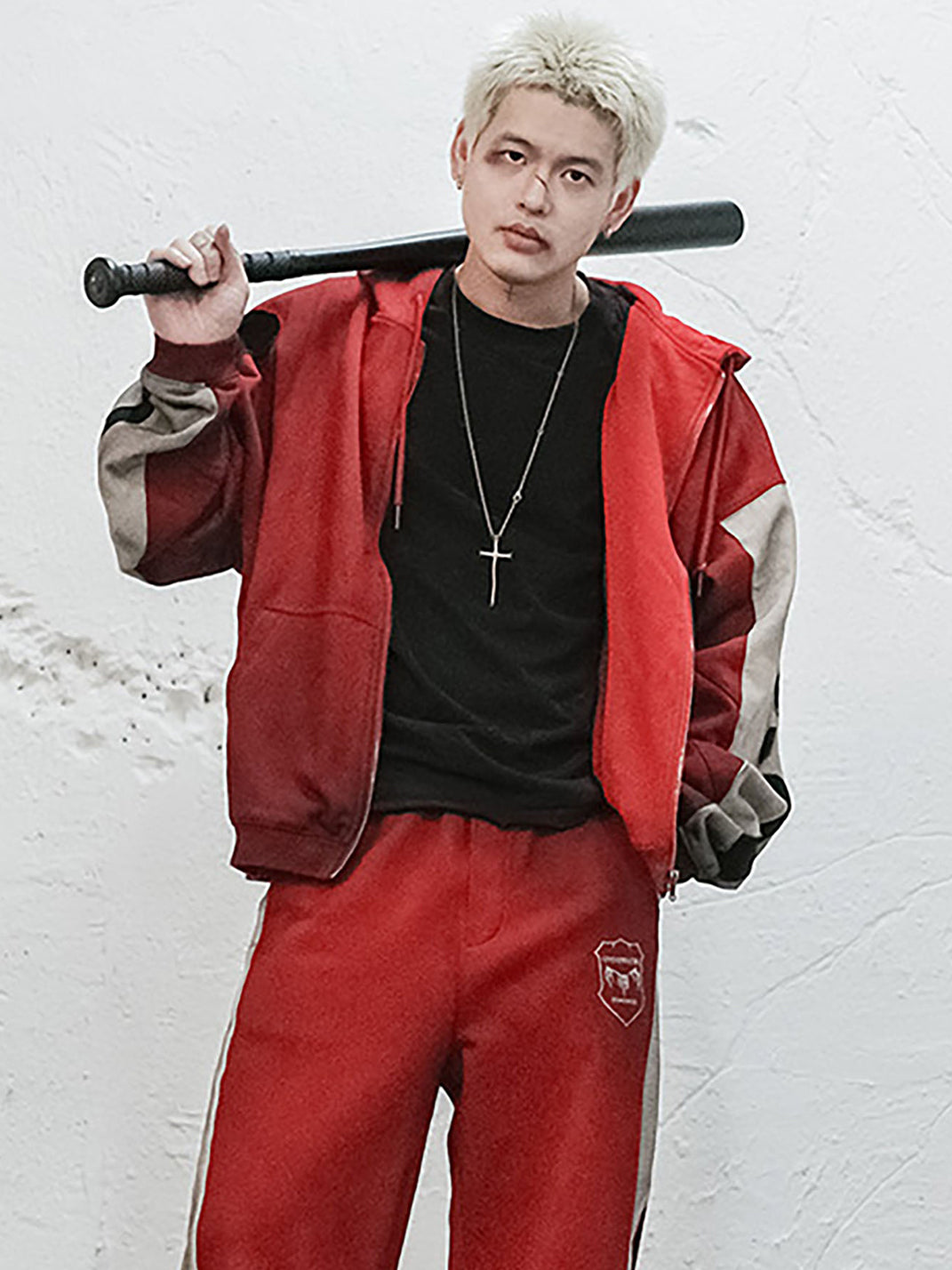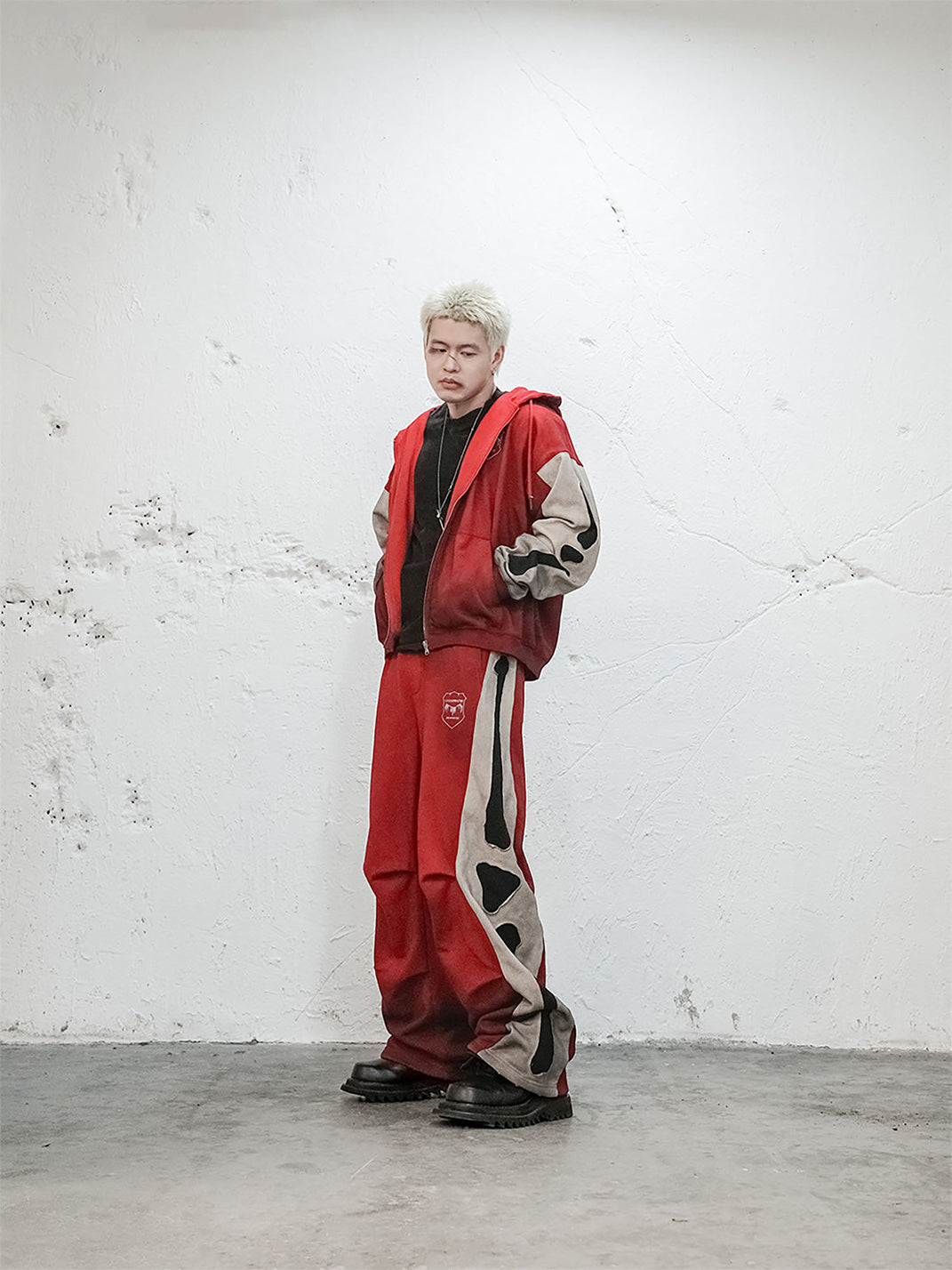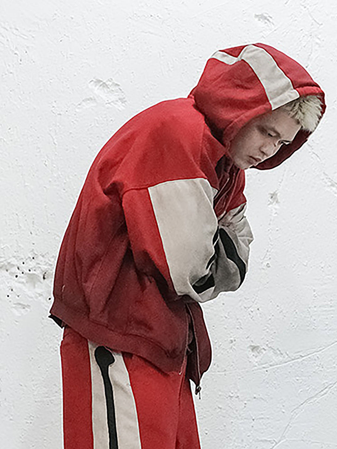 UNDERWATER | Skeleton Distressed Contrast Panel Hooded Jacket コンテンツにスキップ