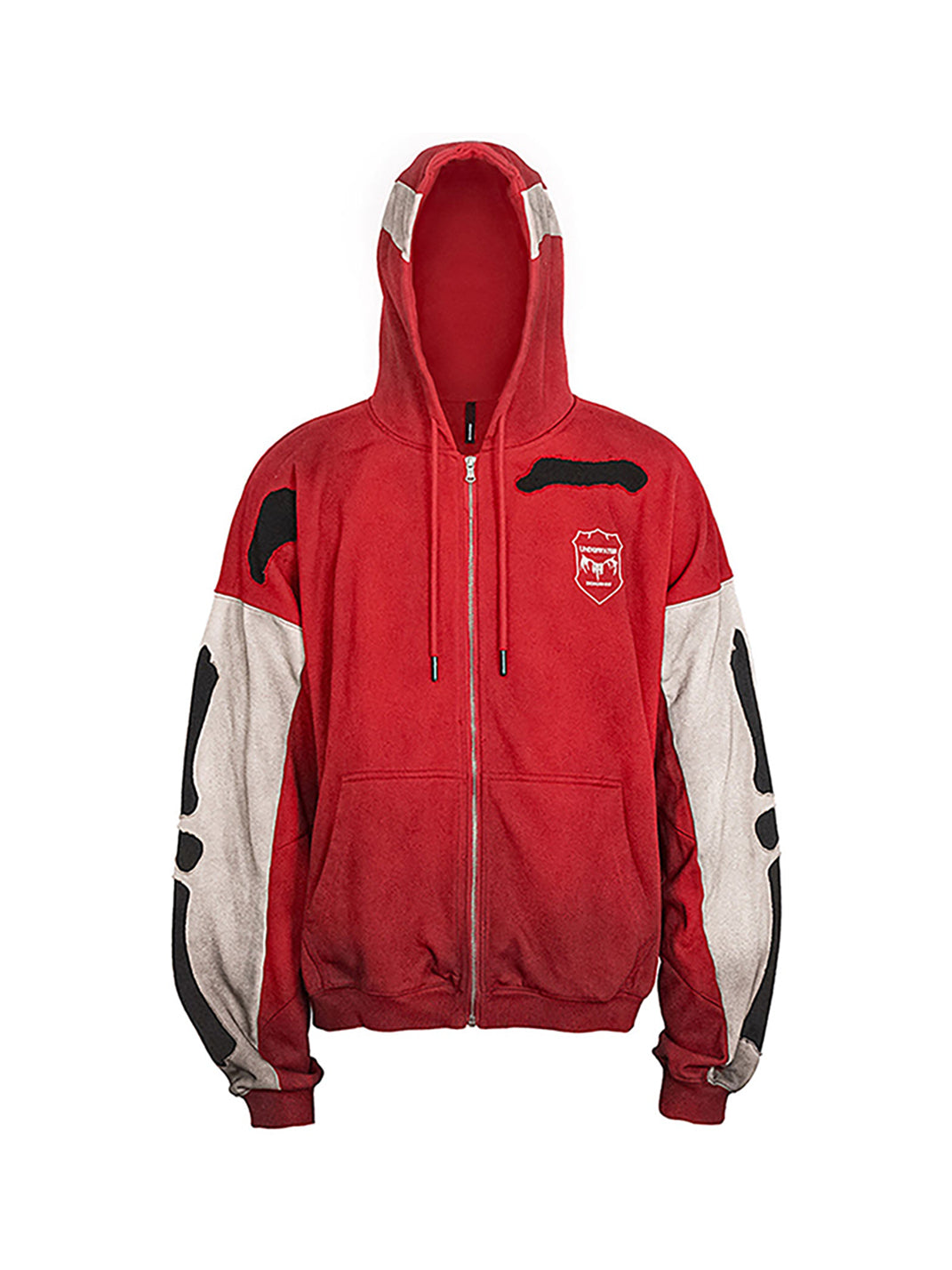 UNDERWATER | Skeleton Distressed Contrast Panel Hooded Jacket